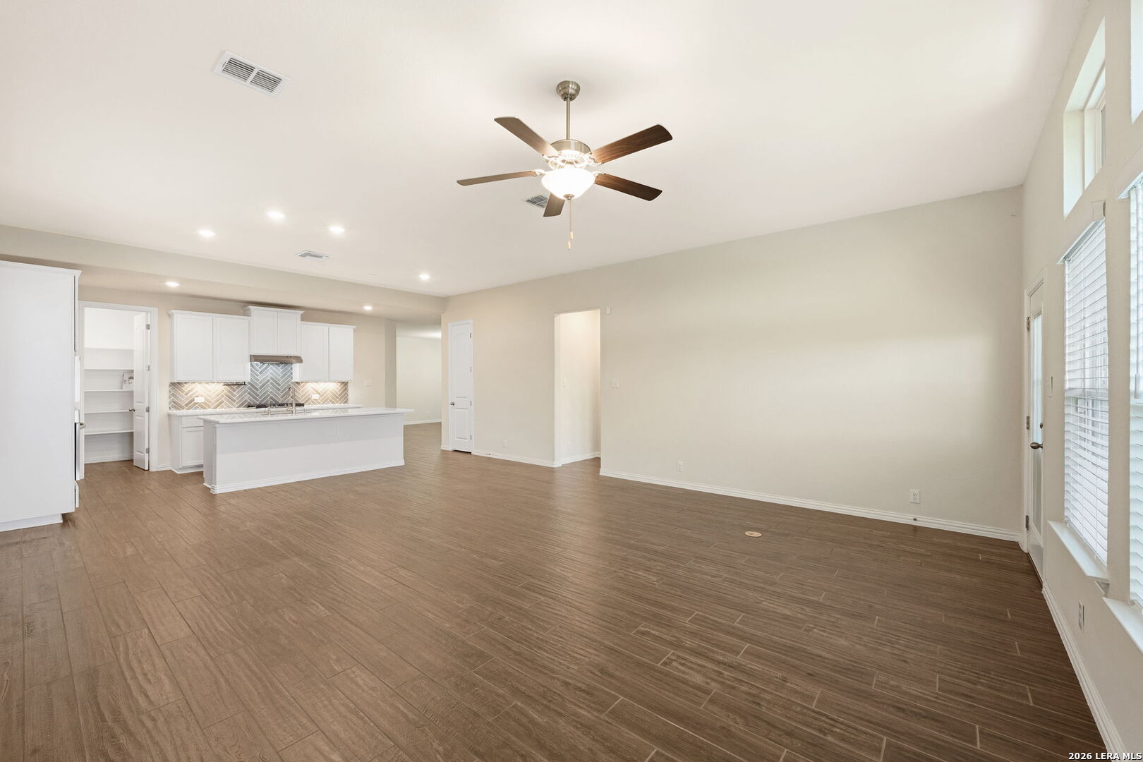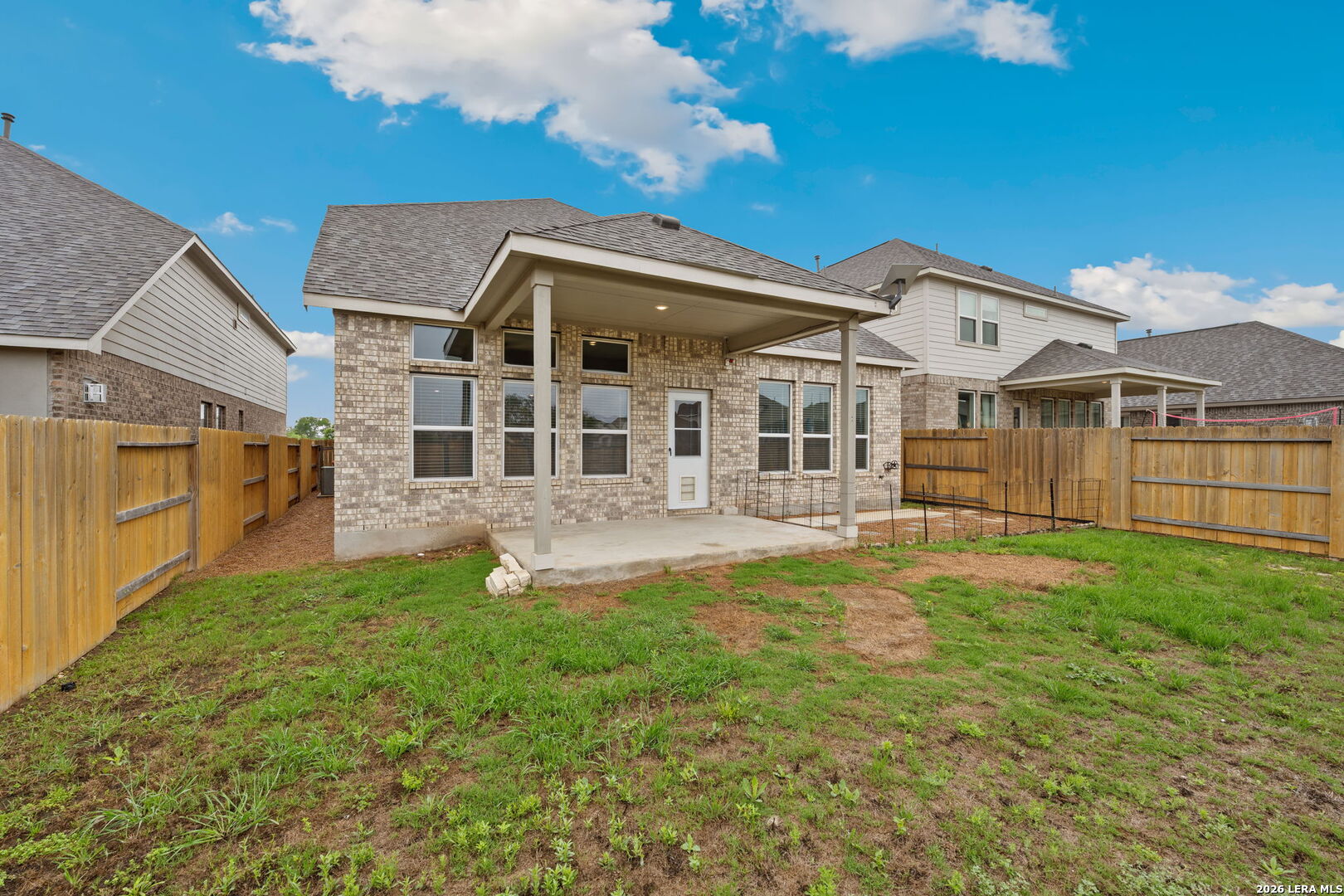 Built in 2022 by Brightland Homes, this well-designed two-story residence in the highly desirable Meyer Ranch community offers 2,787 square feet of comfortable and functional living space. Featuring 4 bedrooms and 3.5 bathrooms, the layout is ideal for both everyday living and entertaining. The main level showcases a spacious open floor plan with a large living area that flows seamlessly into the kitchen, all highlighted by abundant natural light from oversized windows. The kitchen is thoughtfully designed with ample counter space, a large island, quartz countertops, and a gas cooktop, along with a separate dining room for more formal gatherings. The primary suite is conveniently located on the main floor, offering privacy and comfort with an oversized walk-in shower and a generous walk-in closet. Upstairs, you will find three additional bedrooms, two full bathrooms, and a large game room that provides flexible space for a second living area, media room, or playroom. Situated at the end of a quiet dead-end street with no rear neighbors, the backyard offers added privacy and features a covered patio perfect for relaxing or entertaining outdoors. Residents of Meyer Ranch enjoy a wide range of amenities including a resort-style pool, fitness center, community hall, and scenic walking trails, all set within the beauty of the Texas Hill Country.
