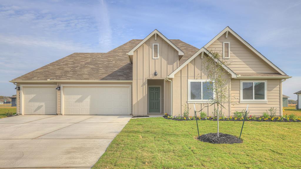 JANUARY ESTIMATED COMPLETION. Check out the Dean at Sonoma Oaks, a one-story floorplan featured in our community in Fredericksburg, Texas. Designed across 1,870 square feet, this home includes 4 bedrooms and 2 bathrooms and a 3 car garage. Walk through the covered entryway and make your way down the hall to the main living area. The kitchen, dining and family room are open, built to make cooking, eating, and entertaining a pleasant experience for family and friends. The kitchen includes quartz countertops, decorative backsplash, a large island with undermount sink, a corner pantry closet, stainless-steel appliances and 36'' upper cabinets. Enjoy the natural light with four rear windows looking out to the backyard. The secondary bedrooms are located at the front of the house, off the foyer. A small hall leads you to the three bedrooms and one full bathroom. Each bedroom includes a closet, and the bathroom includes a shower/tub combination plus extra shelving for storage or dcor. Whether you use these rooms as an office, child's room or guest room, there is plenty of space for work, sleep and play. Off the family room, you'll find the utility room, with extra shelving for all your laundry items. The primary bedroom is tucked away past the utility room, and this private ensuite is sure to be your oasis at the end of a long day. Enjoy the 5' walk in shower, quartz countertop vanity with double sinks, private toilet area with a door, and walk-in closet in this modern bathroom space. The Dean includes vinyl flooring throughout the common areas of the home and the primary bedroom, and carpet in the secondary bedrooms. All our new homes at Sonoma Oaks feature a covered back patio, full yard landscaping and irrigation system,. This home includes our America's Smart Home base package, which includes a Video Doorbell, Front Door Deadbolt Lock, Home Hub, Thermostat, and Deako Smart Switches.