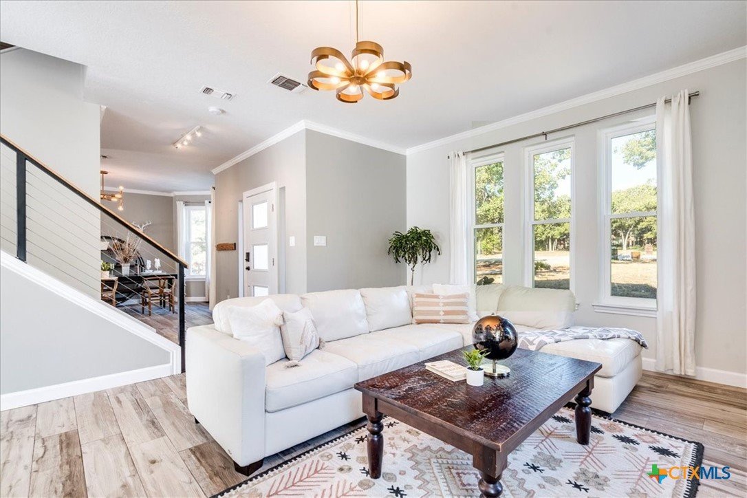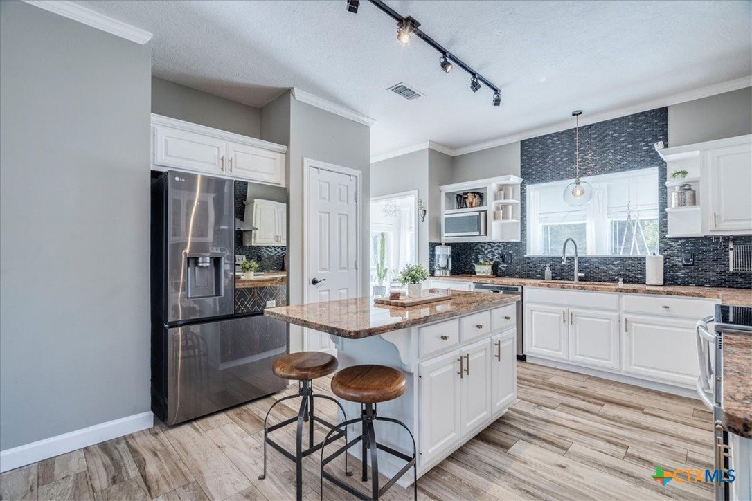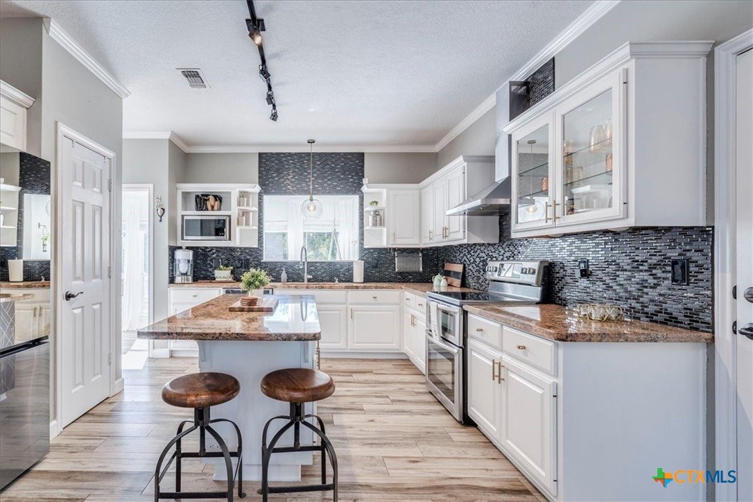 Experience refined Texas living in this beautifully updated home where traditional charm meets modern sophistication. Nestled in a peaceful enclave just 7 minutes from downtown Elgin, this residence offers a rare combination of privacy, space, and style. From the moment you arrive, the home’s impressive stamped concrete driveway sets the tone for the quality found within. Step inside to discover a thoughtfully designed floor plan filled with natural light and upscale touches at every turn. The living room centers around a striking brick wood-burning fireplace, complemented by elegant lighting and warm hardwoods. The kitchen is an entertainer’s dream—complete with a central island, pantry, double ovens, and a designer backsplash—blending functionality and sophistication seamlessly. Custom handrails allow sunlight to cascade through the main living spaces, creating an airy, inviting atmosphere. Retreat to the primary suite, featuring hardwood floors, private balcony, and a serene ensuite bath adorned with a show stopping copper soaking tub, dual sinks, and a separate tiled shower. Secondary bedrooms offer the same attention to detail, each with hardwood floors and ceiling fans. Outdoors, your private sanctuary awaits. Relax or entertain on the expansive deck, retreat from the heat in the cowboy pool, or unwind in the secluded lounging area surrounded by a wooden privacy fence. Warm yourself with the inground rustic fire pit as winter approaches. The newly built secondary 624 sq ft metal garage provides ample room for vehicles, hobbies, or storage. Every detail of this home has been elevated to deliver a refined lifestyle in one of Elgin’s most desirable settings. Discover everything you're looking for at 171 Pin Oak Xing.