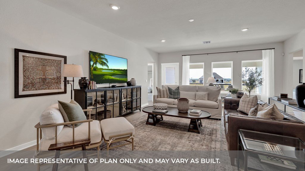 MAY ESTIMATED COMPLETION. The Irving is one of our most popular floorplans and is available at Sonoma Oaks in Fredericksburg, Texas. This one-story home includes 5 bedrooms, 3 bathrooms, and a study within 2,594 square feet of living space and 3 car garage. As you enter the home from the covered front porch, you'll cross the foyer to the dining room, family room and kitchen. This large open concept space is perfect for entertaining and everyday living. The kitchen includes an island with undermount sink, quartz countertops, decorative tile backsplash, a corner pantry closet, stainless-steel appliances and 36'' upper cabinets. The utility room with an extra closet is located just off the kitchen. Check out the primary bedroom, located at the back of the home. This oversized bedroom will become your oasis at the end of the day. Enjoy the 5' walk in shower, quartz countertop vanity with double sinks and toilet area with a separate door. A walk-in closet with generous shelving is connected to the bathroom. In the opposite rear corner of the home, you'll find Bedroom 2 and Bath 2. This private space could be perfect for your guests or any family member that needs their own space. At the front of the home, you'll find the additional 3 bedrooms and Bath 3. Each secondary bedroom includes a closet with shelving, and the secondary bathrooms include a shower/tub combination and shelving for extra storage or dcor. The study is off the family room and has a built-in closet. With all the space the Irving offers, your family is sure to love this plan. The Irving includes vinyl flooring throughout the common areas of the home and the primary bedroom, and carpet in the secondary bedrooms. All our new homes in Sonoma Oaks feature a covered back patio, full sod, an irrigation system in the front and back yard. This home includes our America's Smart Home base package, which includes a Video Doorbell, Front Door Deadbolt Lock, Home Hub, Thermostat, and Deako Smart Switches.