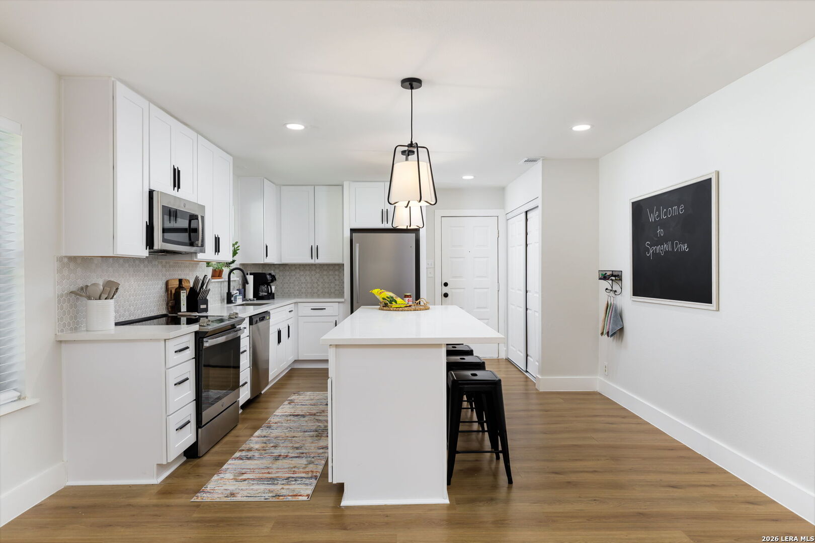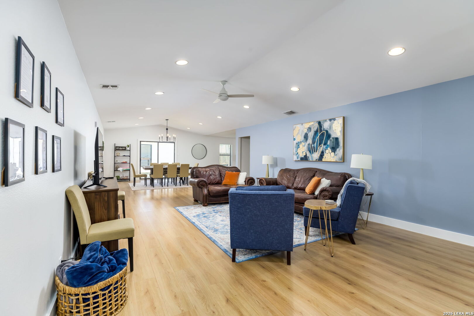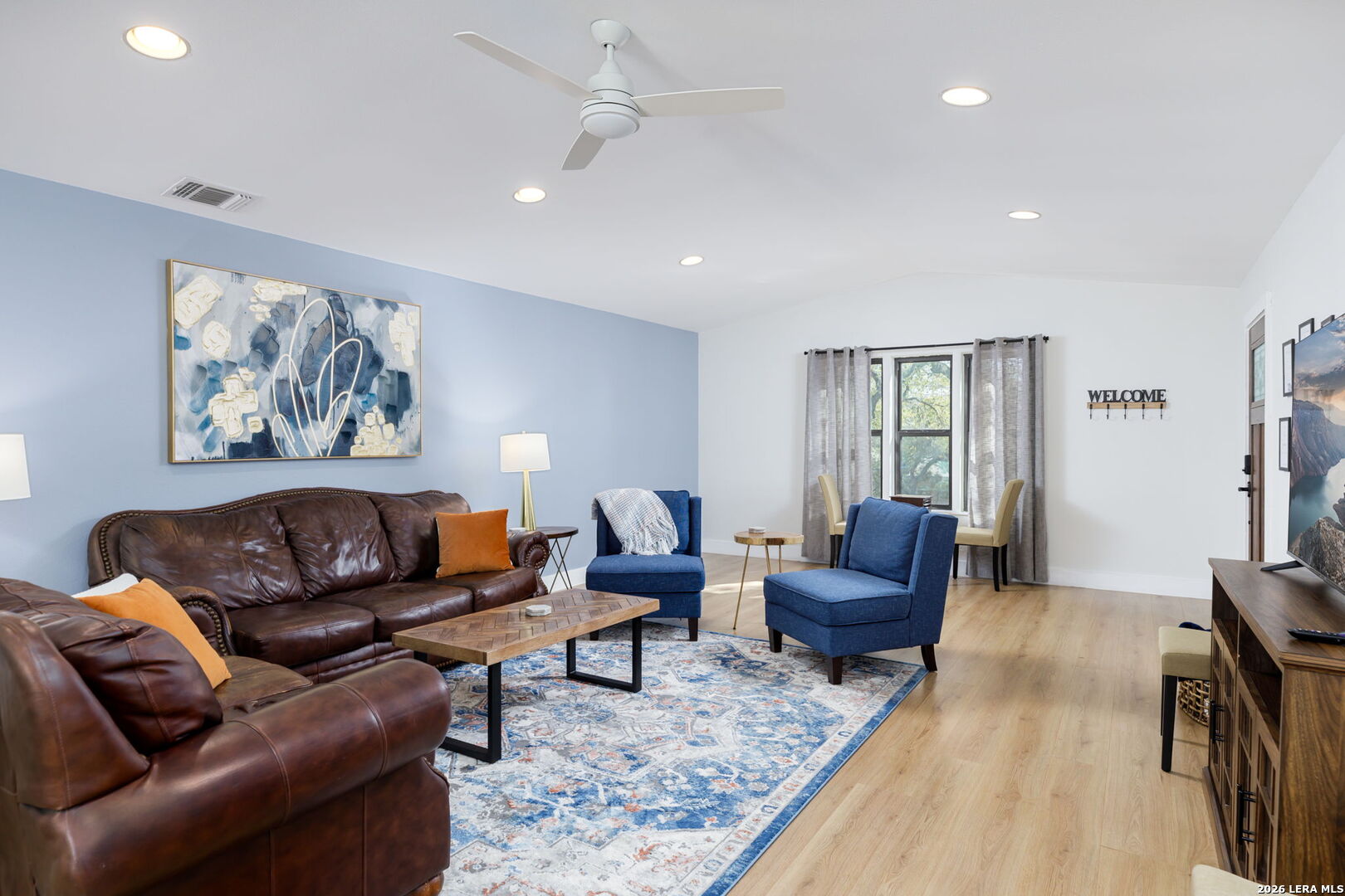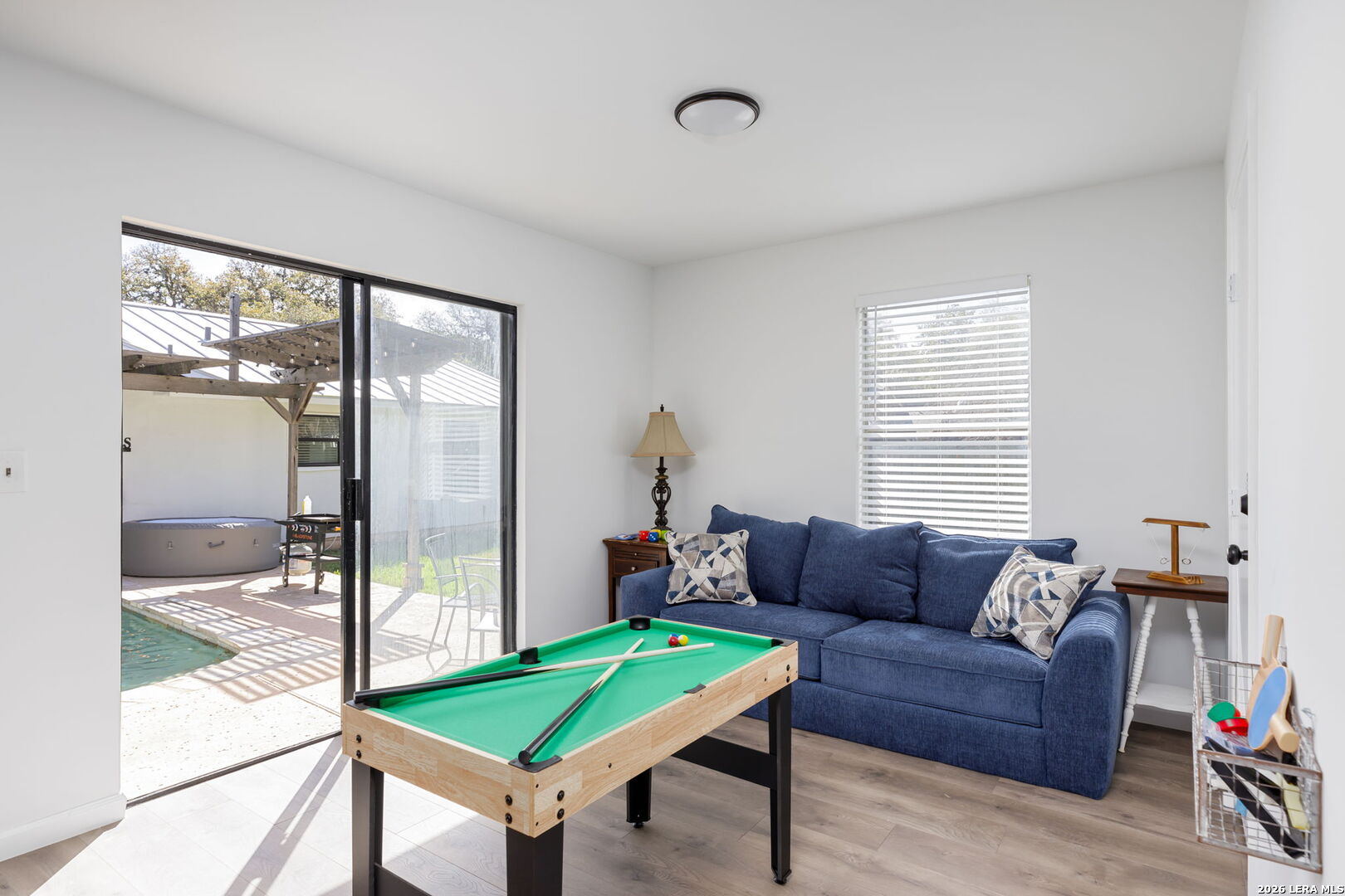 Stunning, fully renovated home currently operating as an income-producing short-term rental in the desirable Oakhaven Heights area with convenient access to 281 and 1604. Situated on a mature, tree-covered lot on a quiet street with no HOA. This 4-bedroom, 2-bath home features an open-concept layout with high ceilings and a spacious living area that flows seamlessly into an oversized dining space, offering views of the backyard and in-ground pool. The updated kitchen includes modern finishes and ample cabinetry. All bedrooms are generously sized. The backyard is designed for both relaxation and entertaining, featuring a covered pergola, in-ground pool, and a detached pool house that can function as a game room, guest space, or flex area. Ideal as a primary residence, second home, or turnkey investment property.