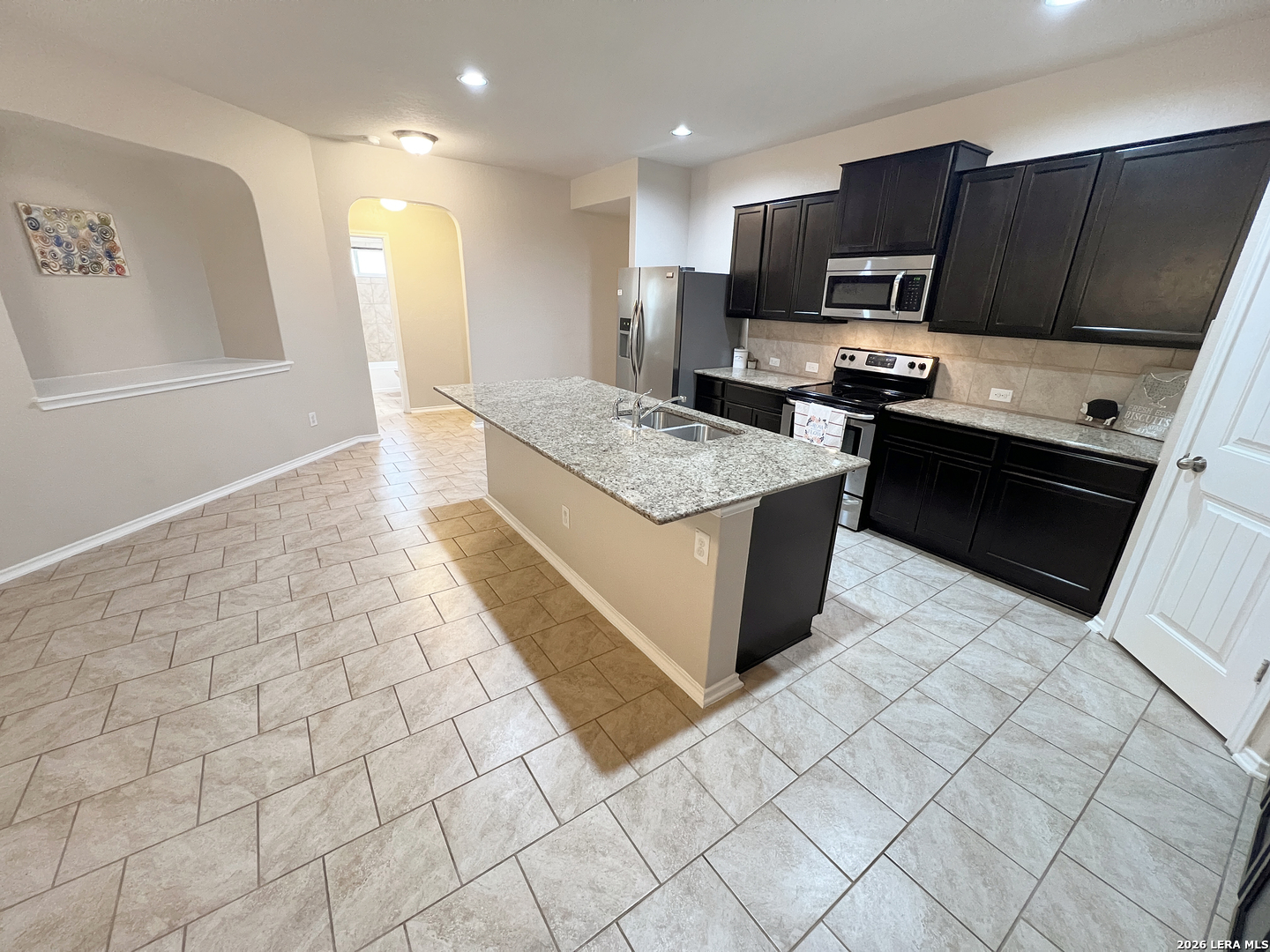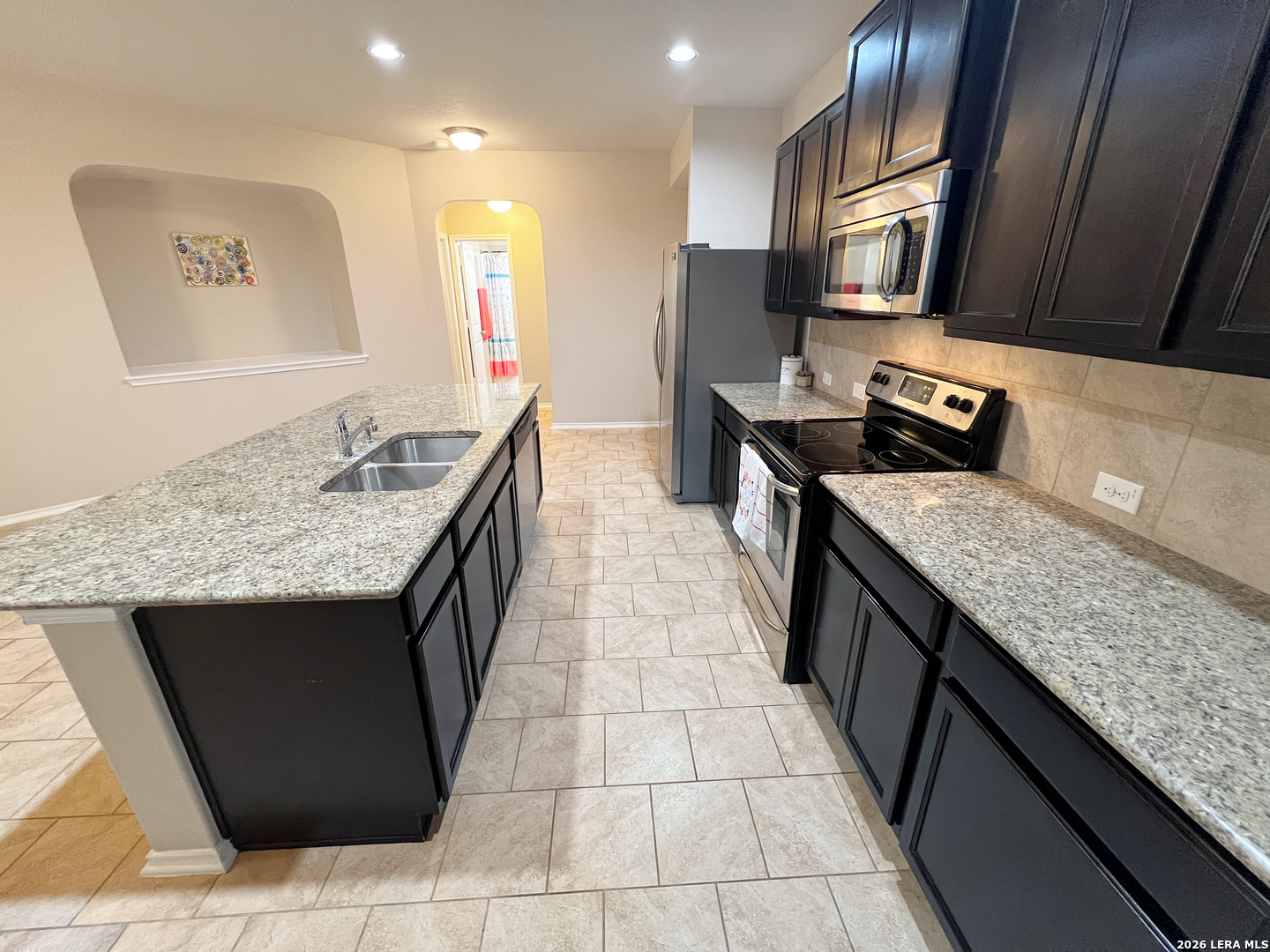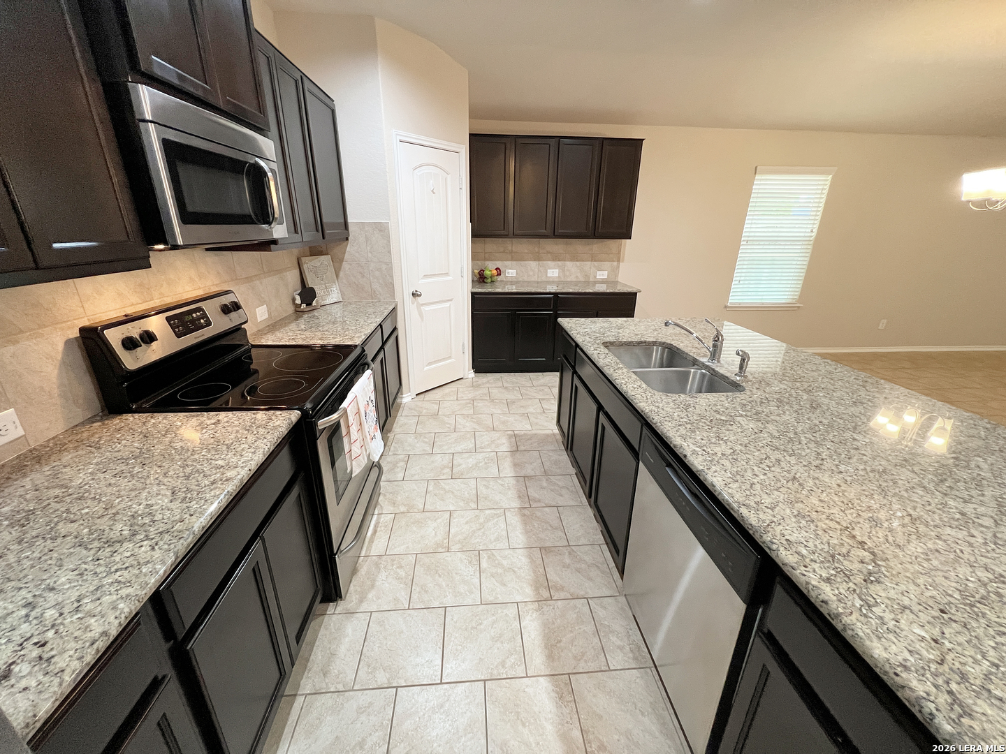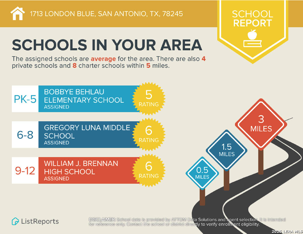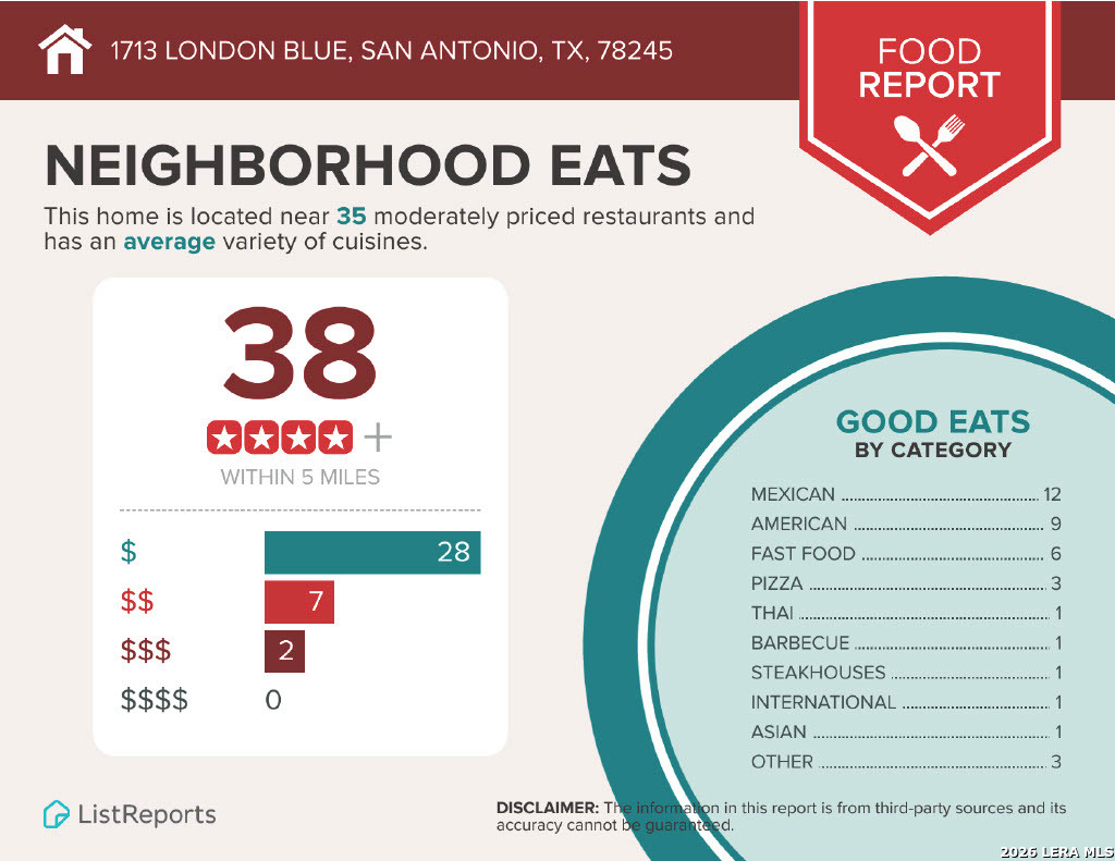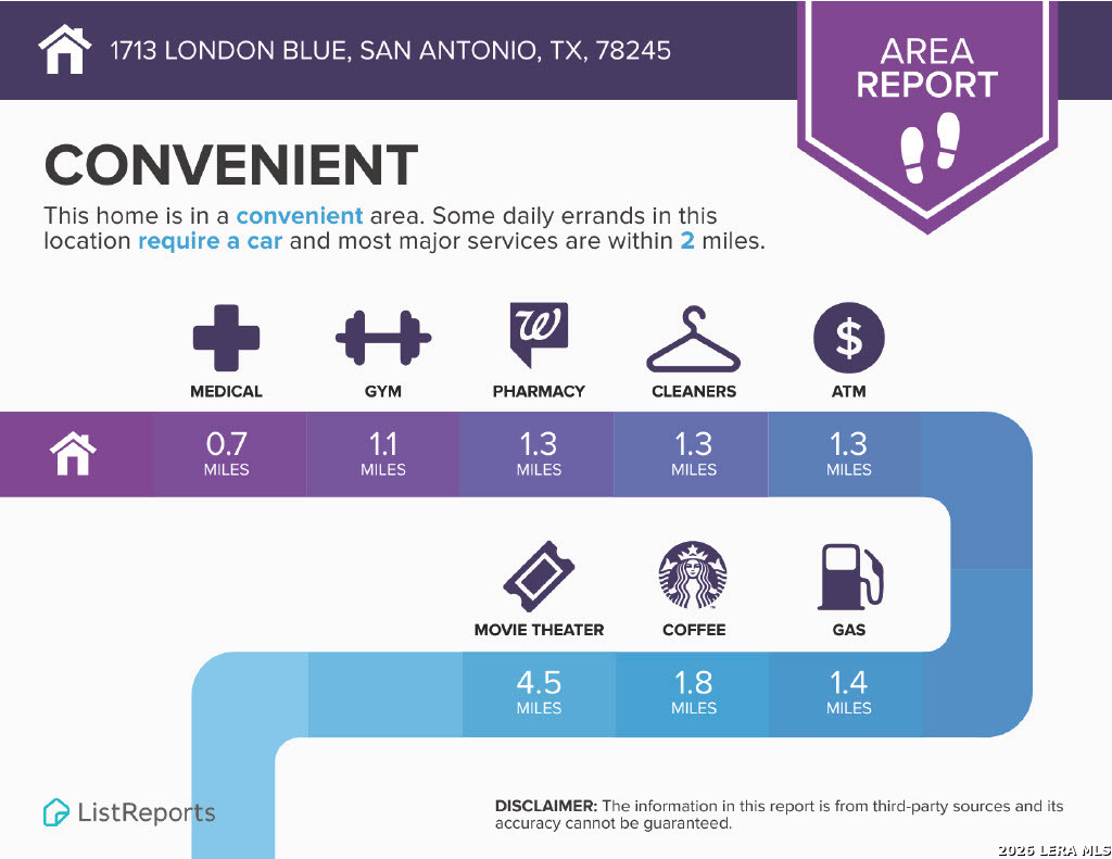 4 Bedroom 2 Bath 1703 sq ft Single Story Home. All Tile Floors, Carpet only in the Bedrooms. Large Kitchen w/Beautiful Granite Counters, Island, Breakfast Bar, Walk-in Pantry. Everything is included: Stainless Fridge, Flat-top Stove, Microwave, Dishwasher, Washer, Dryer. Primary Bedroom with Walk-in Closet. Primary Bath with Separate Shower/Garden Tub, Dual Sinks. Fenced Yard with Covered Patio and Mature Trees for shade. 2 Car Garage with Opener. Community Pool, Playground. Near 1604, Lackland, Hwy 90, Sea World. Shopping. Elementary School a few blocks away. Northside schools.