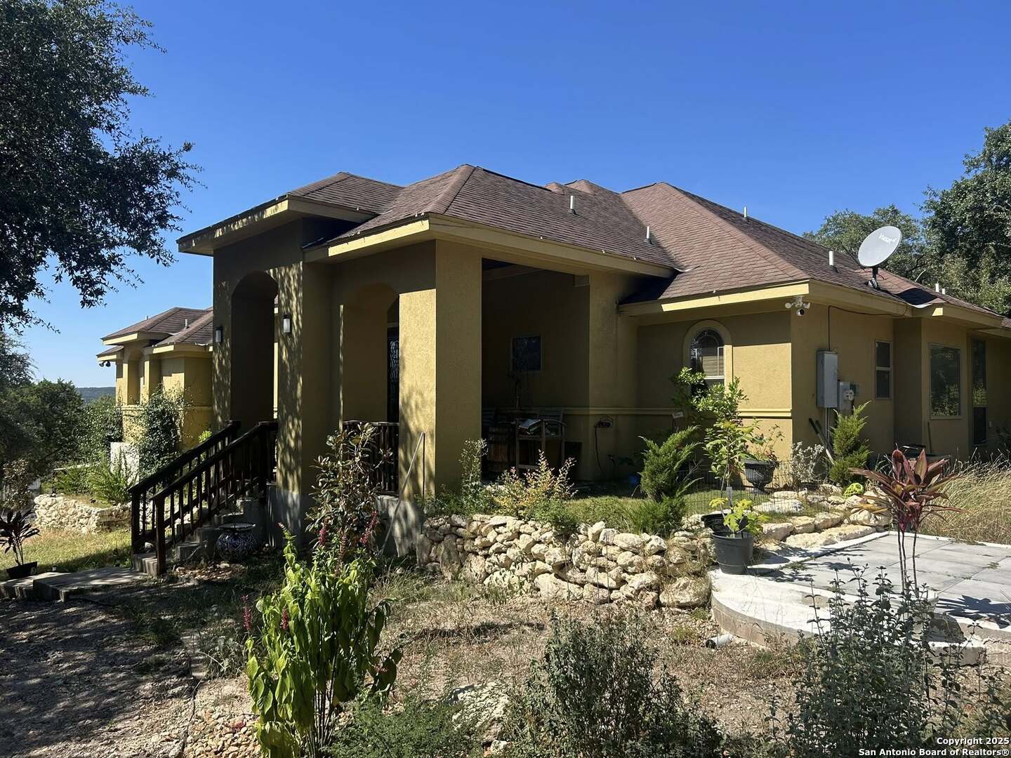 1 acre lot,4-bedroom house in the hills of Helotes, Texas, Less than 1 mile to Old town Helotes, across from San Antonio Ranch, This property blends the Texas Hill Country architectural style with modern amenities and a focus on seamless indoor-outdoor living. Breathtaking Views, Poised on a hilltop, the home offers panoramic views of the surrounding rolling hills, mature trees, and stunning sunsets. The exterior features a blend of native limestone, stucco, and wood accents, with a sturdy composition roof. Covered patio, and porches providing ample space to enjoy the natural, private setting in the front and the back. Spacious and Open Interior: Inside, the home boasts an open floor plan with soaring ceilings, a grand entryway, and abundant natural light streaming through large windows. The chef's kitchen is a focal point, limestone countertops, a large center island, custom cabinetry, a walk-in pantry. Luxury Primary Suit, the oversized primary suite, located on the main floor for convenience, includes private outdoor access, a sitting area, and a spa-like ensuite bathroom with a glass walk-in shower, a garden tub, and separate vanities. Flexible Living Spaces: The four bedrooms are complemented by multiple flexible spaces, such as a formal dining room, a dedicated study/home office, an upstairs game or media room, and a separate living area. The backyard has a patio and a fireplace for morning coffee or sunset views. this property has its own water well.