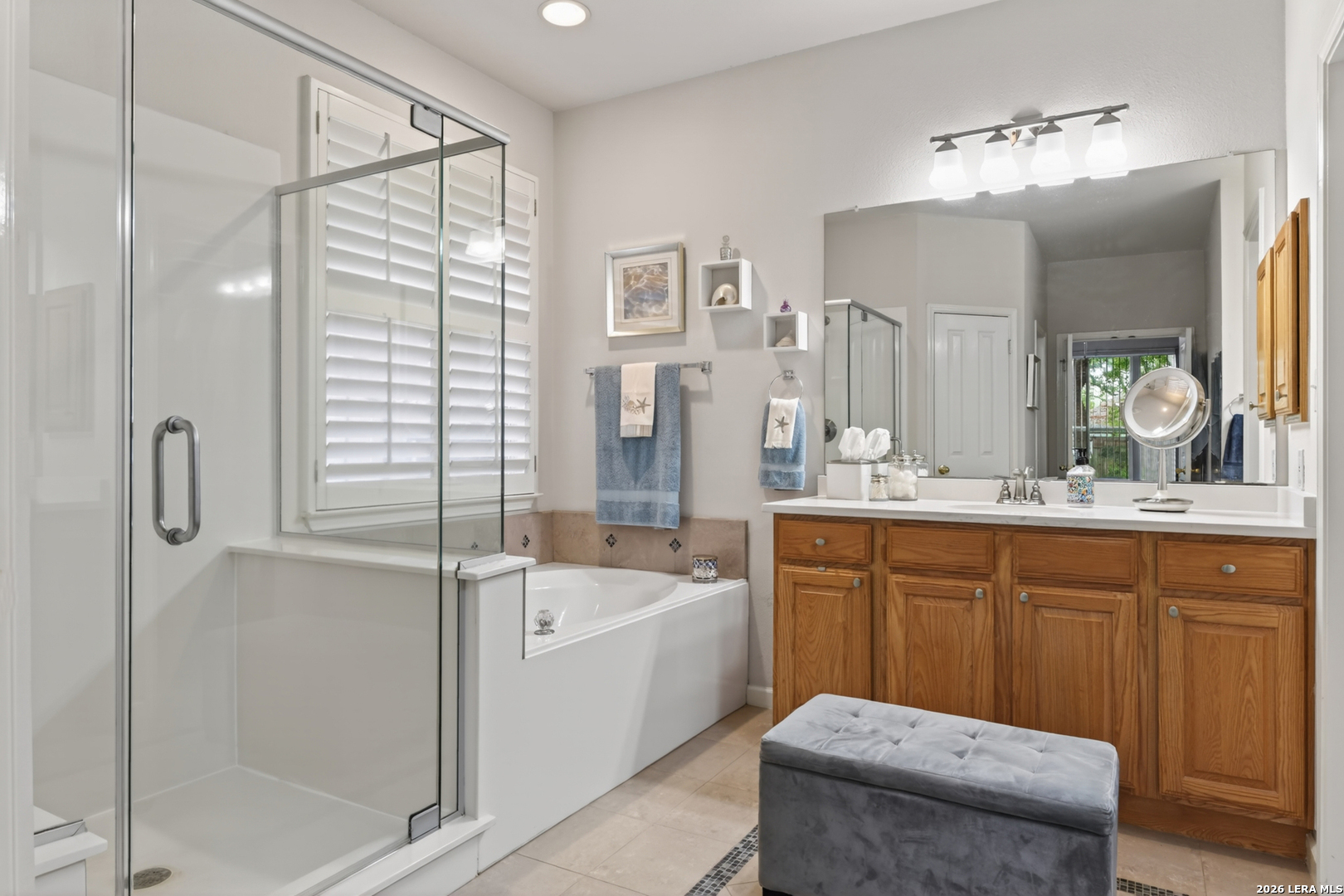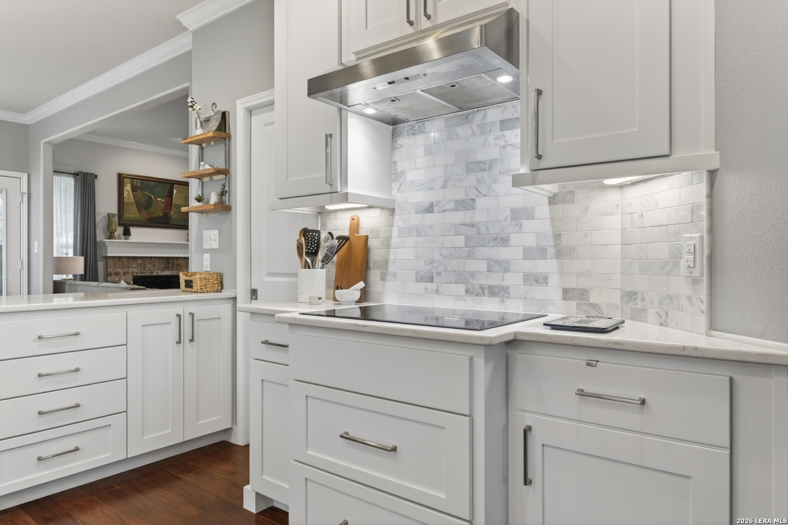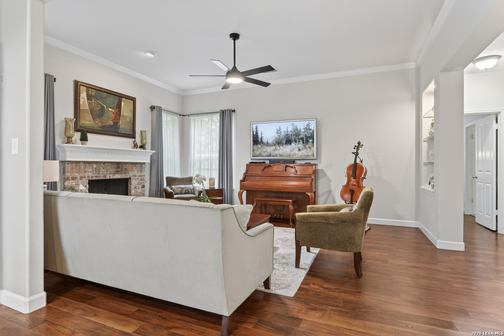 Tucked beneath a canopy of mature trees, this beautifully maintained home welcomes you with warmth, natural light, and a sense of timeless comfort. Step inside to soaring ceilings, rich engineered hardwood flooring, and a flowing layout that effortlessly connects each space. A formal dining room sets the stage for meaningful gatherings, while the inviting living area-with its cozy fireplace and walls of windows-opens seamlessly to a thoughtfully updated kitchen featuring custom cabinetry and a bright, functional design. Just beyond, a charming breakfast nook overlooks the peaceful backyard, creating the perfect everyday retreat, while the downstairs primary suite offers a quiet escape with a well-appointed bath. Upstairs, generously sized secondary bedrooms and a versatile second living area provide flexible space for work, play, or relaxation, with freshly replaced carpet adding an extra layer of comfort. Abundant storage-from spacious closets to attic access and garage space-keeps everything organized with ease. Outside, the tree-covered backyard feels like a private haven, complete with a covered patio ideal for unwinding, a lush lawn, and a storage shed. All of this is set in a location that keeps you close to everything, with convenient access to major routes, shopping, dining, and daily essentials-making everyday living as effortless as it is inviting.