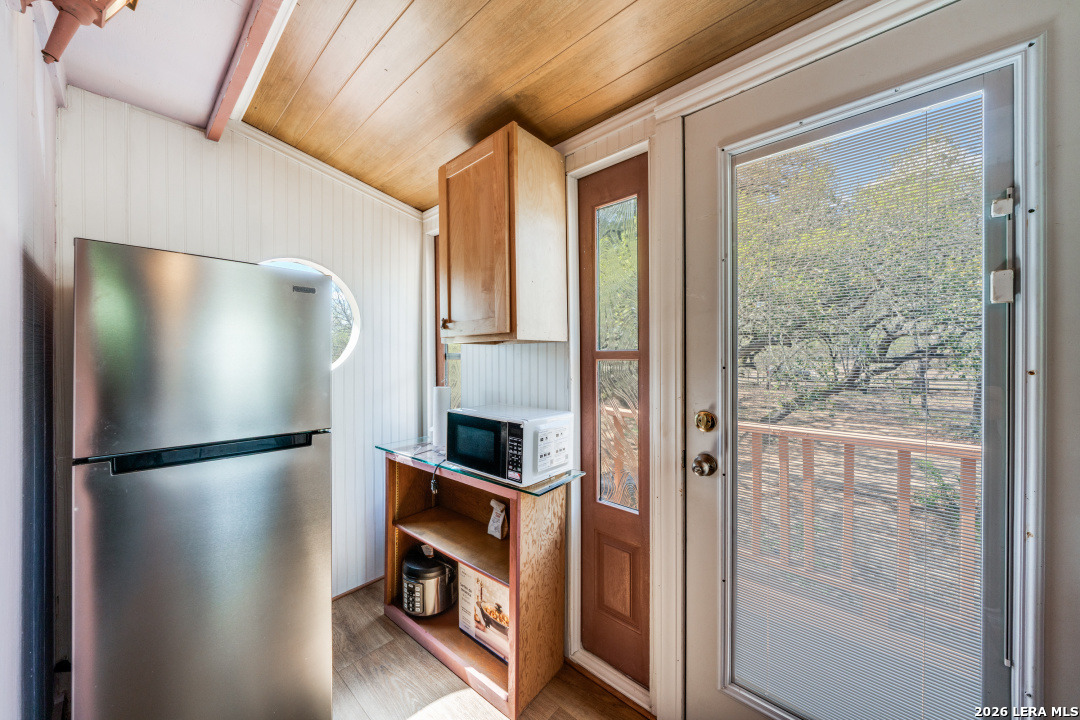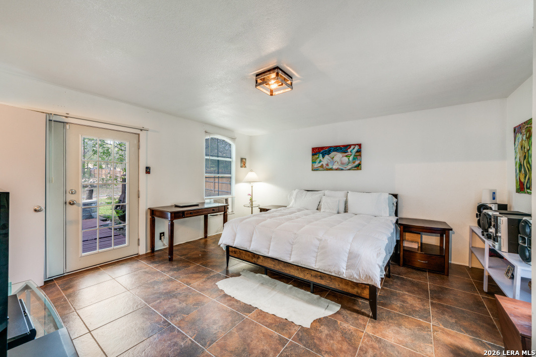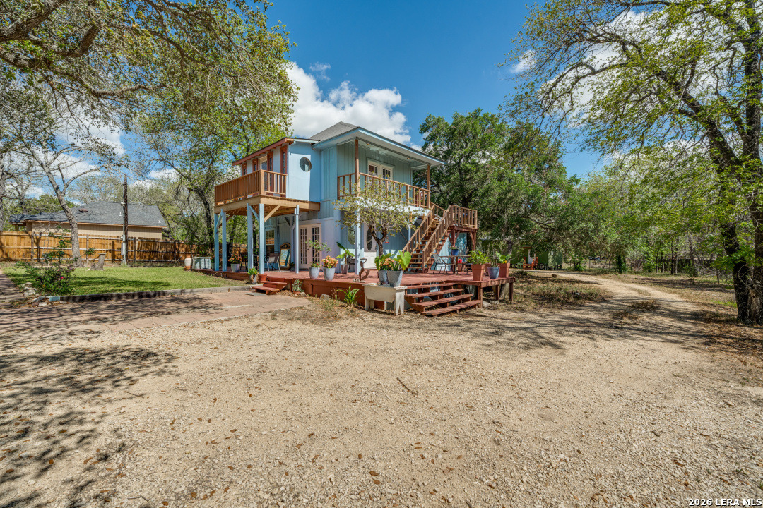 Tucked beneath a canopy of majestic oak trees in the charming Hickory Hollow community just south of San Antonio, this one-of-a-kind property feels like it was pulled straight from the pages of a magazine. Sitting on 1 acre of land, this unique home is the perfect blend of rustic charm and modern comfort, this inviting retreat offers character, flexibility, and income potential all in one. The main home features 3 bedrooms and 2 bathrooms, with one bedroom currently being used as an enviable walk-in closet. Each bedroom offers direct outdoor access, creating a seamless connection to nature and the peaceful surroundings. The spacious primary suite is a true retreat, complete with a stunning bathroom featuring a large walk-in shower and room to truly unwind. Step outside to enjoy the expansive deck and covered patio, where you can relax, entertain, and listen to the birds sing under the shade of mature oaks. Upstairs, a private studio apartment, previously operated as a successful Airbnb, offers its own balcony, full bathroom, and kitchenette, making it ideal for guests, rental income, or a creative space. The property also includes a detached casita currently leased, featuring a full kitchen, open-concept layout, and loft. Perfect for multigenerational living, guest quarters, or continued rental income, this additional space adds incredible versatility. Unique, charming, and full of possibilities, this Hickory Hollow gem is more than a home, it's a lifestyle. Schedule your private tour today.