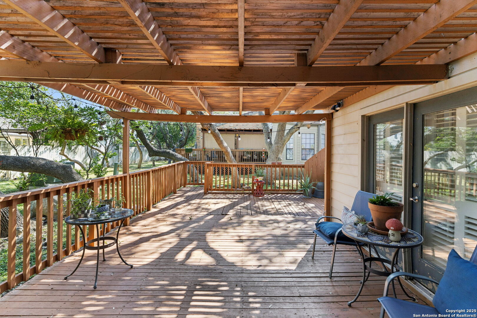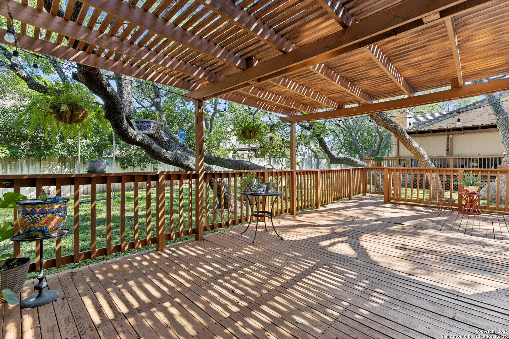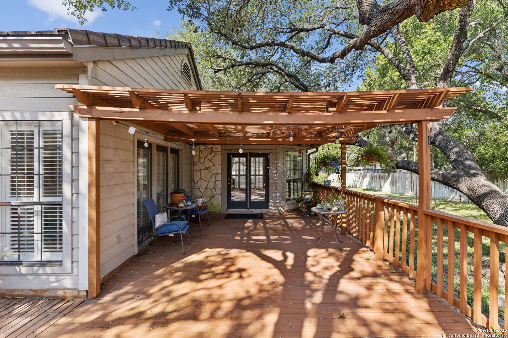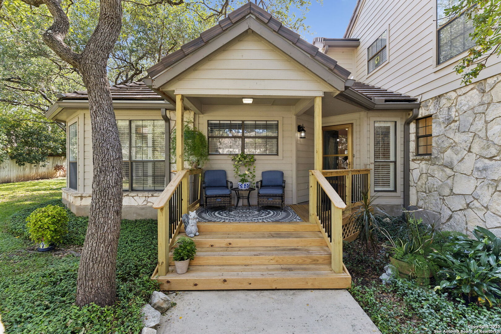 Tucked inside a quiet, gated community off Blanco Road, this spacious townhome-style condo offers both convenience and comfort in the heart of North Central San Antonio. With 2,832 sq. ft., 3 bedrooms, 2.5 baths, and a rare 3-car garage, vaulted ceilings and tons of natural light, the home delivers generous space in a lock-and-leave setting. Step outside to an expansive back deck surrounded by mature trees creating a private retreat perfect for morning coffee or evening gatherings. Inside, an open layout provides plenty of room for both daily living and entertaining. The serene neighborhood setting is just minutes from shopping, dining, and major thoroughfares, making it easy to enjoy everything San Antonio has to offer while still coming home to peace and privacy.