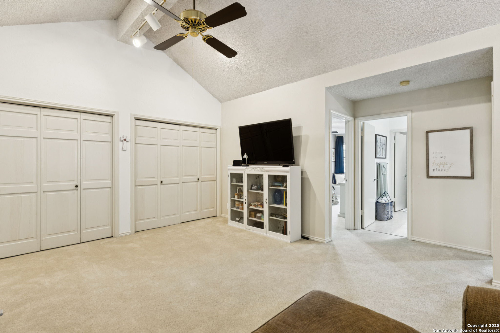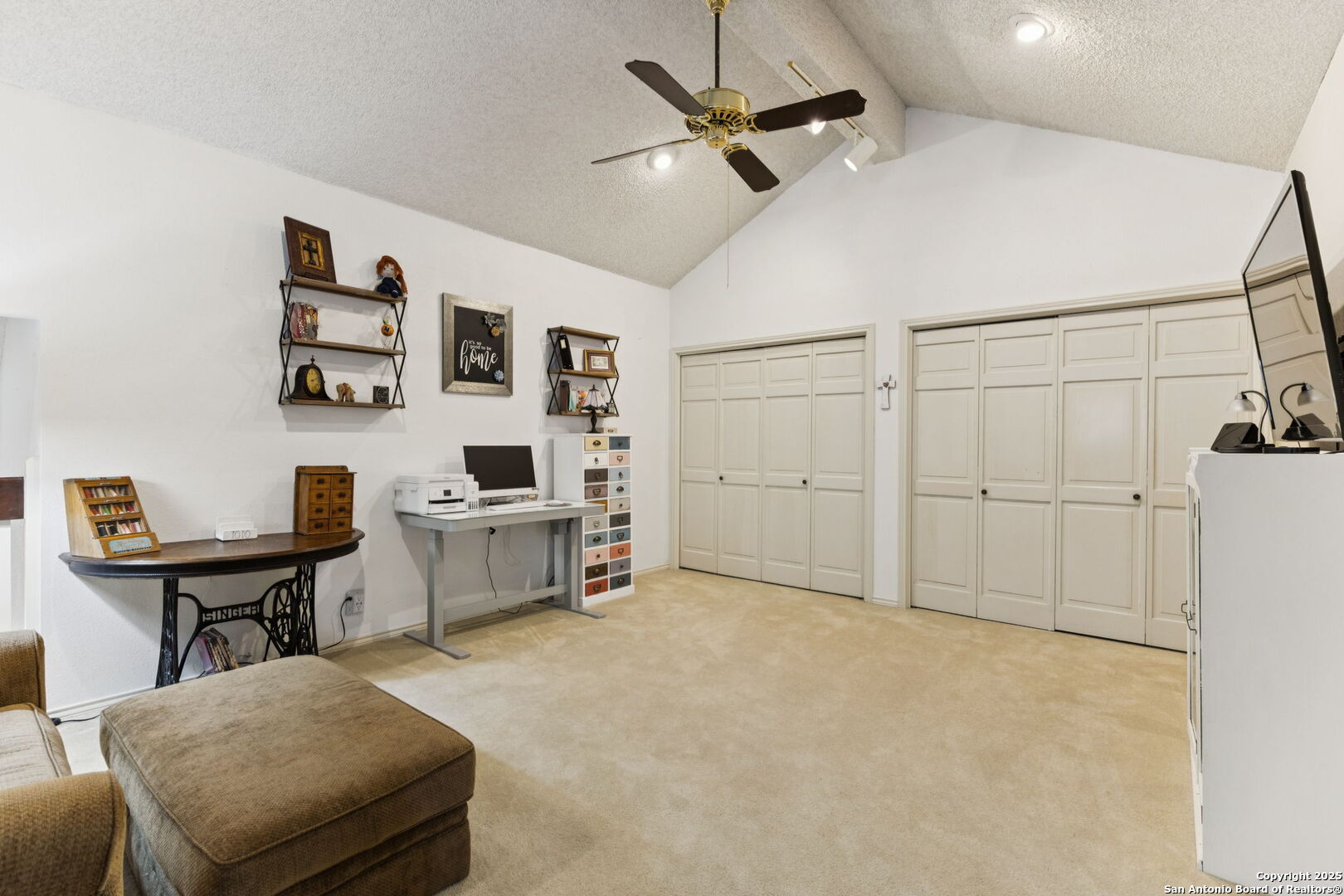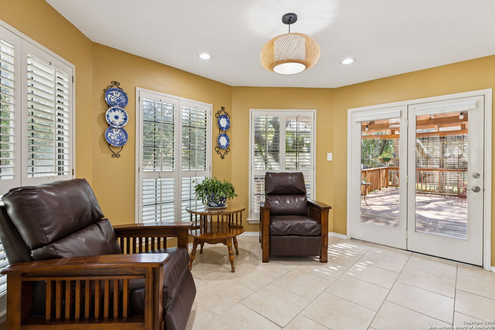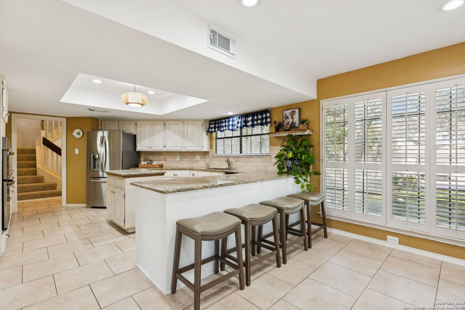 Tucked inside a quiet, gated community off Blanco Road, this spacious townhome-style condo offers both convenience and comfort in the heart of North Central San Antonio. With 2,832 sq. ft., 3 bedrooms, 2.5 baths, and a rare 3-car garage, vaulted ceilings and tons of natural light, the home delivers generous space in a lock-and-leave setting. Step outside to an expansive back deck surrounded by mature trees creating a private retreat perfect for morning coffee or evening gatherings. Inside, an open layout provides plenty of room for both daily living and entertaining. The serene neighborhood setting is just minutes from shopping, dining, and major thoroughfares, making it easy to enjoy everything San Antonio has to offer while still coming home to peace and privacy.