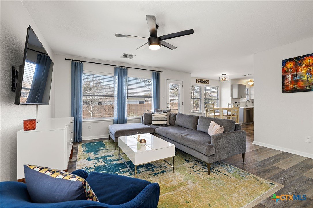 Welcome to 17320 Manish Drive, a light and bright two-story home offering space, functionality, and an ideal location. This 3 bedroom, 2.5 bath home features an open floor plan filled with natural light and neutral tones throughout. The main living area flows seamlessly into the kitchen and dining space, creating an easy layout for everyday living and entertaining. The kitchen includes quartz countertops, stainless steel appliances, a white decorative subway tile backsplash, ample cabinetry, and generous prep space. Upstairs, a spacious loft provides a second living area that can serve as a game room, office, or media space. All bedrooms are well sized, and the primary suite offers a private bath and comfortable retreat. Enjoy a large, flat backyard with an extended deck, perfect for relaxing or hosting gatherings. Full gutters add long term functionality and protection. Residents enjoy community amenities including a pool, playground, and park, all within walking distance. The home is also less than 10 minutes from the planned mixed-use development, “The District”, one of the area’s newest and most exciting upcoming mixed use developments featuring dining, retail, entertainment, and vibrant community spaces. With two living areas, stylish finishes, and excellent proximity to area attractions, this home offers comfort, convenience, and value in a desirable location.