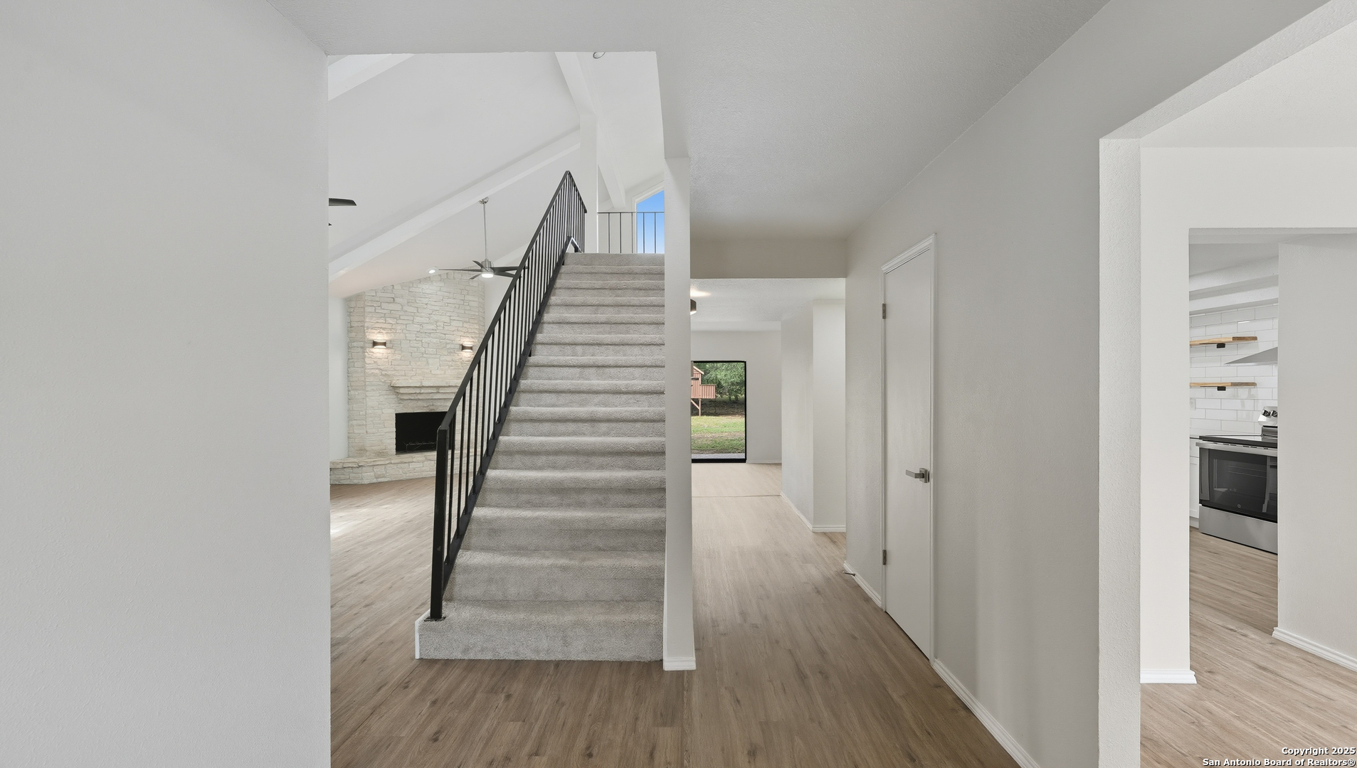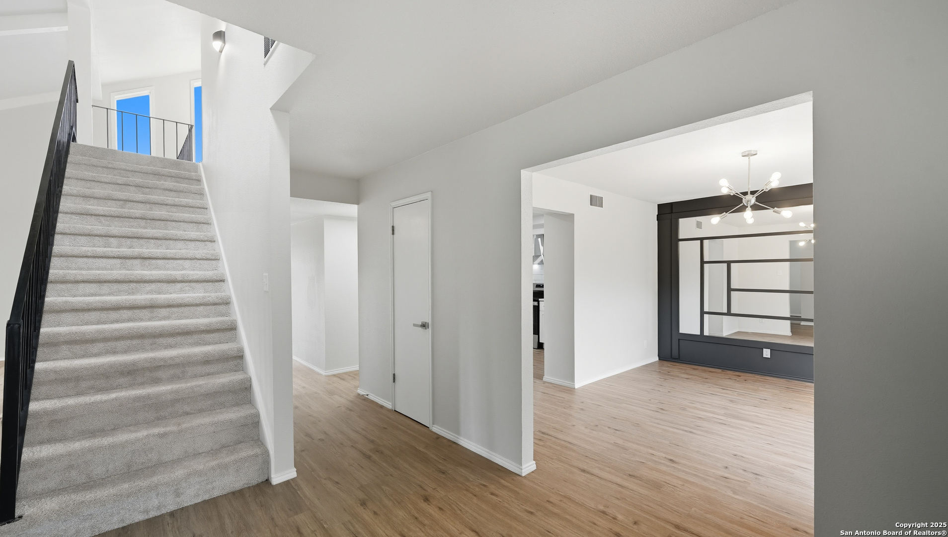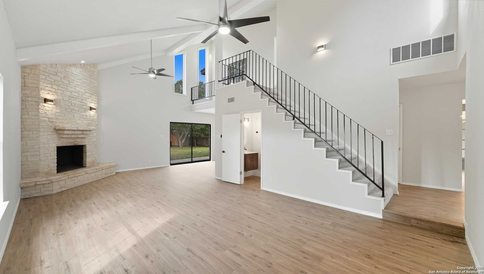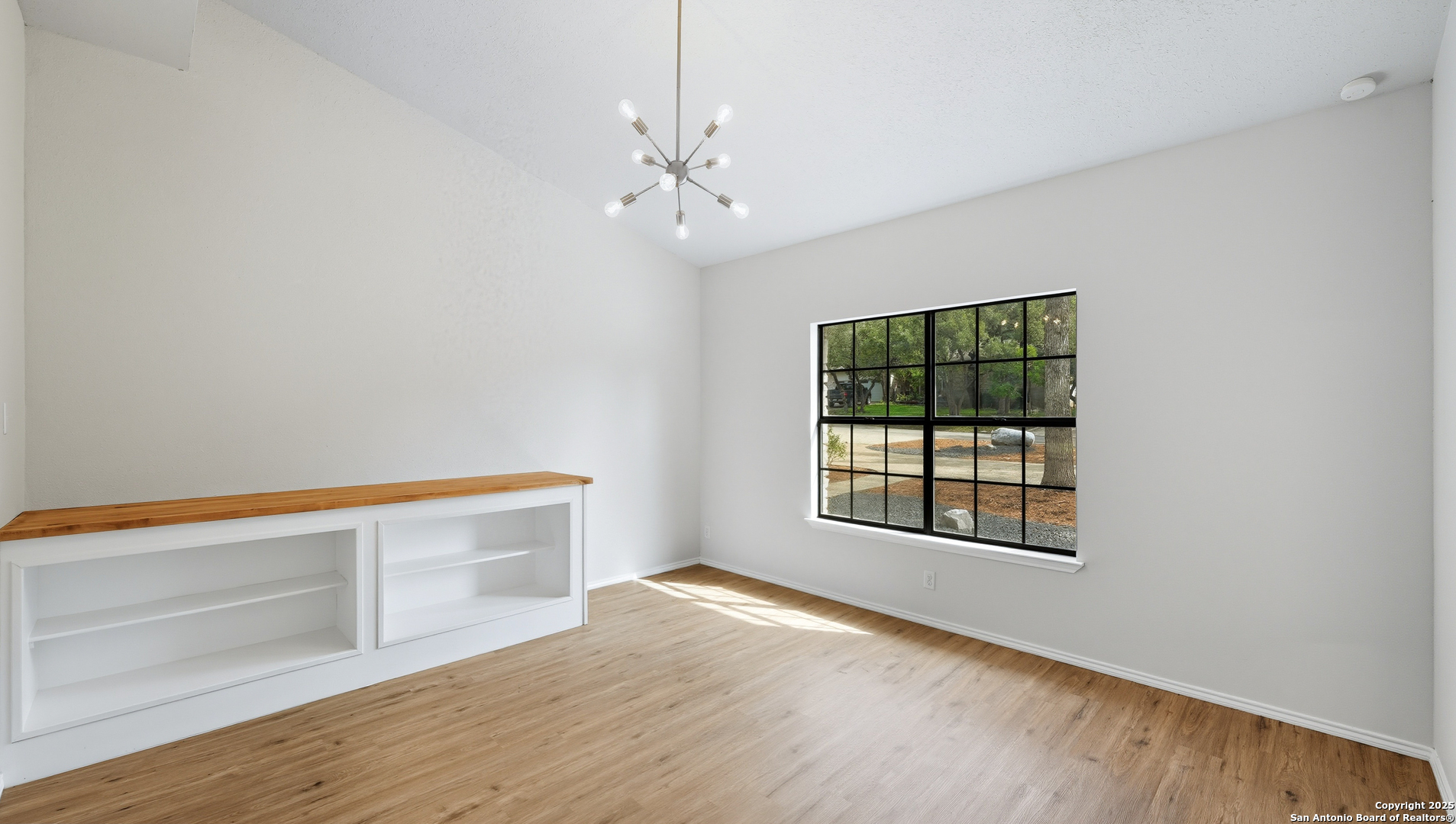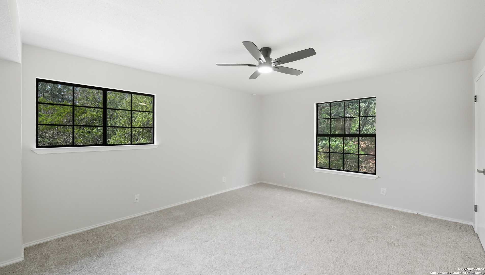 Welcome to 1738 Mountjoy St, a beautifully remodeled 3-bedroom, 2.5-bathroom, 2-story masterpiece in the heart of the coveted Kentwood Manor neighborhood in North Central San Antonio. Spanning 3,068 square feet on a sprawling 0.41-acre lot, this fully updated 1984-built home blends contemporary luxury with serene, nature-inspired living, offering the perfect balance of style and comfort. Step inside to discover a bright, open-concept interior transformed with brand-new flooring throughout, creating a seamless flow across the expansive living spaces. The heart of the home is the stunning, modern kitchen, featuring sleek white cabinetry, solid stone countertops, and stainless steel appliances - perfect for culinary enthusiasts and entertainers alike. Adjacent to the kitchen, a separate dining room and cozy breakfast nook provide versatile spaces for formal gatherings or casual mornings. A dedicated study/office offers a quiet retreat for work-from-home professionals or creative pursuits. The primary suite is a true haven, boasting a spacious layout and a luxurious, fully renovated en-suite bathroom with a walk-in shower and a new garden tub for ultimate relaxation. Every bedroom features generous walk-in closets, ensuring ample storage for all. The additional 2 bedrooms and updated full bathroom, plus a stylishly updated half-bath, provide comfort and convenience for family or guests. Designed for entertainment, the home includes a cozy fireplace in the living area and a chic wet bar, perfect for hosting friends or unwinding after a long day. Large windows flood the space with natural light, framing picturesque views of the lush, oak-shaded lot where deer roam daily, creating a tranquil, park-like atmosphere. The expansive 0.41-acre backyard is a private oasis, complete with a small seasonal creek that flows after rain, a playground set for family fun, and a storage shed for added convenience. Nestled in the serene Kentwood Manor subdivision, 1738 Mountjoy St offers a peaceful retreat with easy access to San Antonio's vibrant amenities. Minutes from highways 281 and Loop 1604, you're close to top-rated schools, shopping, dining, and entertainment, including nearby parks and recreational venues. The neighborhood's charm, abundant wildlife, and convenient location make it ideal for families, professionals, or anyone seeking a blend of city and country living.