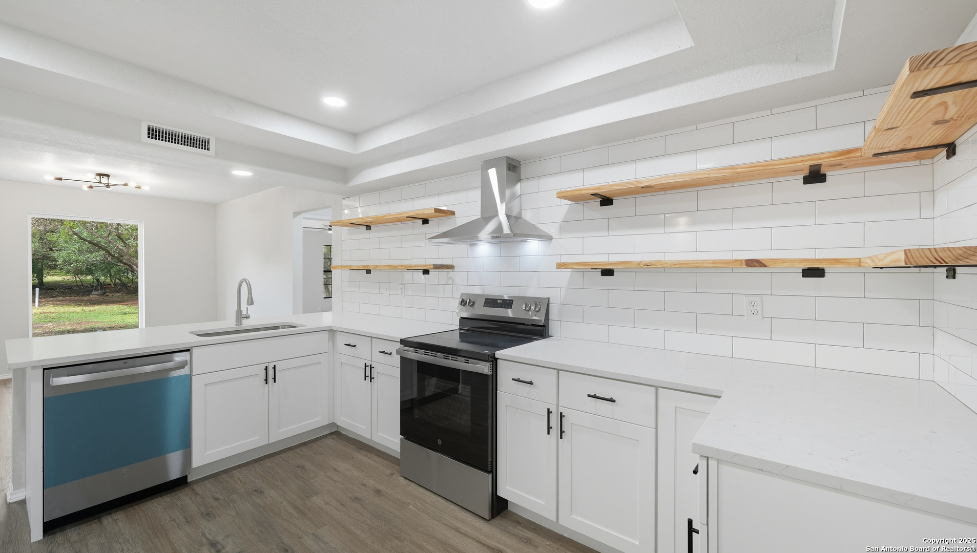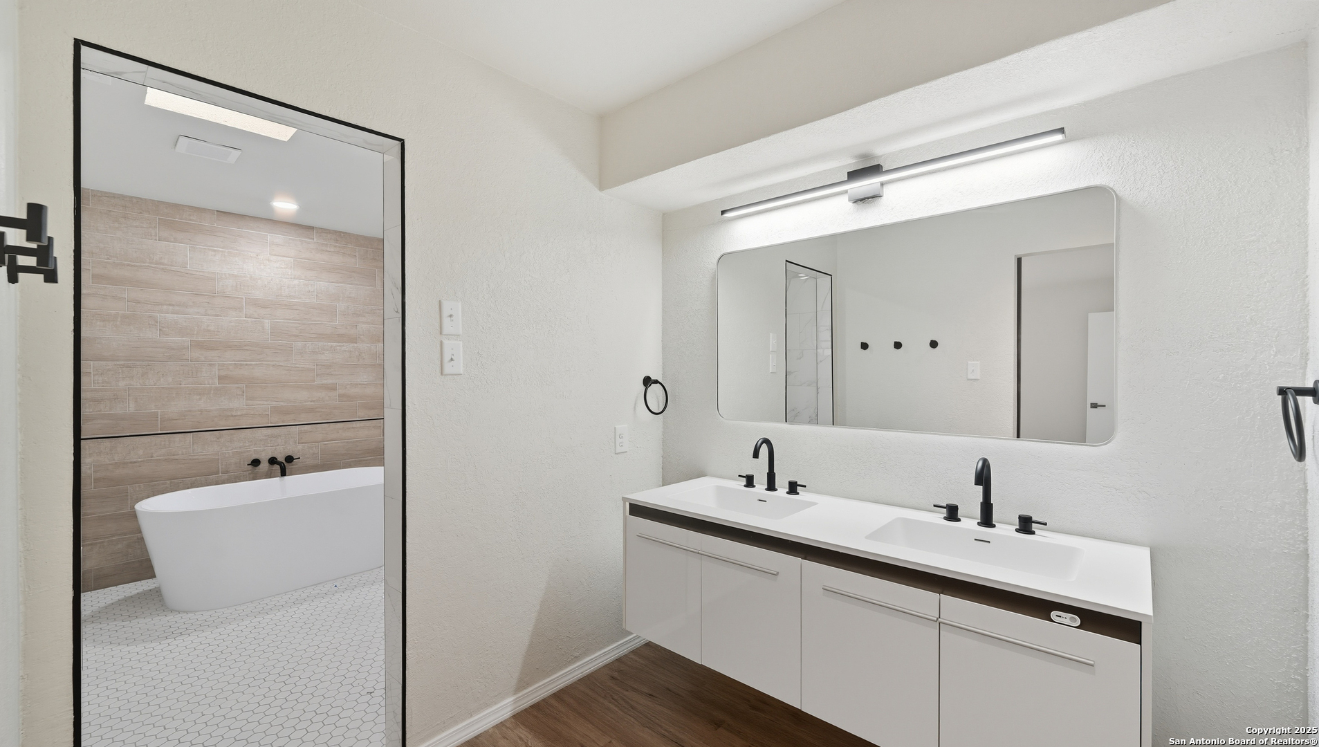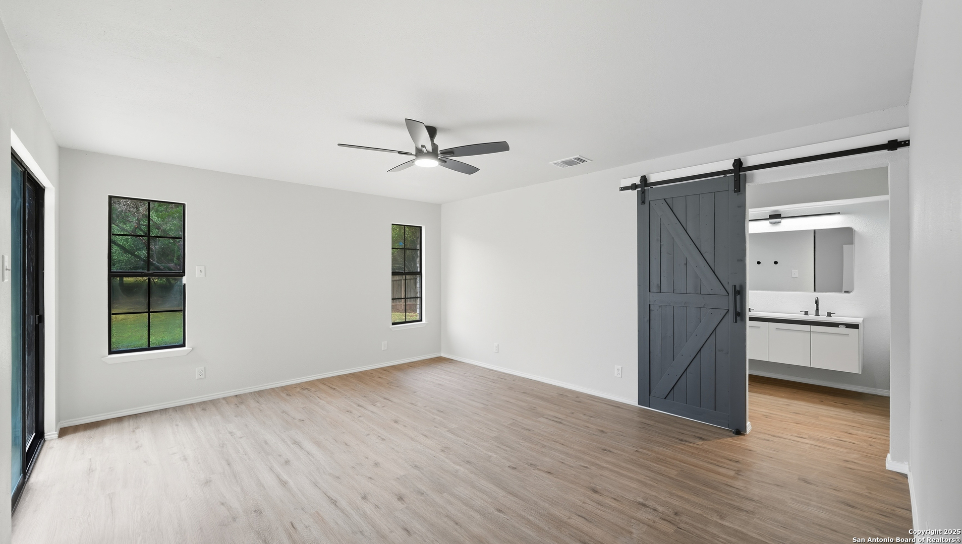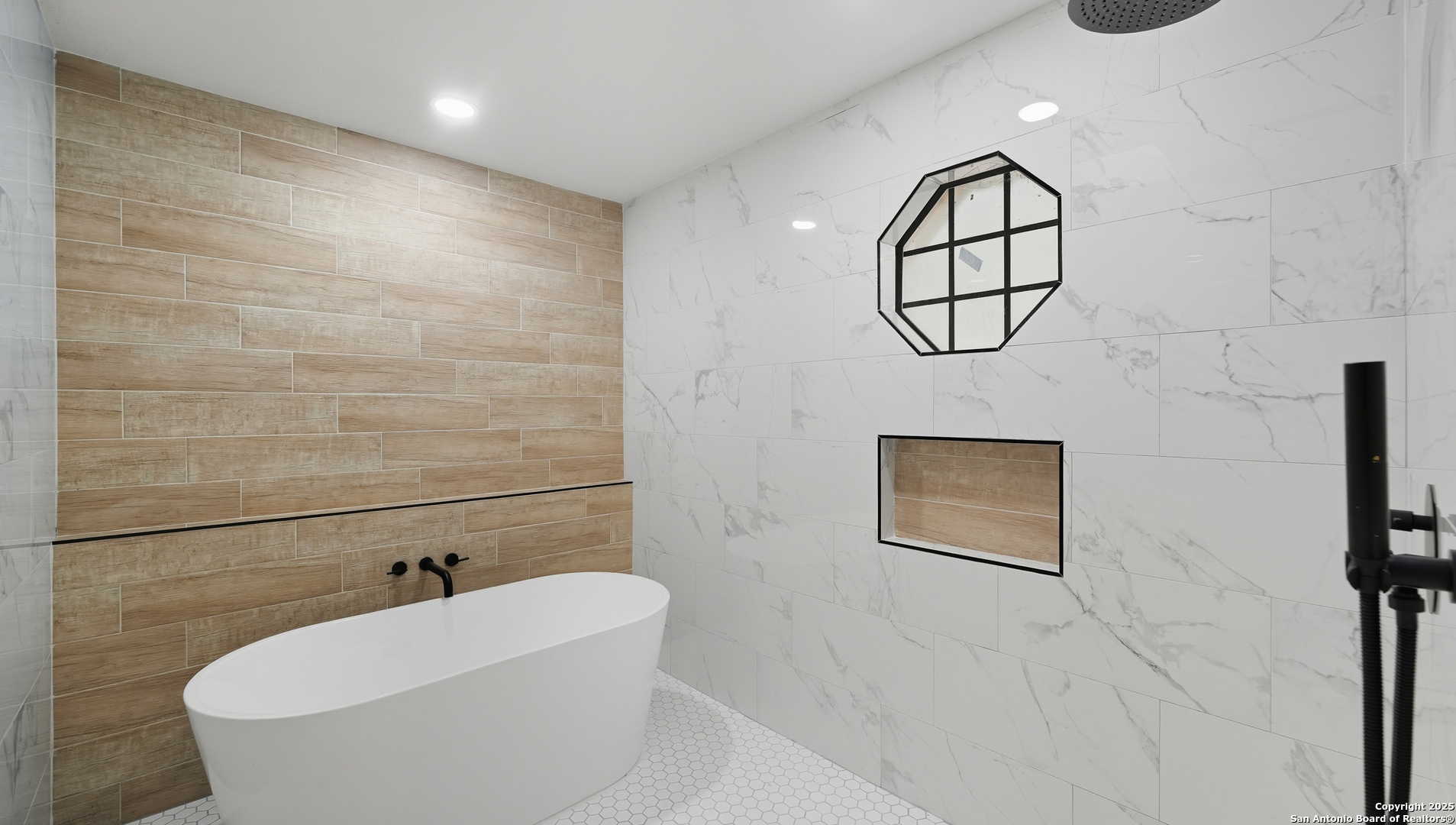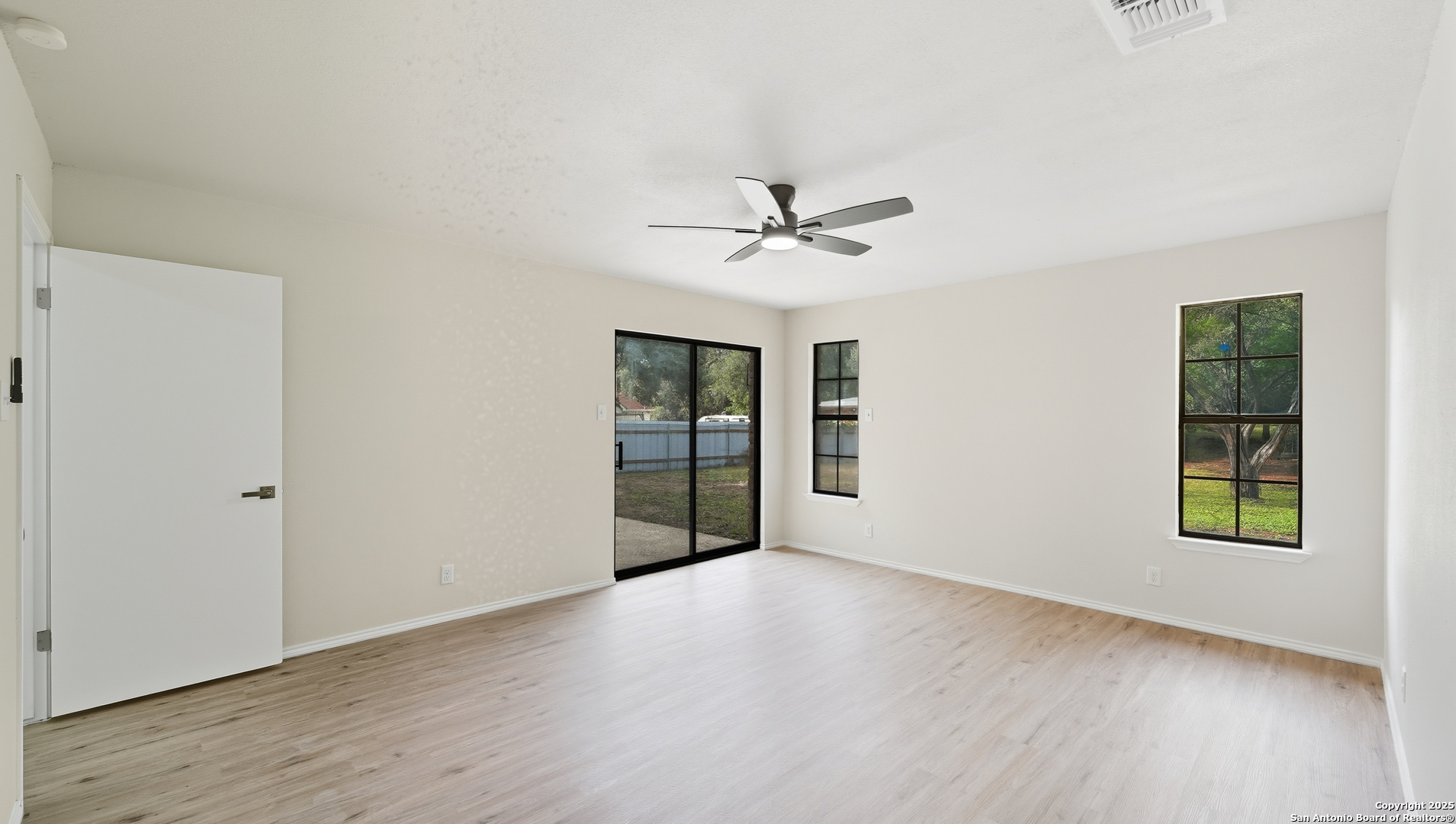 Welcome to 1738 Mountjoy St, a beautifully remodeled 3-bedroom, 2.5-bathroom, 2-story masterpiece in the heart of the coveted Kentwood Manor neighborhood in North Central San Antonio. Spanning 3,068 square feet on a sprawling 0.41-acre lot, this fully updated 1984-built home blends contemporary luxury with serene, nature-inspired living, offering the perfect balance of style and comfort. Step inside to discover a bright, open-concept interior transformed with brand-new flooring throughout, creating a seamless flow across the expansive living spaces. The heart of the home is the stunning, modern kitchen, featuring sleek white cabinetry, solid stone countertops, and stainless steel appliances - perfect for culinary enthusiasts and entertainers alike. Adjacent to the kitchen, a separate dining room and cozy breakfast nook provide versatile spaces for formal gatherings or casual mornings. A dedicated study/office offers a quiet retreat for work-from-home professionals or creative pursuits. The primary suite is a true haven, boasting a spacious layout and a luxurious, fully renovated en-suite bathroom with a walk-in shower and a new garden tub for ultimate relaxation. Every bedroom features generous walk-in closets, ensuring ample storage for all. The additional 2 bedrooms and updated full bathroom, plus a stylishly updated half-bath, provide comfort and convenience for family or guests. Designed for entertainment, the home includes a cozy fireplace in the living area and a chic wet bar, perfect for hosting friends or unwinding after a long day. Large windows flood the space with natural light, framing picturesque views of the lush, oak-shaded lot where deer roam daily, creating a tranquil, park-like atmosphere. The expansive 0.41-acre backyard is a private oasis, complete with a small seasonal creek that flows after rain, a playground set for family fun, and a storage shed for added convenience. Nestled in the serene Kentwood Manor subdivision, 1738 Mountjoy St offers a peaceful retreat with easy access to San Antonio's vibrant amenities. Minutes from highways 281 and Loop 1604, you're close to top-rated schools, shopping, dining, and entertainment, including nearby parks and recreational venues. The neighborhood's charm, abundant wildlife, and convenient location make it ideal for families, professionals, or anyone seeking a blend of city and country living.