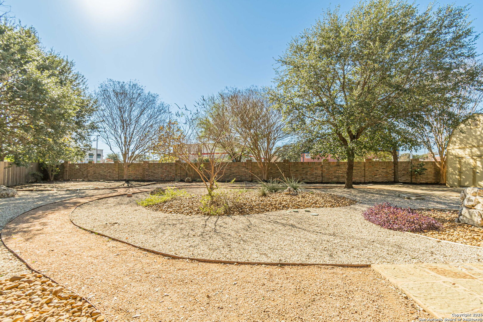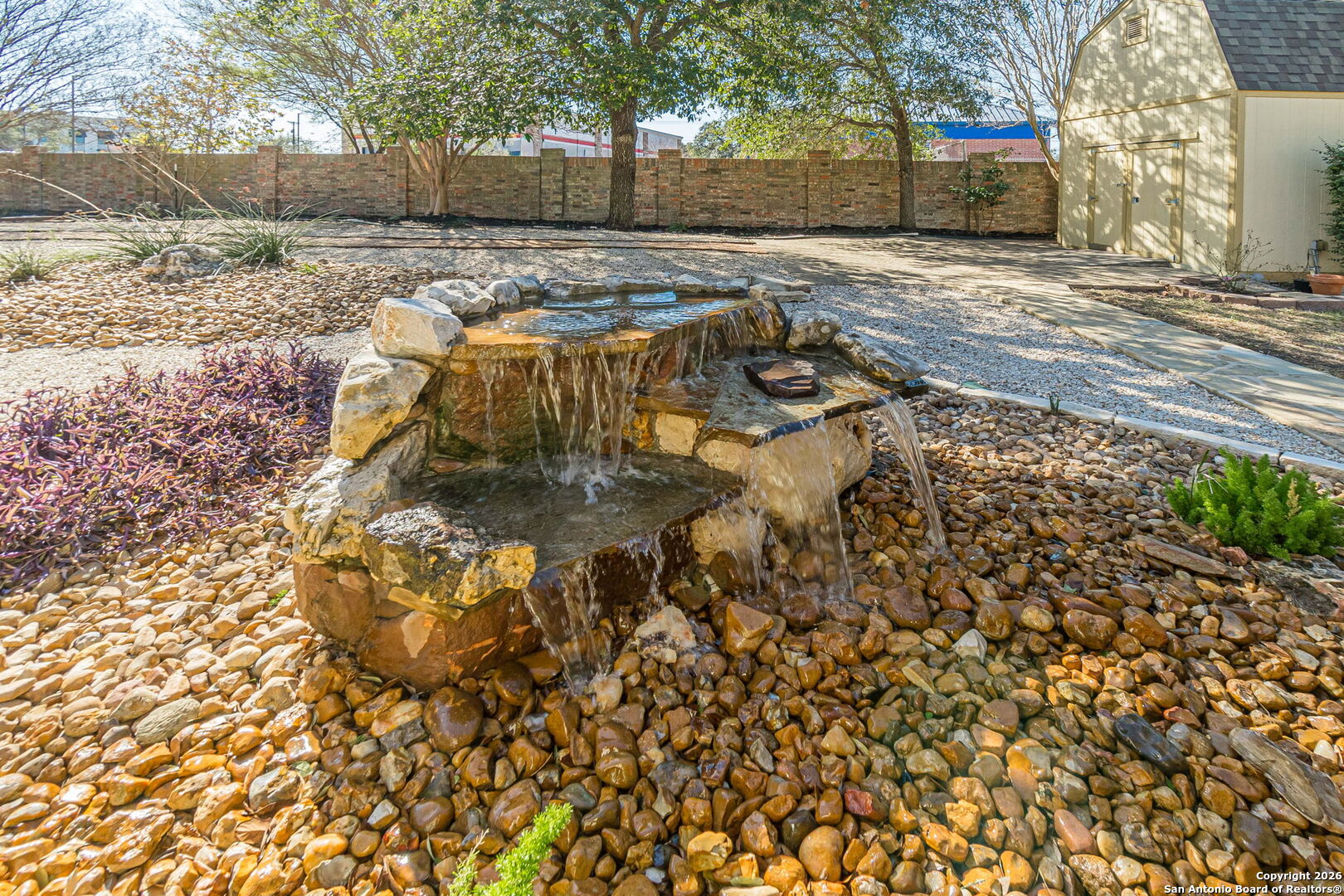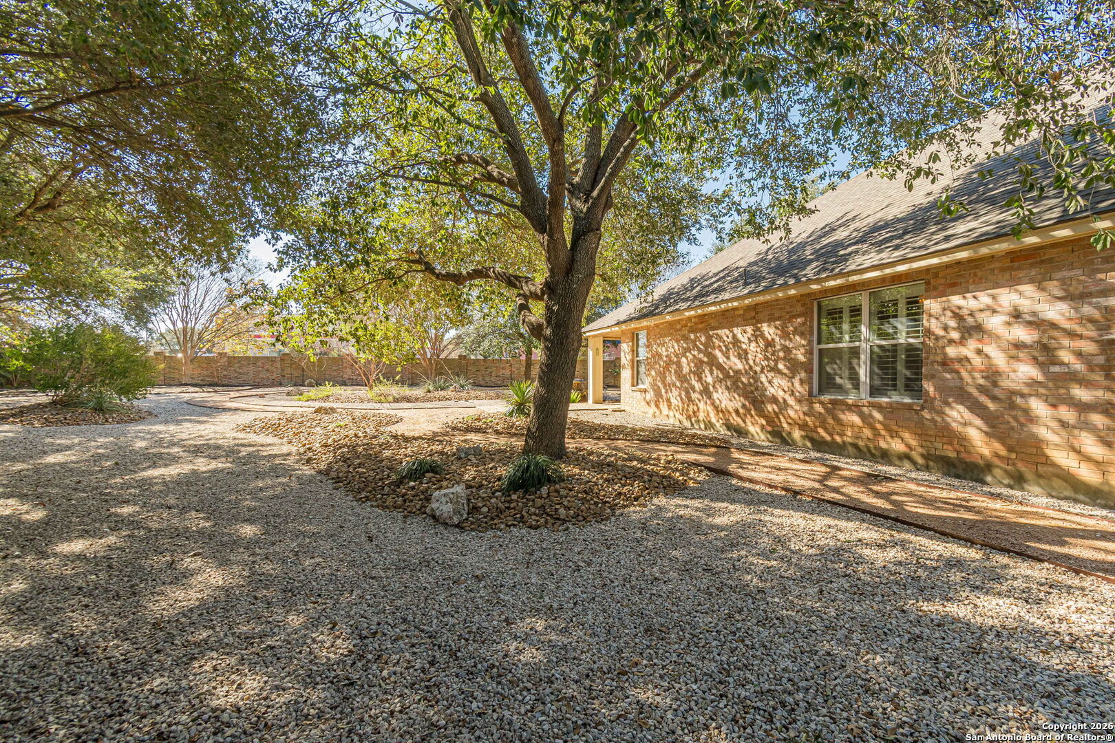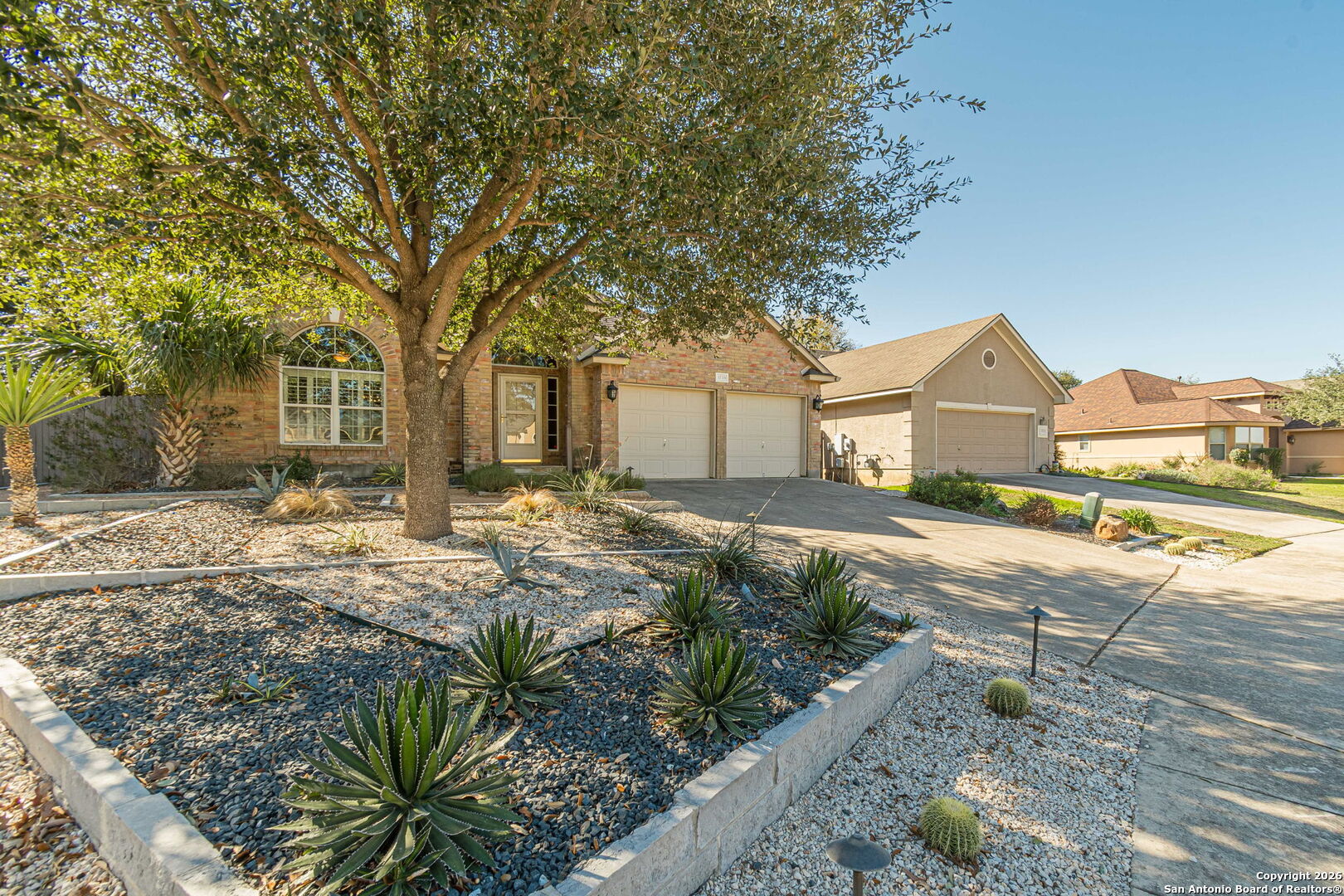 This is the kind of home where everyday life just works. Mornings start easily in the spacious kitchen, featuring ample cabinet space and a gas cooktop, while the open layout keeps everything connected without feeling crowded. There's room to gather in the main living area, space to spread out near the breakfast nook, and flexibility for both entertaining and quiet nights in. The primary suite feels like a true reset at the end of the day, complete with a sitting area, dual walk-in closets, a soaking garden tub, and a separate walk-in shower. Secondary bedrooms are thoughtfully connected by a Jack-and-Jill bath, offering a practical layout without sacrificing privacy. Set on an exceptional .37-acre cul-de-sac lot, the outdoor space is a true standout. The low-maintenance xeriscape yard means less upkeep and more time to relax, with shaded seating areas, a spa, and a calming water feature. An oversized shed with a loft provides ample storage without taking away from the yard's size or privacy. Located in Oak Run, residents enjoy access to a community pool, sports courts, and playgrounds - all just minutes from HEB, schools, shopping, and dining.
