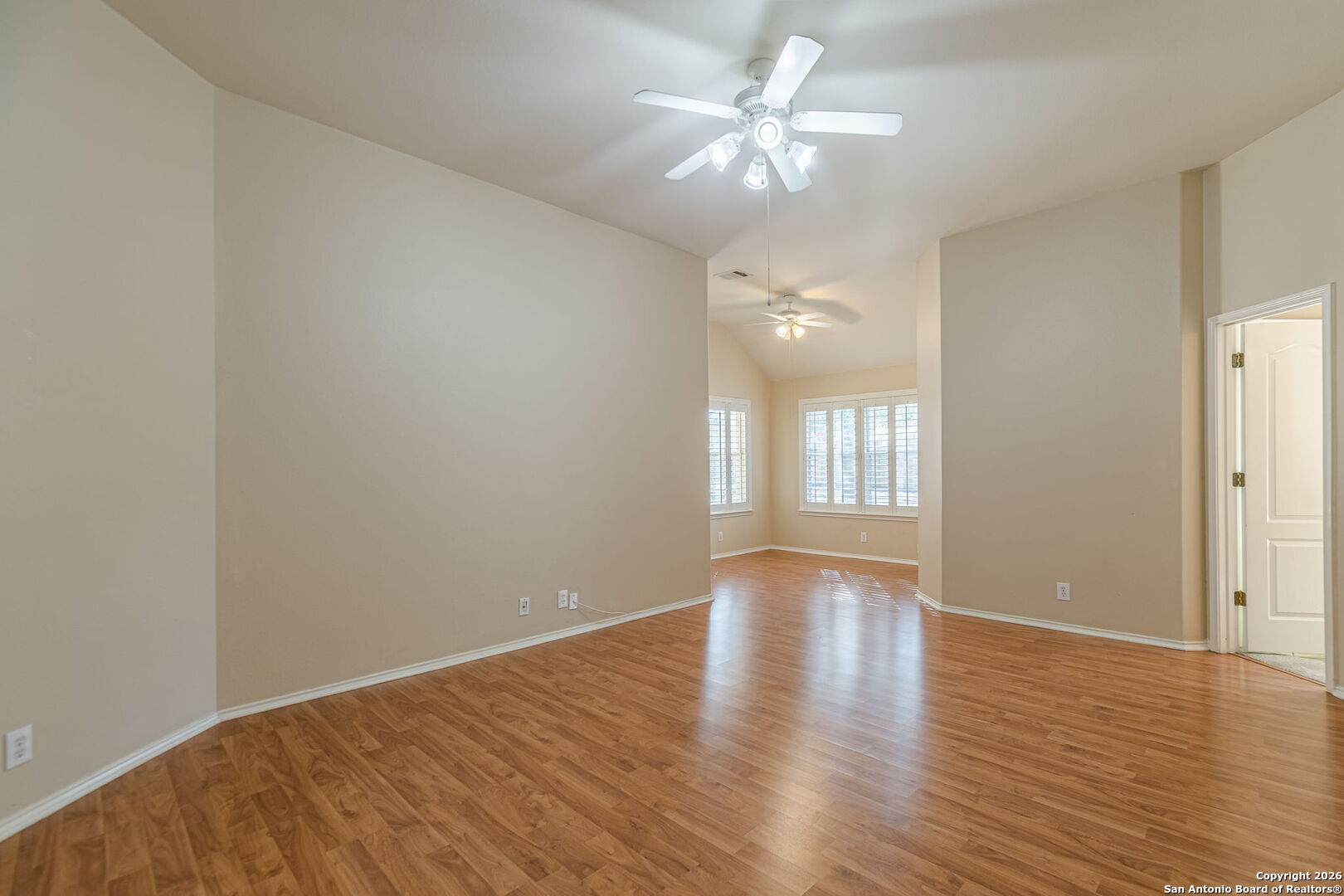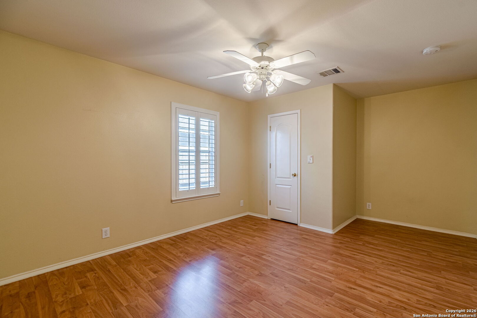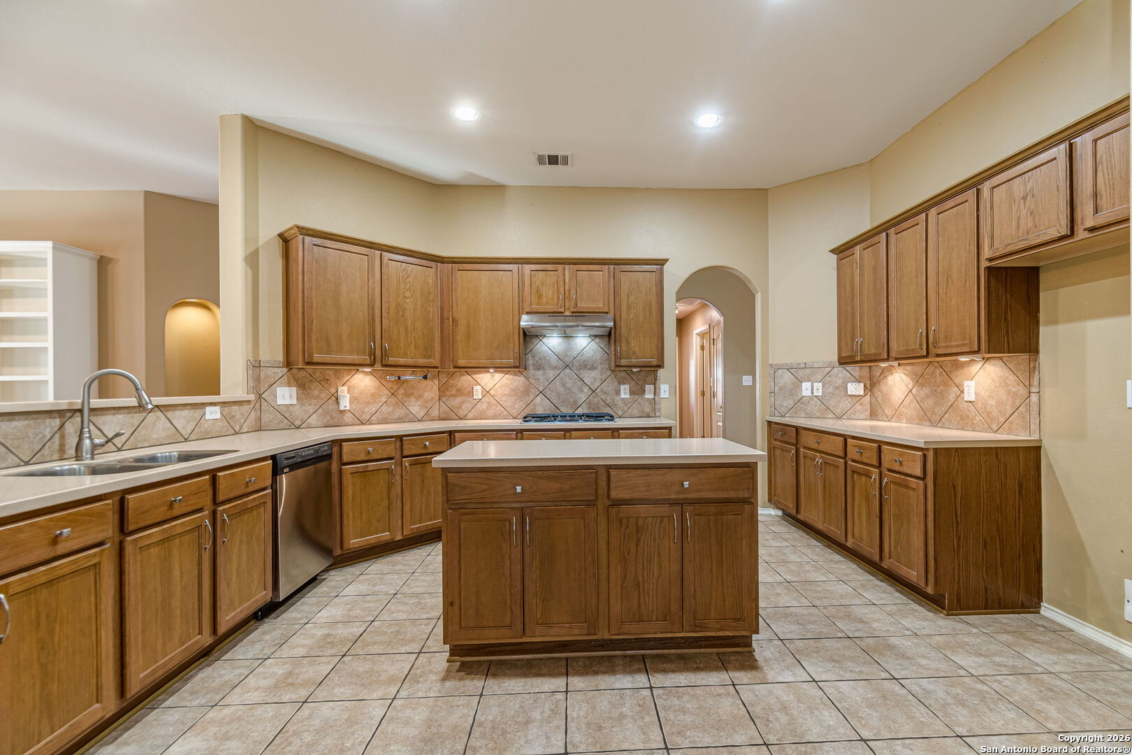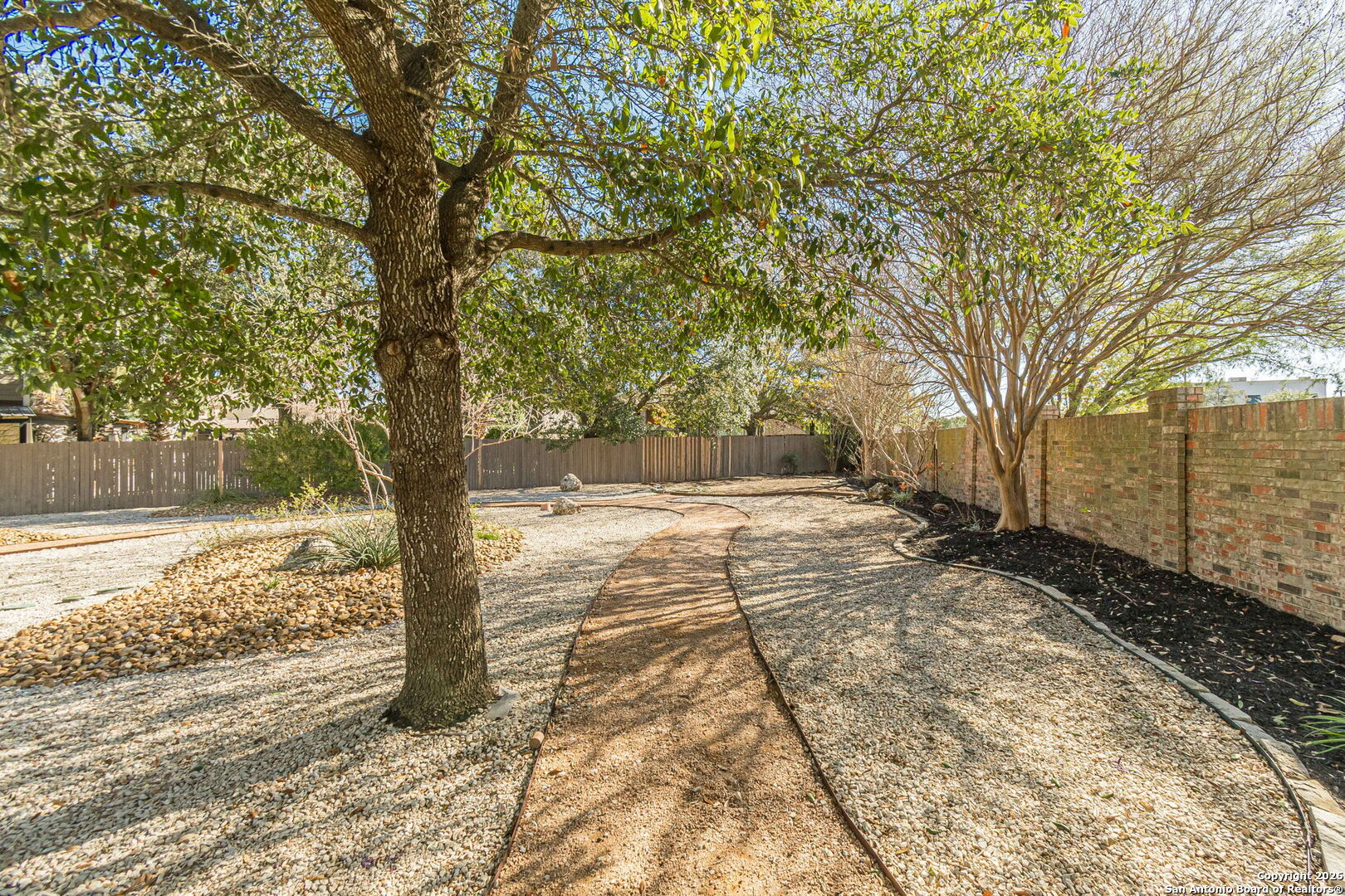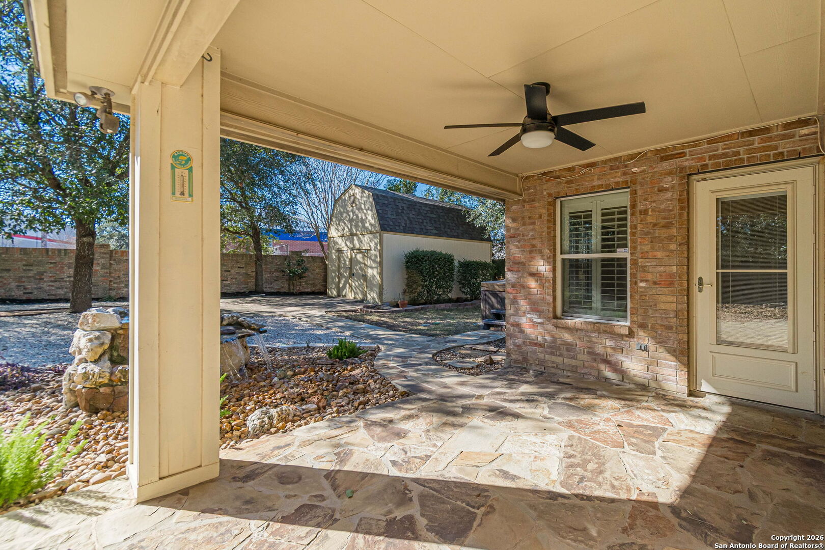 This is the kind of home where everyday life just works. Mornings start easily in the spacious kitchen, featuring ample cabinet space and a gas cooktop, while the open layout keeps everything connected without feeling crowded. There's room to gather in the main living area, space to spread out near the breakfast nook, and flexibility for both entertaining and quiet nights in. The primary suite feels like a true reset at the end of the day, complete with a sitting area, dual walk-in closets, a soaking garden tub, and a separate walk-in shower. Secondary bedrooms are thoughtfully connected by a Jack-and-Jill bath, offering a practical layout without sacrificing privacy. Set on an exceptional .37-acre cul-de-sac lot, the outdoor space is a true standout. The low-maintenance xeriscape yard means less upkeep and more time to relax, with shaded seating areas, a spa, and a calming water feature. An oversized shed with a loft provides ample storage without taking away from the yard's size or privacy. Located in Oak Run, residents enjoy access to a community pool, sports courts, and playgrounds - all just minutes from HEB, schools, shopping, and dining.
