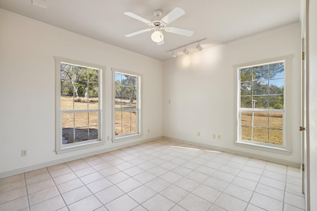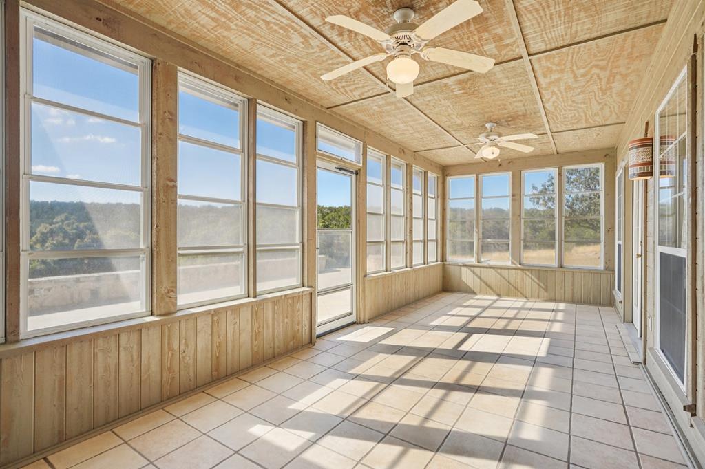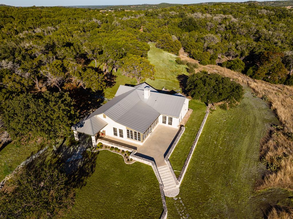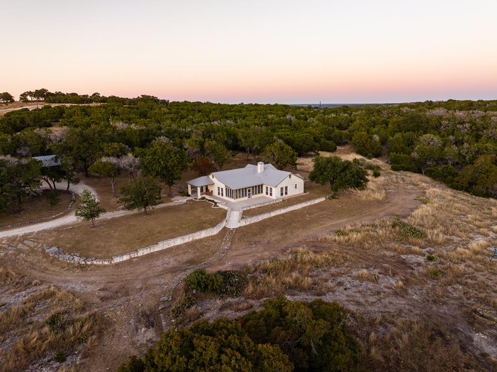 Experience Hill Country living on this serene and private 60.5-acre ranch located inside the exclusive Comanche Caves Ranch community of large-acreage properties. Enjoy beautiful views, wide-open space, abundant wildlife, and two spring-fed ponds that enhance the peaceful setting. Explore numerous walking trails and enjoy deeded access to the HOA River Park of over 25 acres with 2,200 linear feet of Guadalupe River frontage on both sides, plus exclusive use of the private 3,000-ft airstrip. Multiple prime building-site opportunities offer room for future expansion, whether you envision a larger primary residence or additional guest quarters. Inside, the 3-bedroom, 2-bath home features an inviting open-concept living, dining, and kitchen area with exposed beams, natural light, and a bright sunroom. The primary suite includes sunroom access, dual walk-in closets, a water closet, jetted tub with shower, and double vanity. A full rock exterior, covered porch, and spacious back patio complete this private Hunt retreat, offering a rare combination of convenience, privacy, and country luxury. A 24 kW Generac standby generator and active ag valuation help keep ownership low-maintenance.