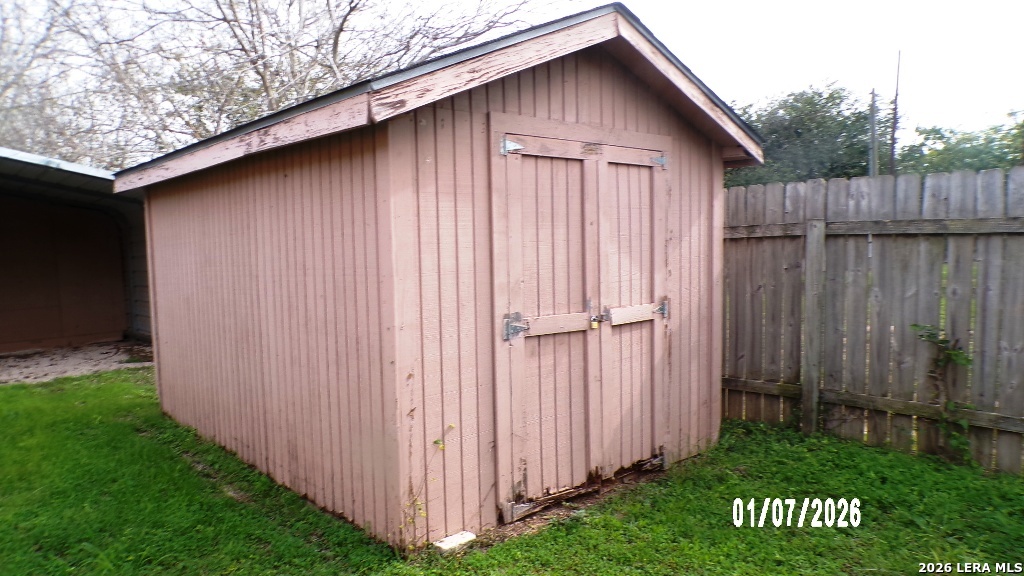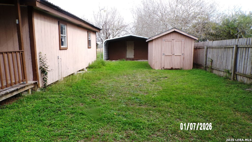 Country living in Blueberry Hill just outside Beeville TX but has city water only Easy to care for lot and ready to move in 2 bedroom, 1 bath cottage with covered front porch deck, nice, oversized kitchen and back door to laundry room. back and side yard to 2 car carport with storage and second storage Bldg. Front fenced gate, Front door porch deck 11 X 12