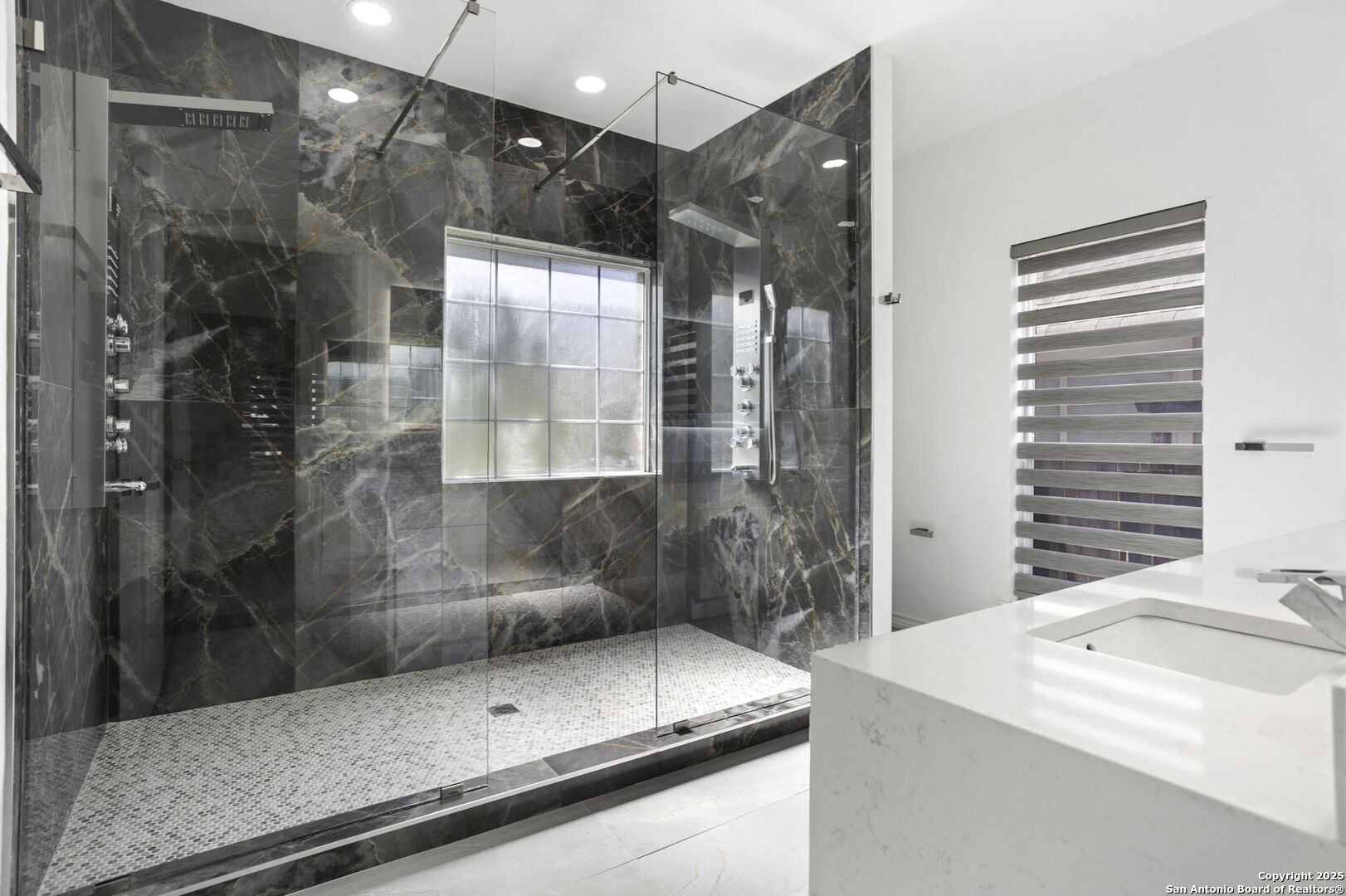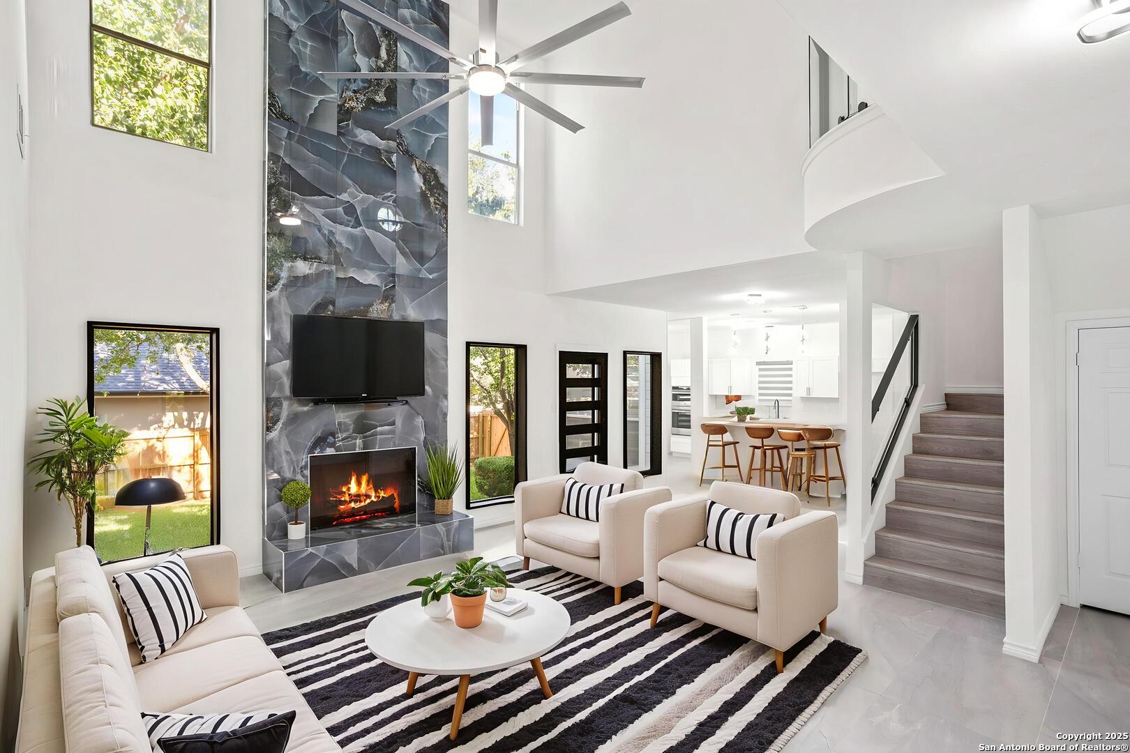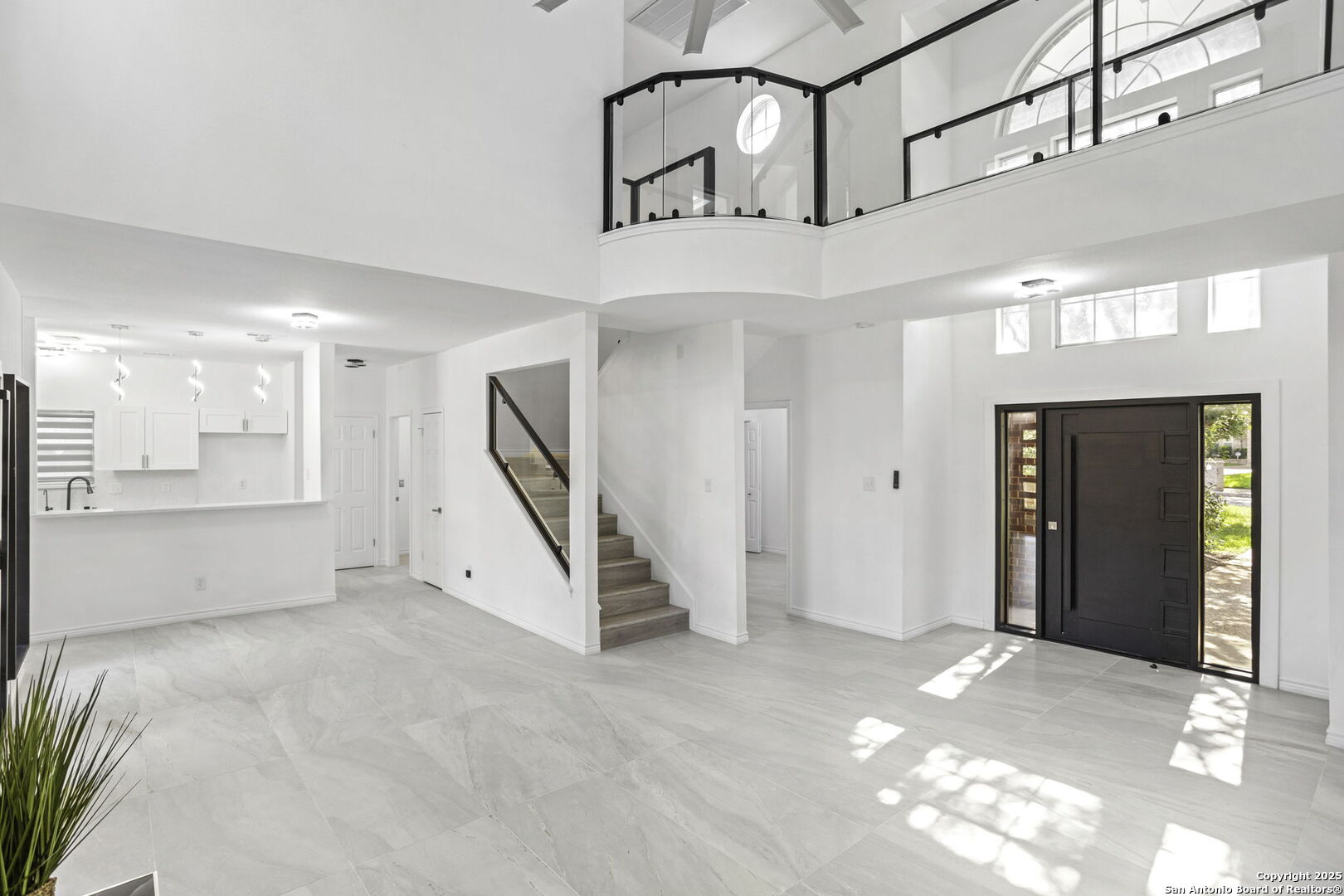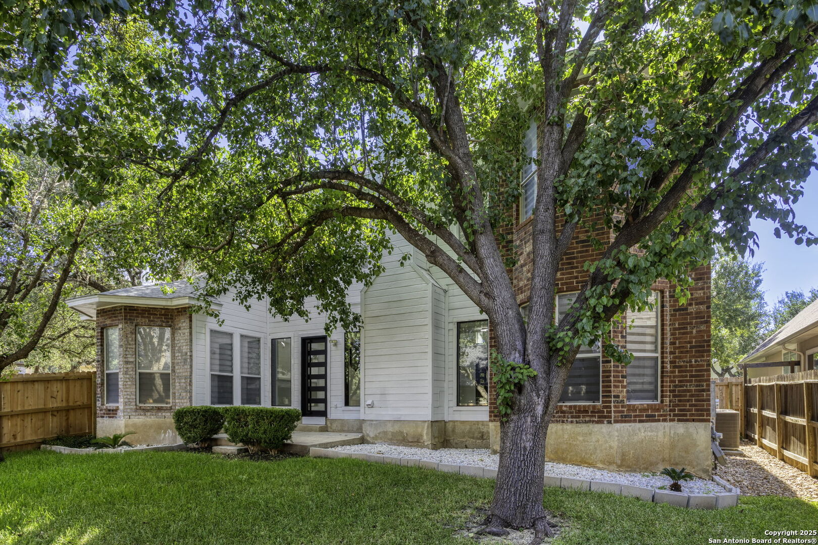 Welcome to a stunning, fully renovated residence in the gated enclave of Canyon Creek Bluff-ideally located just north of Deerfield at Blanco and Loop 1604. Nestled in a community of only 130 homes, this corner-lot gem combines elegance, convenience, and thoughtful upgrades just 0.3 miles from vibrant shopping and dining in nearby Stone Oak. Exceptional Outdoor Appeal Enjoy a lush lawn of St. Augustine grass, maintained by a full sprinkler system and complemented by a water softener for added comfort. Over $100,000 in Modern Upgrades From the sleek custom steel front door to upgraded windows, doors, flooring, and wall finishes, every detail reflects refined craftsmanship. Sophisticated Bathrooms Each bathroom features dual vanities and double showers, delivering a spa-inspired experience with a clean, modern aesthetic. Gourmet Kitchen Cook like a pro with built-in oven and microwave, custom sink, and a contemporary cooktop-all designed for form and function. Smart and Spacious Design Downstairs, enjoy the privacy of a Primary Suite and the convenience of a home office. Upstairs offers three spacious bedrooms connected by a dramatic catwalk, adding architectural flair. Striking Interior Touches Unique windows, handcrafted railings, elegant fixtures, and premium blinds add character to every space.