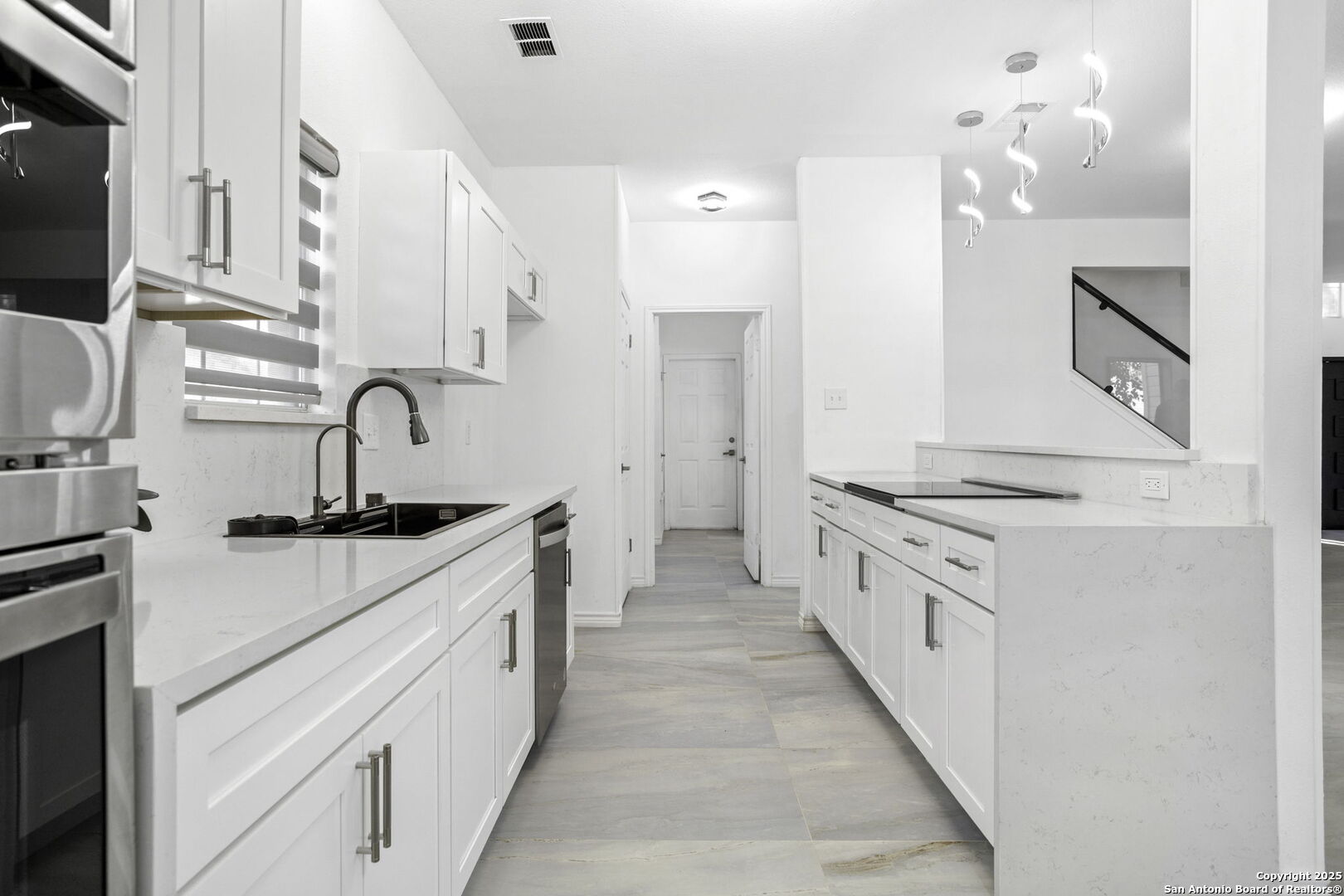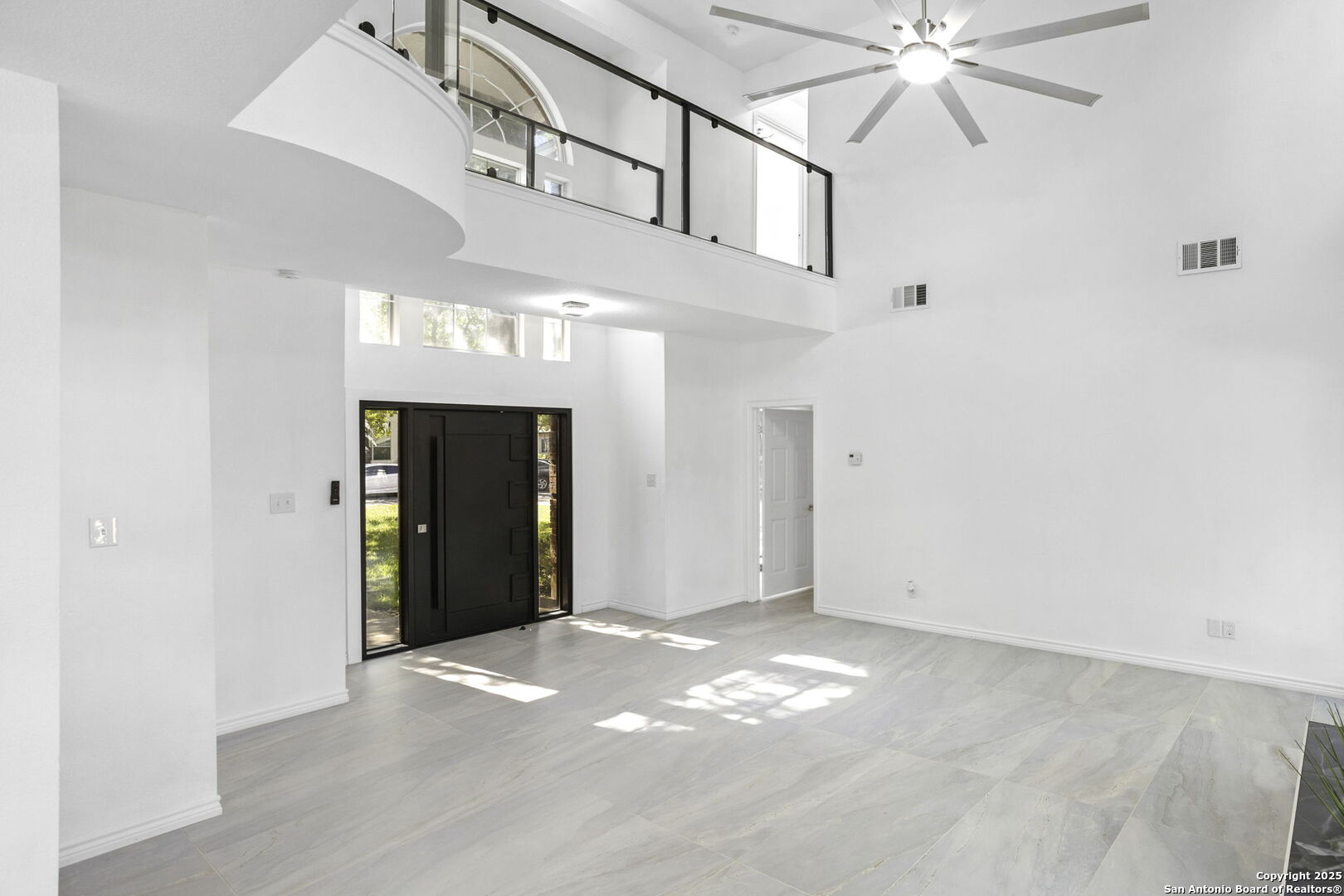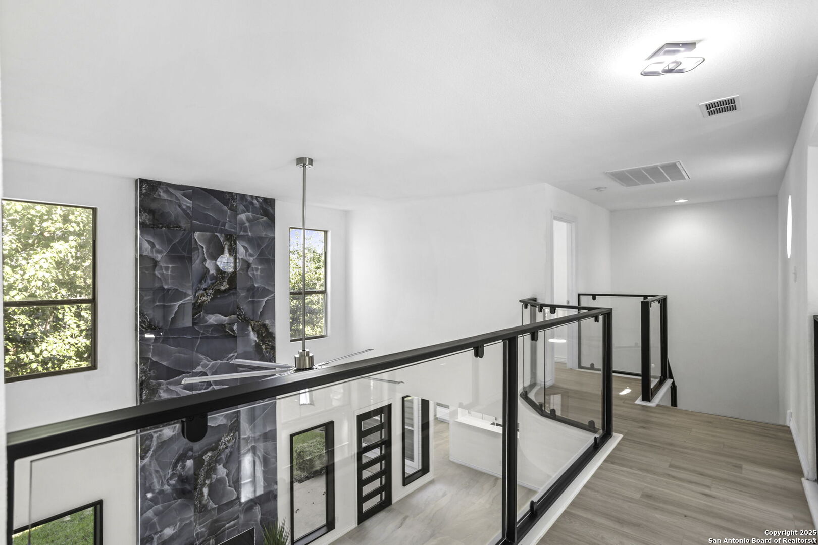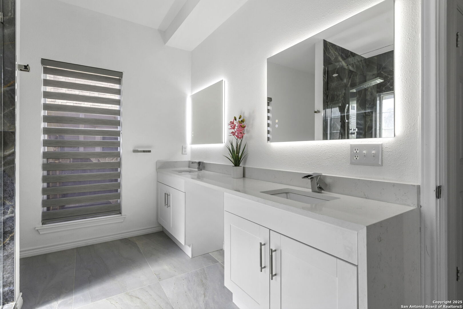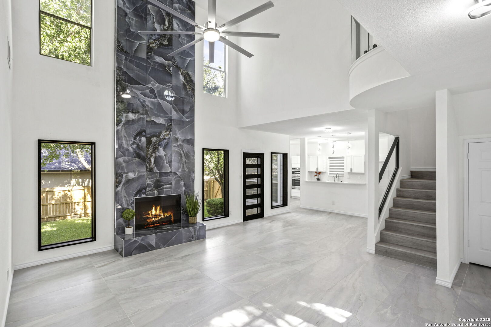 Welcome to a stunning, fully renovated residence in the gated enclave of Canyon Creek Bluff-ideally located just north of Deerfield at Blanco and Loop 1604. Nestled in a community of only 130 homes, this corner-lot gem combines elegance, convenience, and thoughtful upgrades just 0.3 miles from vibrant shopping and dining in nearby Stone Oak. Exceptional Outdoor Appeal Enjoy a lush lawn of St. Augustine grass, maintained by a full sprinkler system and complemented by a water softener for added comfort. Over $100,000 in Modern Upgrades From the sleek custom steel front door to upgraded windows, doors, flooring, and wall finishes, every detail reflects refined craftsmanship. Sophisticated Bathrooms Each bathroom features dual vanities and double showers, delivering a spa-inspired experience with a clean, modern aesthetic. Gourmet Kitchen Cook like a pro with built-in oven and microwave, custom sink, and a contemporary cooktop-all designed for form and function. Smart and Spacious Design Downstairs, enjoy the privacy of a Primary Suite and the convenience of a home office. Upstairs offers three spacious bedrooms connected by a dramatic catwalk, adding architectural flair. Striking Interior Touches Unique windows, handcrafted railings, elegant fixtures, and premium blinds add character to every space.