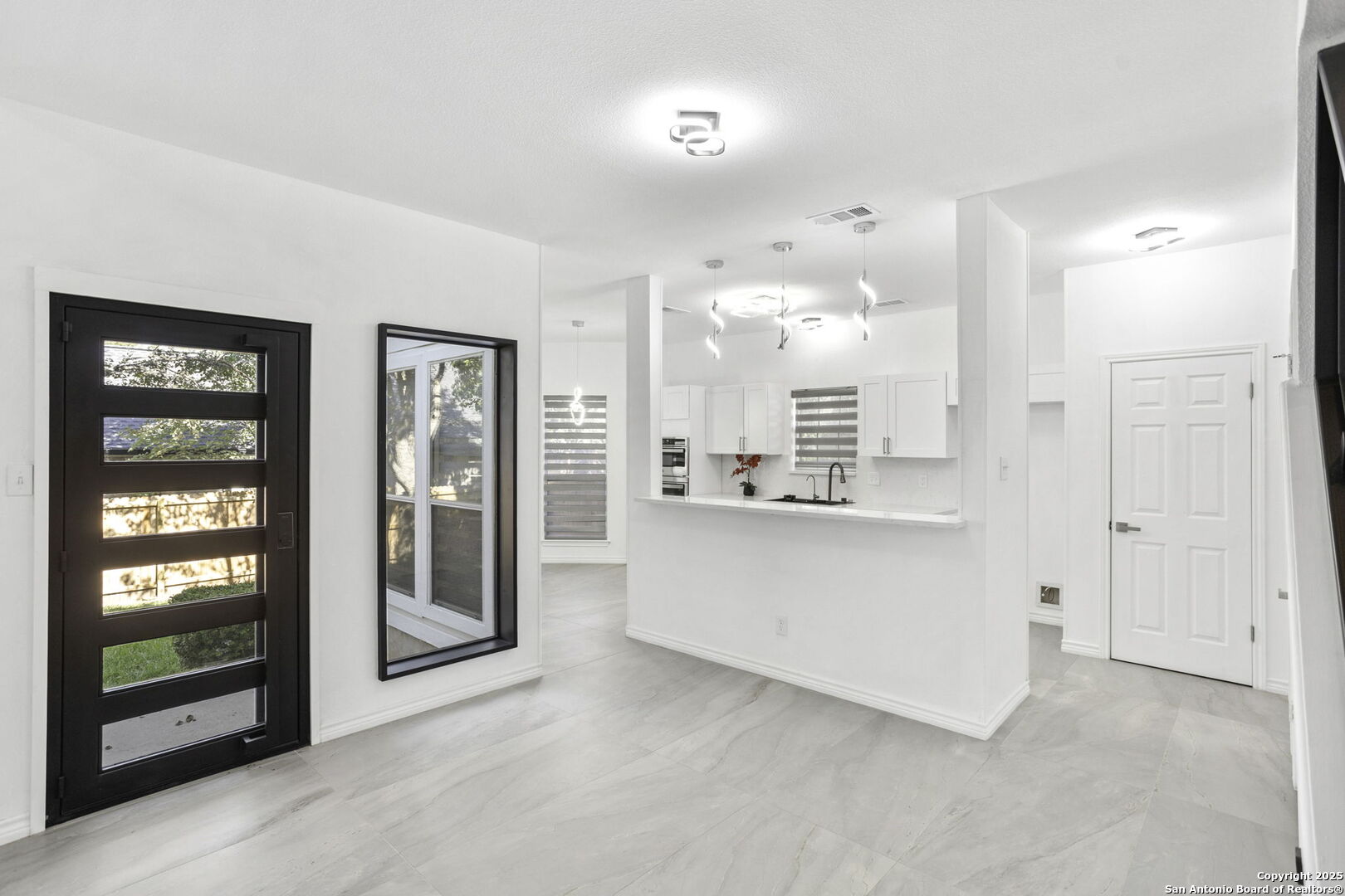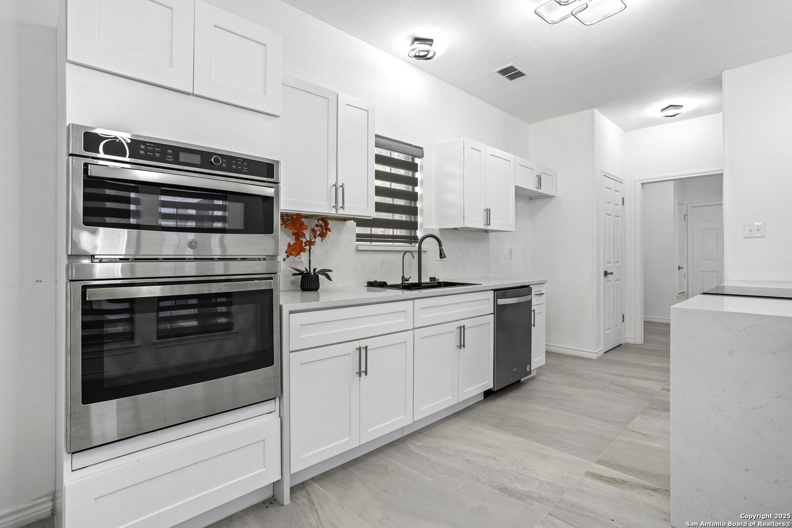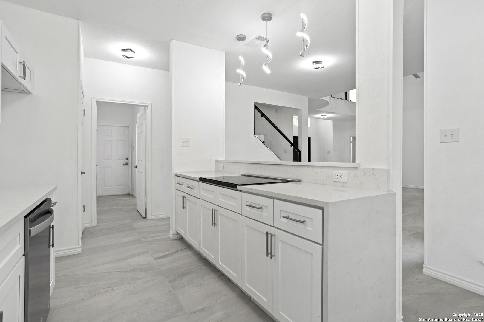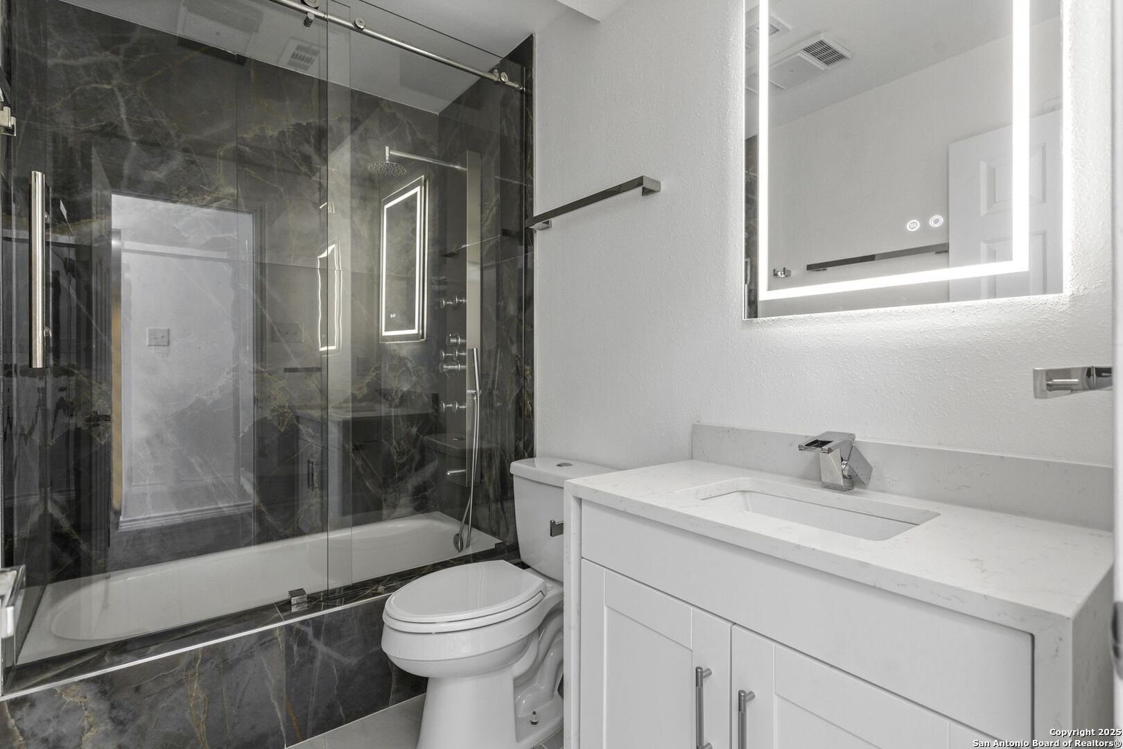 Welcome to a stunning, fully renovated residence in the gated enclave of Canyon Creek Bluff-ideally located just north of Deerfield at Blanco and Loop 1604. Nestled in a community of only 130 homes, this corner-lot gem combines elegance, convenience, and thoughtful upgrades just 0.3 miles from vibrant shopping and dining in nearby Stone Oak. Exceptional Outdoor Appeal Enjoy a lush lawn of St. Augustine grass, maintained by a full sprinkler system and complemented by a water softener for added comfort. Over $100,000 in Modern Upgrades From the sleek custom steel front door to upgraded windows, doors, flooring, and wall finishes, every detail reflects refined craftsmanship. Sophisticated Bathrooms Each bathroom features dual vanities and double showers, delivering a spa-inspired experience with a clean, modern aesthetic. Gourmet Kitchen Cook like a pro with built-in oven and microwave, custom sink, and a contemporary cooktop-all designed for form and function. Smart and Spacious Design Downstairs, enjoy the privacy of a Primary Suite and the convenience of a home office. Upstairs offers three spacious bedrooms connected by a dramatic catwalk, adding architectural flair. Striking Interior Touches Unique windows, handcrafted railings, elegant fixtures, and premium blinds add character to every space.