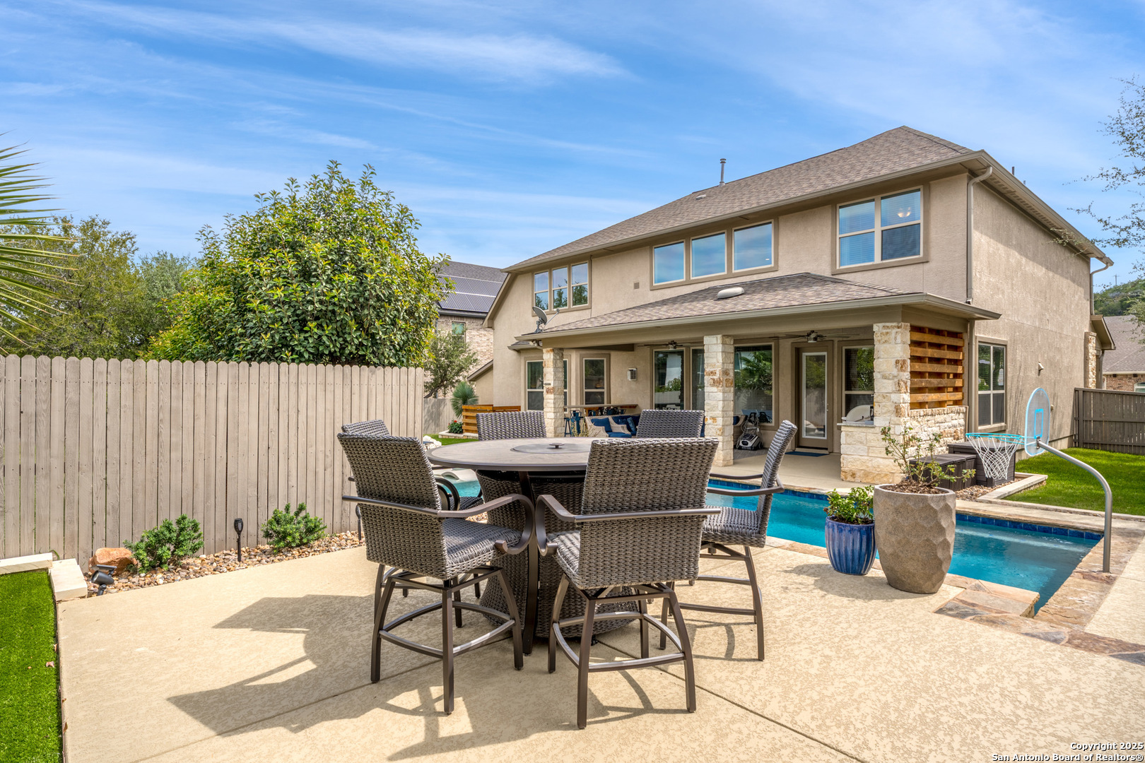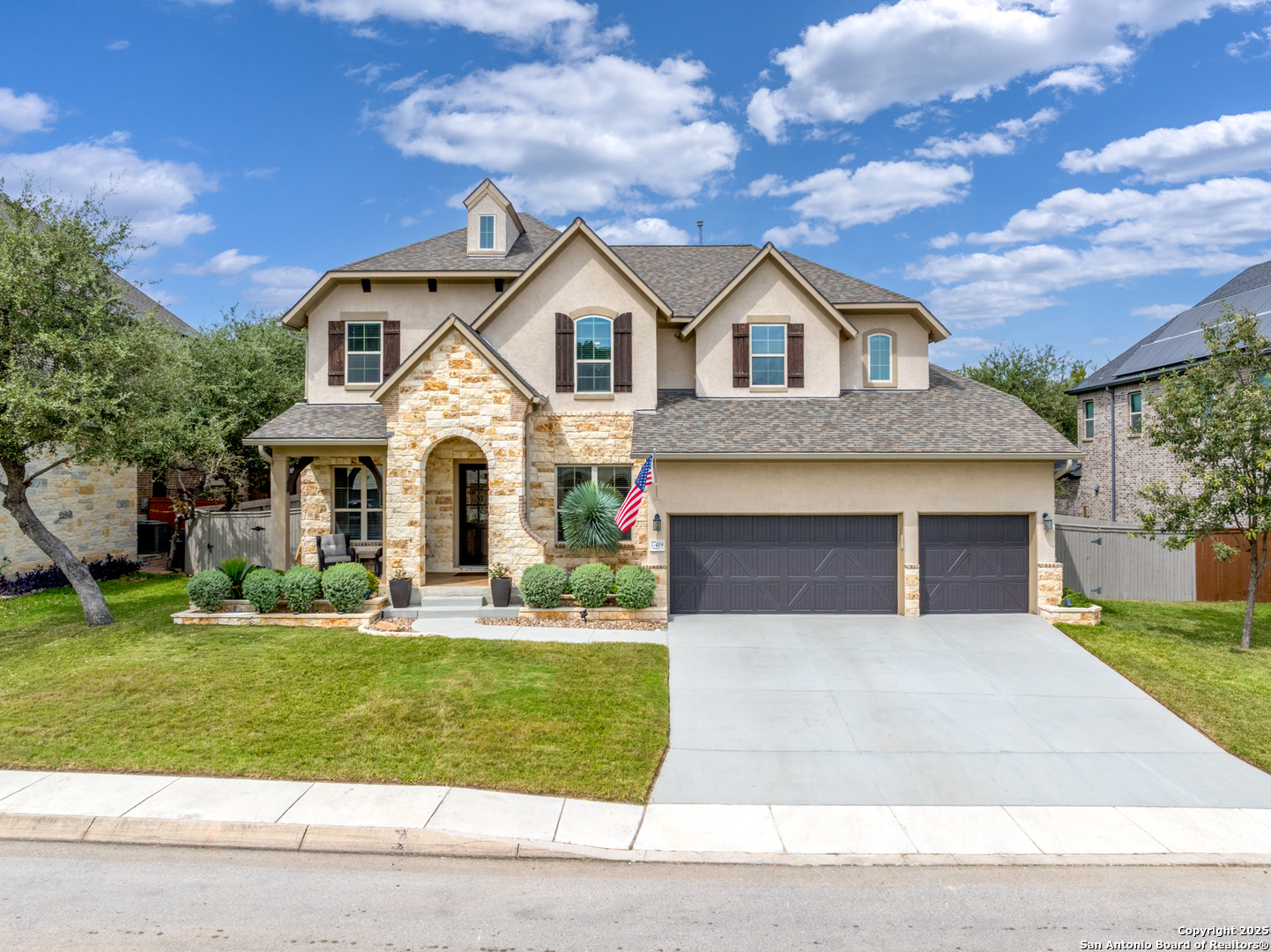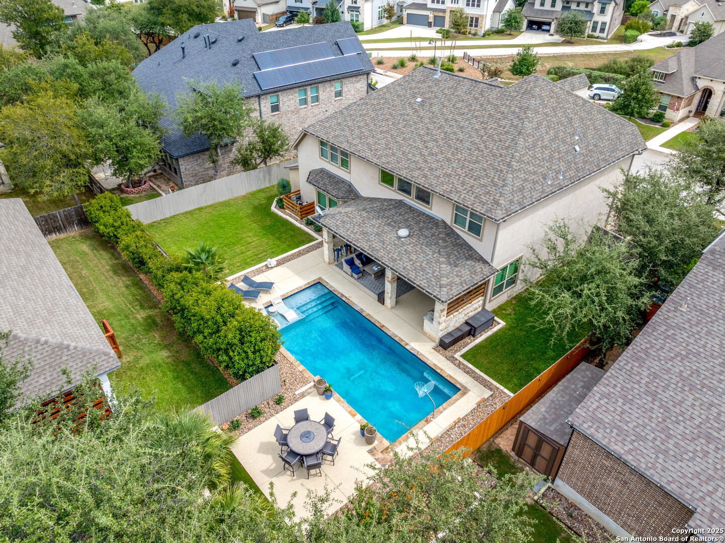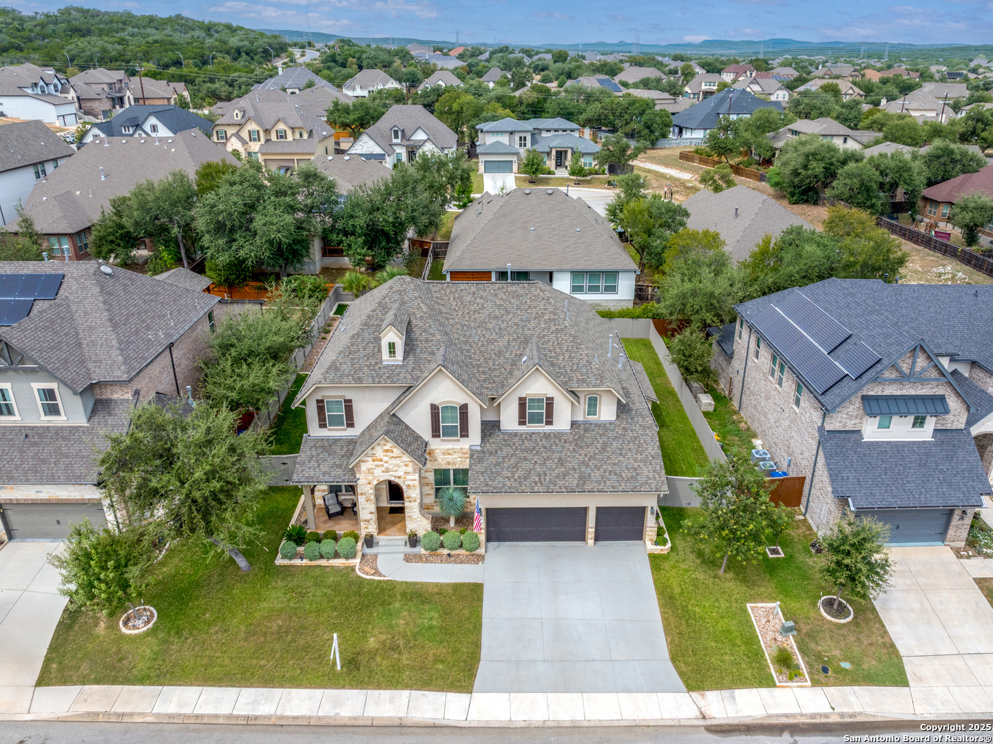 *** OPEN HOUSE - SATURDAY, 11/22/2025, 12:00 PM - 2:00 PM *** Ask about the "Buy before You Sell" Program or the "Doctors & Physicians Program" being offered by one of our preferred lenders! *** Welcome to a refined retreat in the prestigious Shavano Highlands community - ideally located just minutes from San Antonio's Medical Center, UT Health campuses, and major hospitals. (Also 1.2 Miles - four minutes - from Cornerstone High School and Warrior Stadium). This beautifully designed home offers the perfect blend of sophistication and practicality. The open-concept living area features high ceilings, wood-style ceramic tile flooring, and expansive windows that fill the space with natural light. The chef's kitchen showcases gas cooking, a large island with seating, and built-in stainless steel appliances - perfect for both entertaining and quiet evenings at home. The primary suite serves as a serene sanctuary after long hours at work, complete with a spa-inspired bath featuring dual vanities, a soaking tub, and a walk-in shower. A dedicated home office provides the ideal space for focused productivity, telehealth work, or study. Upstairs, a spacious loft with a projector and XL movie screen offers the ultimate second lounge for relaxing or entertaining guests. Outside, the saltwater pool invites both sunbathing and pool volleyball, while the outdoor kitchen and covered patio create the perfect setting for weekend gatherings or peaceful evenings under the stars. Additional features include abundant storage throughout, including a partially floored attic (with shelves) and a thoughtfully designed professional add-on to the home (with shelves, electric, and lighting). With quick access to Loop 1604, I-10, the Medicine Wall (rock climbing), Salado Creek trailhead, and just minutes from La Cantera's Coyote Dog Park, premier dining, and upscale shopping, this location offers unmatched convenience and lifestyle appeal for busy professionals seeking balance between work and well-being.