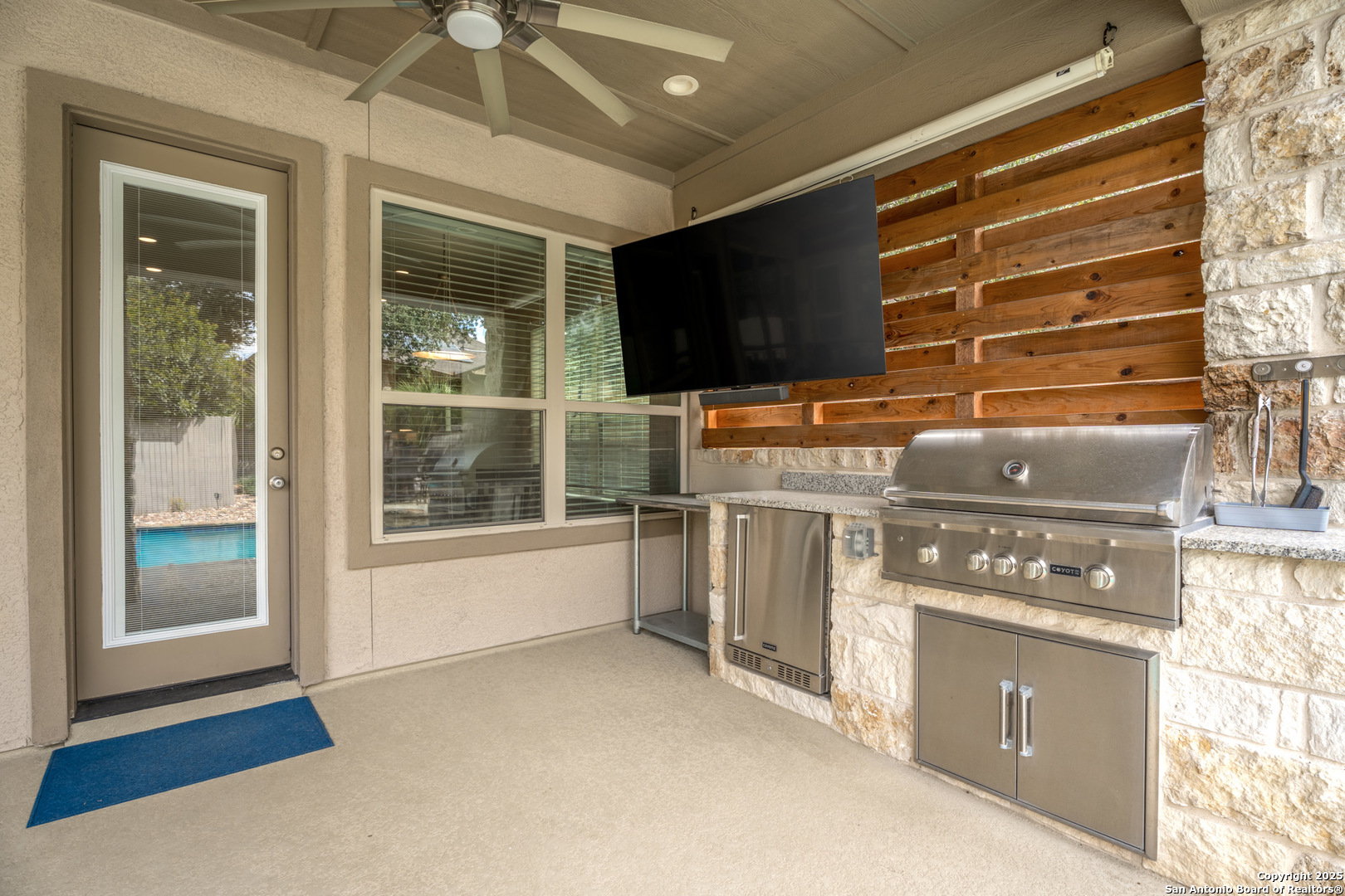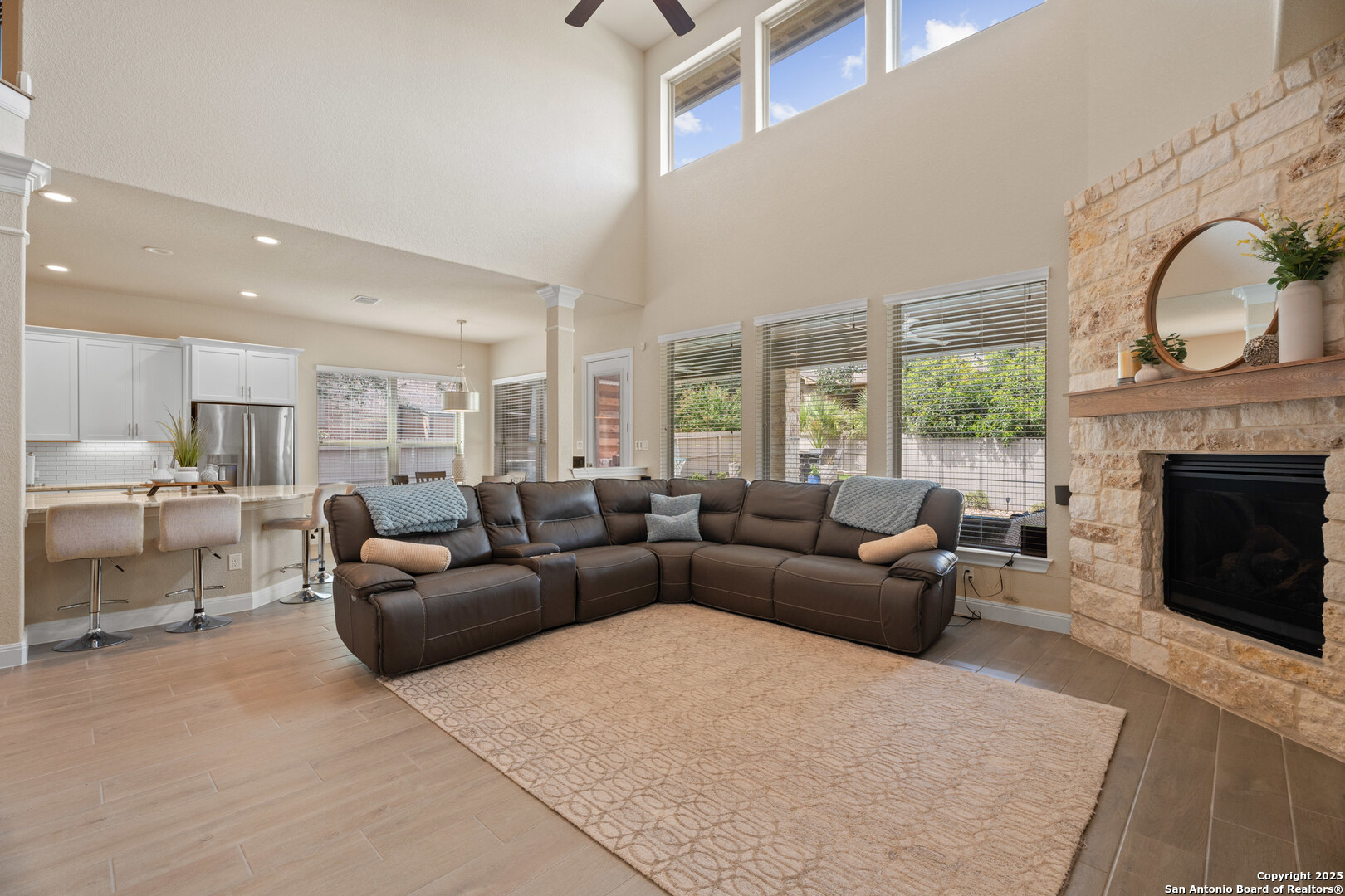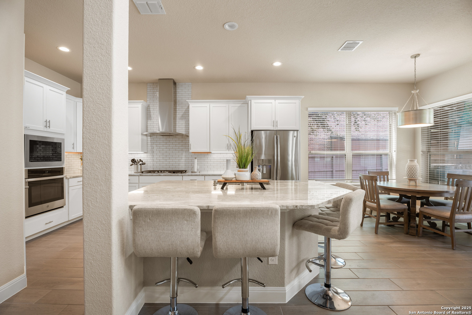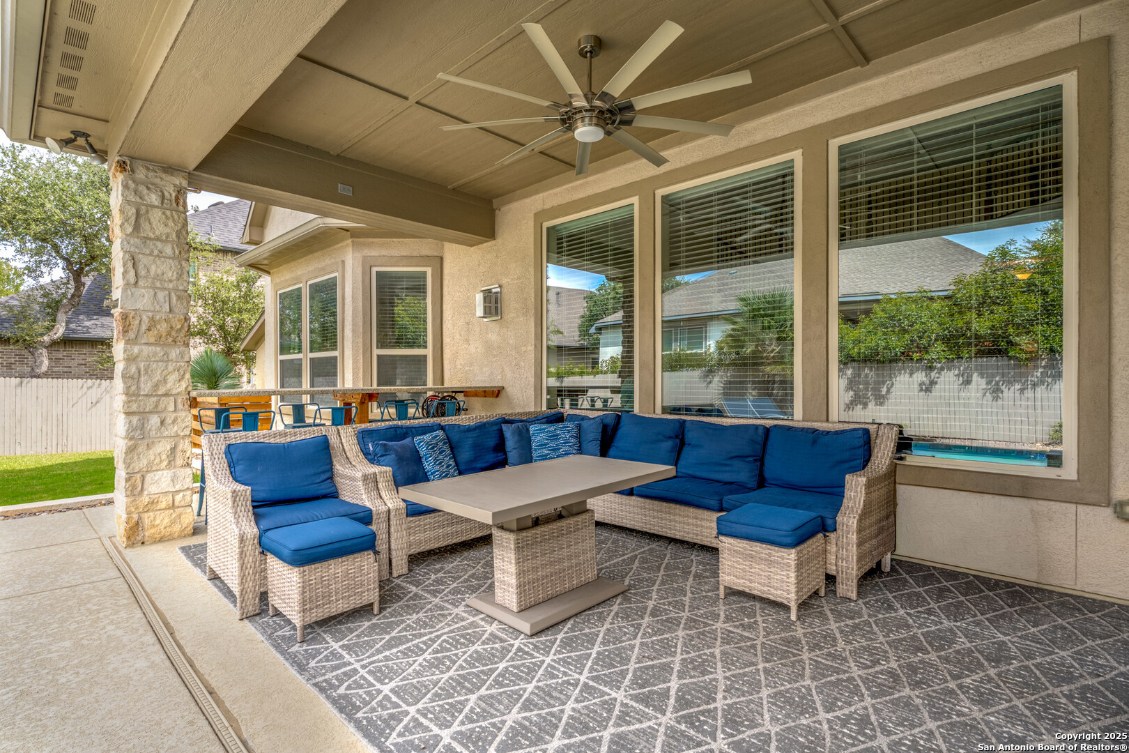 *** OPEN HOUSE - SATURDAY, 11/22/2025, 12:00 PM - 2:00 PM *** Ask about the "Buy before You Sell" Program or the "Doctors & Physicians Program" being offered by one of our preferred lenders! *** Welcome to a refined retreat in the prestigious Shavano Highlands community - ideally located just minutes from San Antonio's Medical Center, UT Health campuses, and major hospitals. (Also 1.2 Miles - four minutes - from Cornerstone High School and Warrior Stadium). This beautifully designed home offers the perfect blend of sophistication and practicality. The open-concept living area features high ceilings, wood-style ceramic tile flooring, and expansive windows that fill the space with natural light. The chef's kitchen showcases gas cooking, a large island with seating, and built-in stainless steel appliances - perfect for both entertaining and quiet evenings at home. The primary suite serves as a serene sanctuary after long hours at work, complete with a spa-inspired bath featuring dual vanities, a soaking tub, and a walk-in shower. A dedicated home office provides the ideal space for focused productivity, telehealth work, or study. Upstairs, a spacious loft with a projector and XL movie screen offers the ultimate second lounge for relaxing or entertaining guests. Outside, the saltwater pool invites both sunbathing and pool volleyball, while the outdoor kitchen and covered patio create the perfect setting for weekend gatherings or peaceful evenings under the stars. Additional features include abundant storage throughout, including a partially floored attic (with shelves) and a thoughtfully designed professional add-on to the home (with shelves, electric, and lighting). With quick access to Loop 1604, I-10, the Medicine Wall (rock climbing), Salado Creek trailhead, and just minutes from La Cantera's Coyote Dog Park, premier dining, and upscale shopping, this location offers unmatched convenience and lifestyle appeal for busy professionals seeking balance between work and well-being.