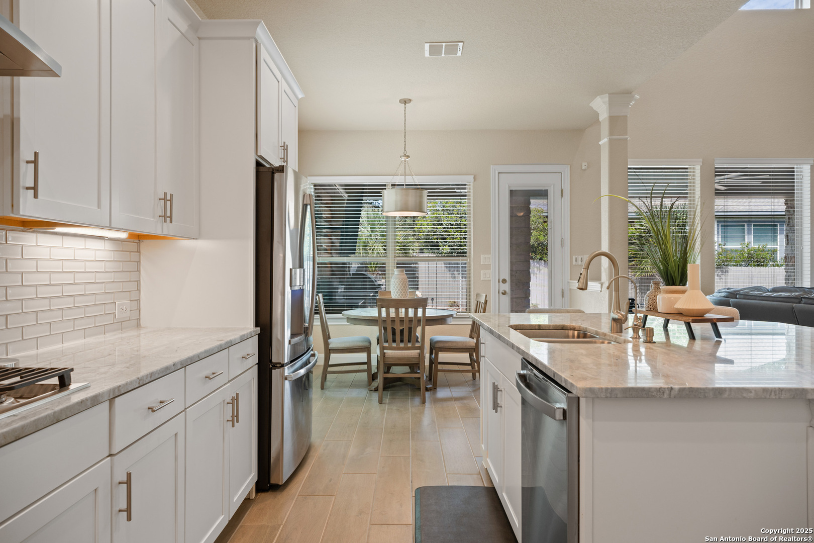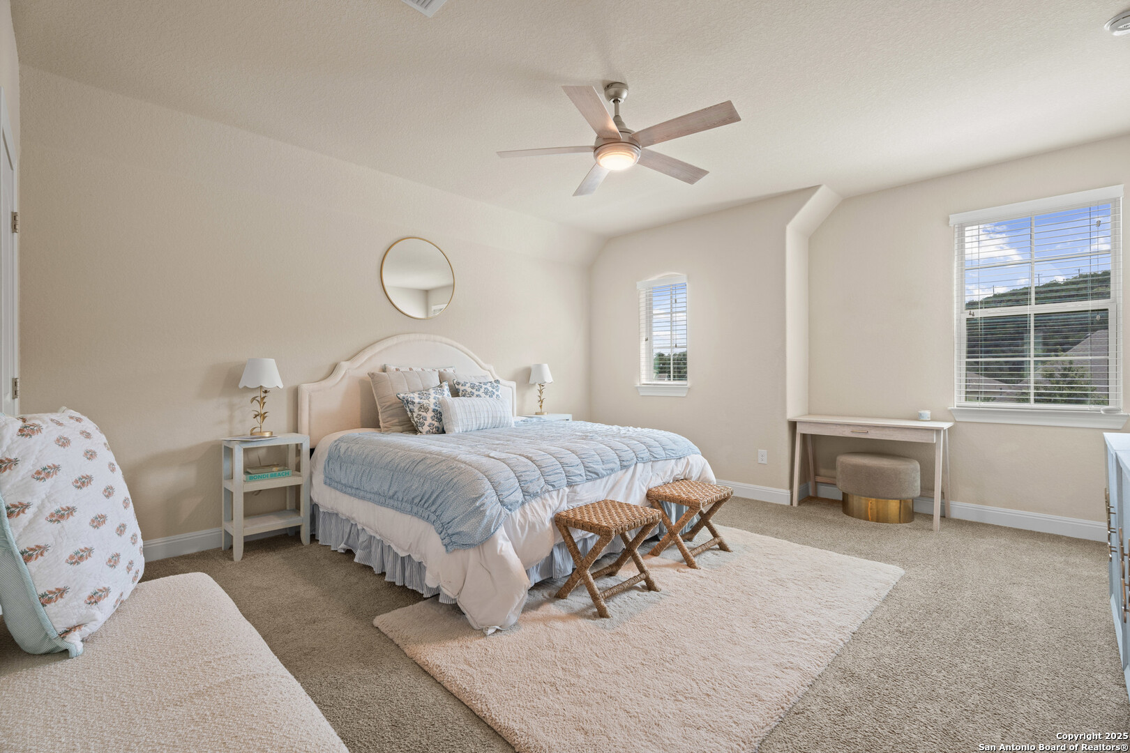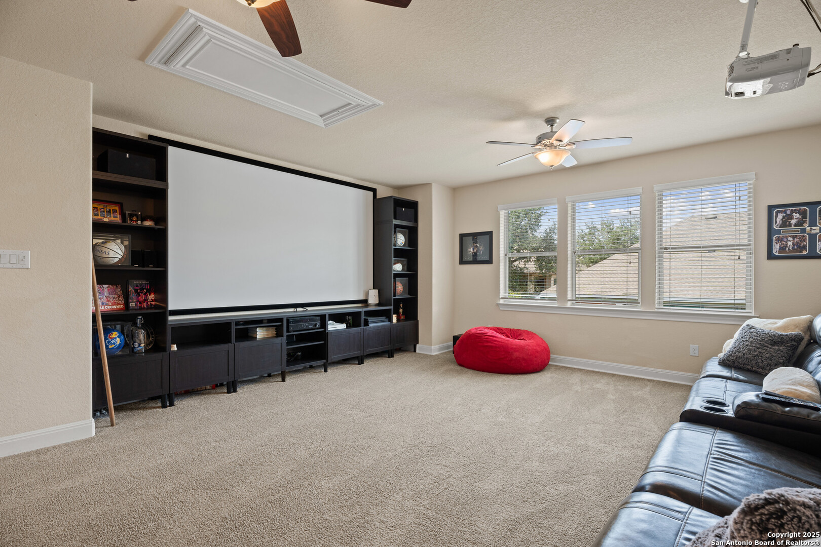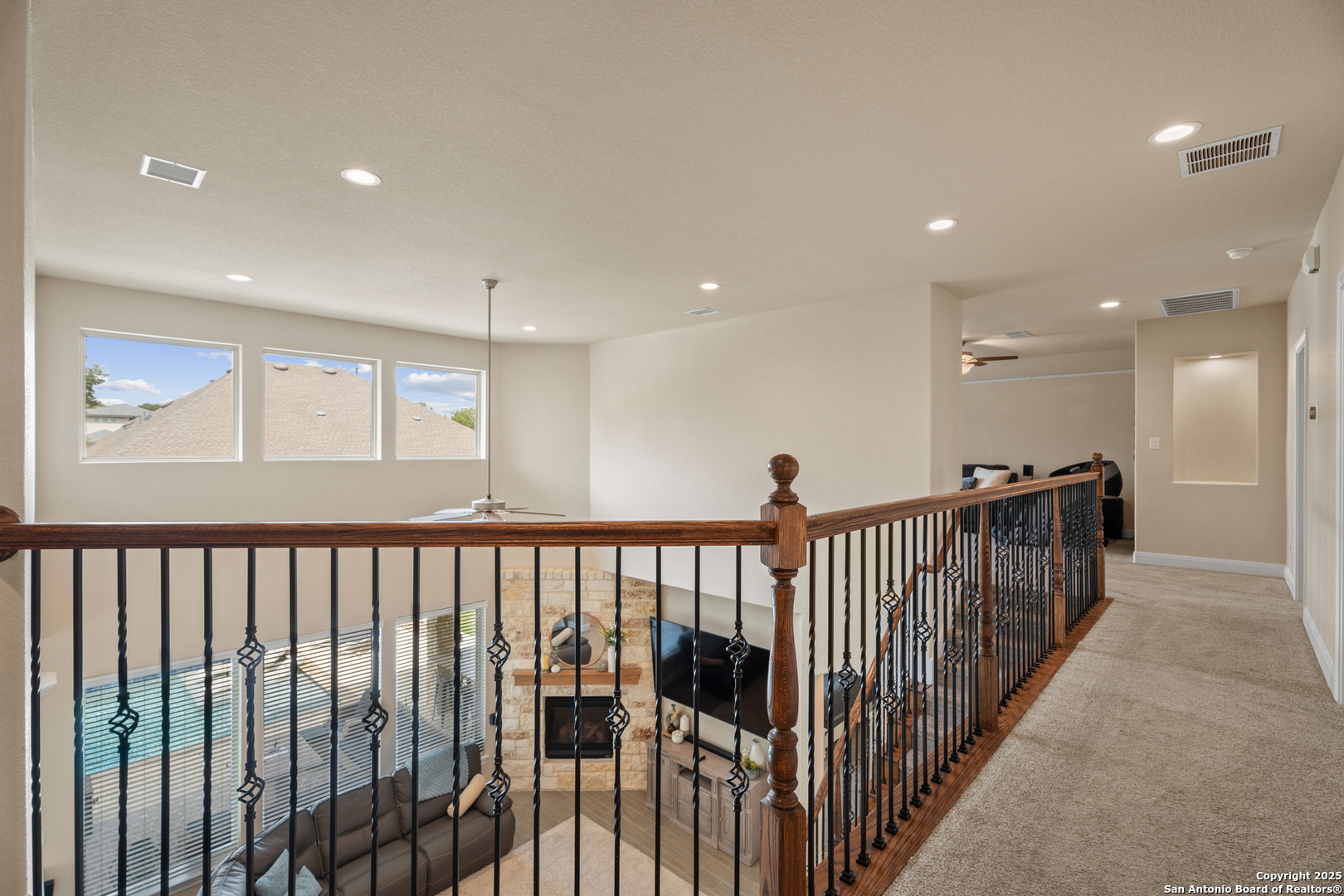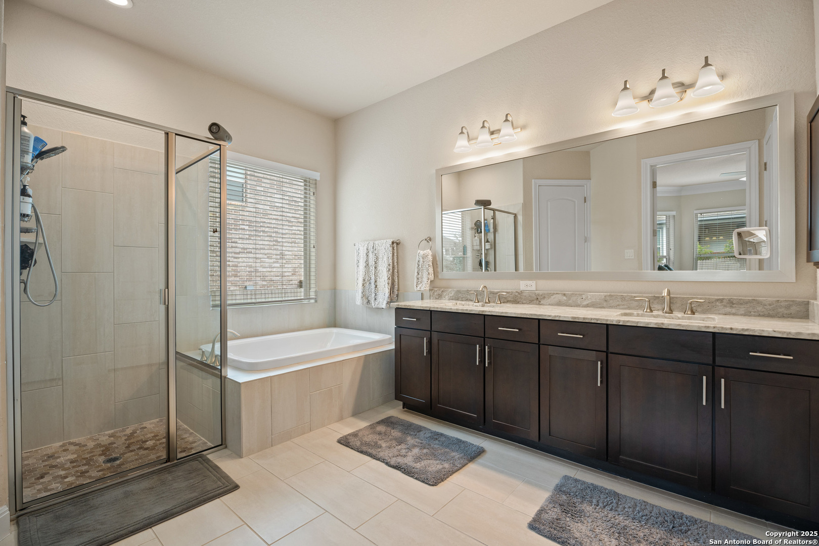 *** OPEN HOUSE - SATURDAY, 11/22/2025, 12:00 PM - 2:00 PM *** Ask about the "Buy before You Sell" Program or the "Doctors & Physicians Program" being offered by one of our preferred lenders! *** Welcome to a refined retreat in the prestigious Shavano Highlands community - ideally located just minutes from San Antonio's Medical Center, UT Health campuses, and major hospitals. (Also 1.2 Miles - four minutes - from Cornerstone High School and Warrior Stadium). This beautifully designed home offers the perfect blend of sophistication and practicality. The open-concept living area features high ceilings, wood-style ceramic tile flooring, and expansive windows that fill the space with natural light. The chef's kitchen showcases gas cooking, a large island with seating, and built-in stainless steel appliances - perfect for both entertaining and quiet evenings at home. The primary suite serves as a serene sanctuary after long hours at work, complete with a spa-inspired bath featuring dual vanities, a soaking tub, and a walk-in shower. A dedicated home office provides the ideal space for focused productivity, telehealth work, or study. Upstairs, a spacious loft with a projector and XL movie screen offers the ultimate second lounge for relaxing or entertaining guests. Outside, the saltwater pool invites both sunbathing and pool volleyball, while the outdoor kitchen and covered patio create the perfect setting for weekend gatherings or peaceful evenings under the stars. Additional features include abundant storage throughout, including a partially floored attic (with shelves) and a thoughtfully designed professional add-on to the home (with shelves, electric, and lighting). With quick access to Loop 1604, I-10, the Medicine Wall (rock climbing), Salado Creek trailhead, and just minutes from La Cantera's Coyote Dog Park, premier dining, and upscale shopping, this location offers unmatched convenience and lifestyle appeal for busy professionals seeking balance between work and well-being.
