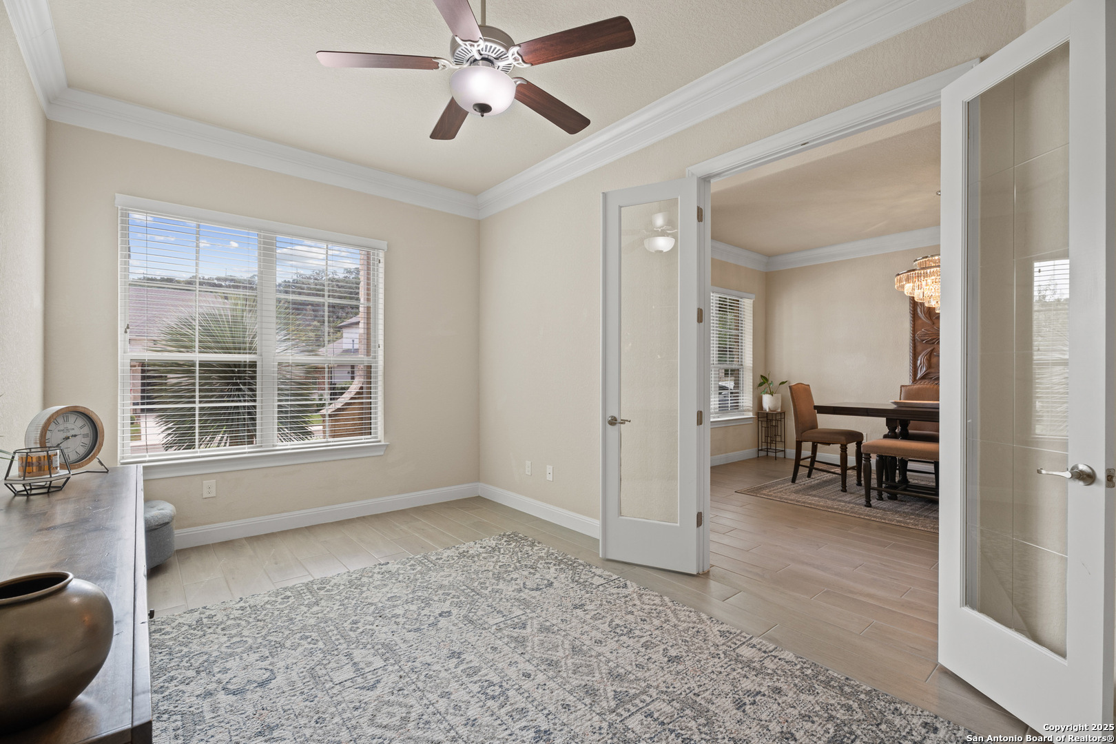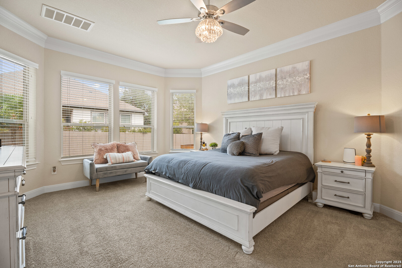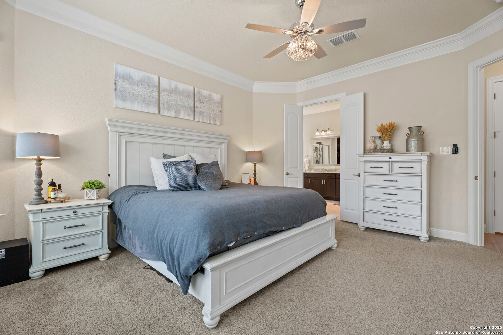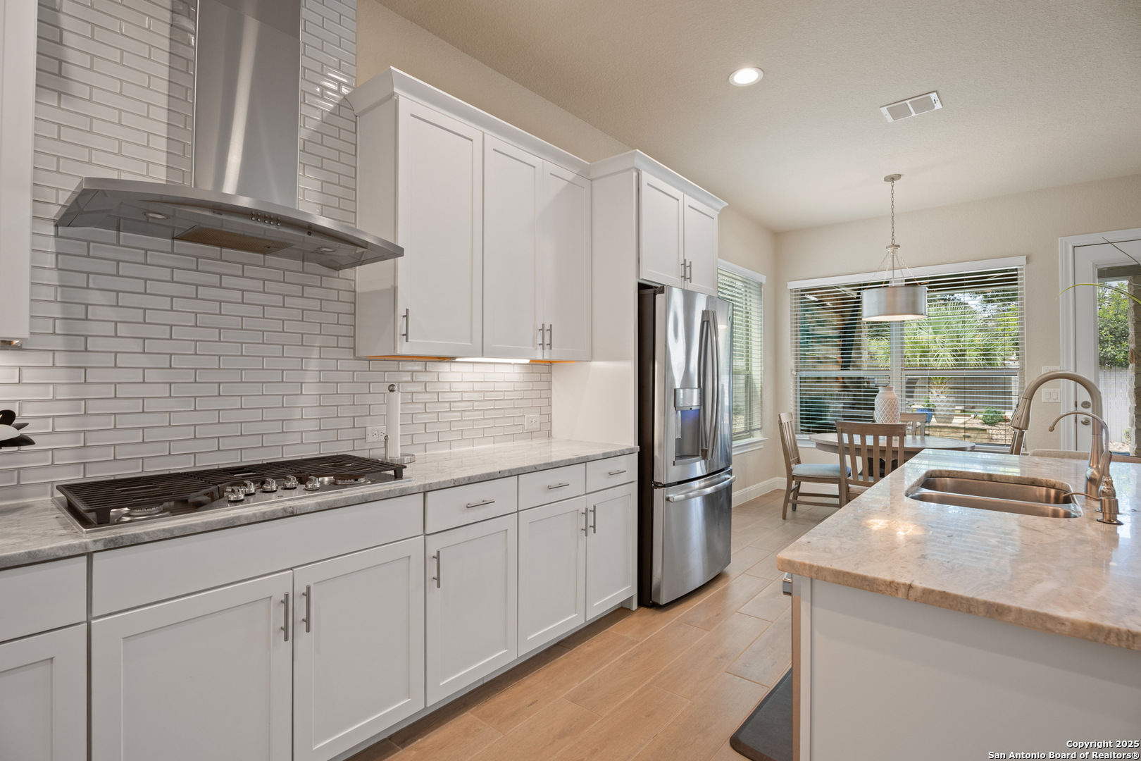 *** OPEN HOUSE - SATURDAY, 11/22/2025, 12:00 PM - 2:00 PM *** Ask about the "Buy before You Sell" Program or the "Doctors & Physicians Program" being offered by one of our preferred lenders! *** Welcome to a refined retreat in the prestigious Shavano Highlands community - ideally located just minutes from San Antonio's Medical Center, UT Health campuses, and major hospitals. (Also 1.2 Miles - four minutes - from Cornerstone High School and Warrior Stadium). This beautifully designed home offers the perfect blend of sophistication and practicality. The open-concept living area features high ceilings, wood-style ceramic tile flooring, and expansive windows that fill the space with natural light. The chef's kitchen showcases gas cooking, a large island with seating, and built-in stainless steel appliances - perfect for both entertaining and quiet evenings at home. The primary suite serves as a serene sanctuary after long hours at work, complete with a spa-inspired bath featuring dual vanities, a soaking tub, and a walk-in shower. A dedicated home office provides the ideal space for focused productivity, telehealth work, or study. Upstairs, a spacious loft with a projector and XL movie screen offers the ultimate second lounge for relaxing or entertaining guests. Outside, the saltwater pool invites both sunbathing and pool volleyball, while the outdoor kitchen and covered patio create the perfect setting for weekend gatherings or peaceful evenings under the stars. Additional features include abundant storage throughout, including a partially floored attic (with shelves) and a thoughtfully designed professional add-on to the home (with shelves, electric, and lighting). With quick access to Loop 1604, I-10, the Medicine Wall (rock climbing), Salado Creek trailhead, and just minutes from La Cantera's Coyote Dog Park, premier dining, and upscale shopping, this location offers unmatched convenience and lifestyle appeal for busy professionals seeking balance between work and well-being.