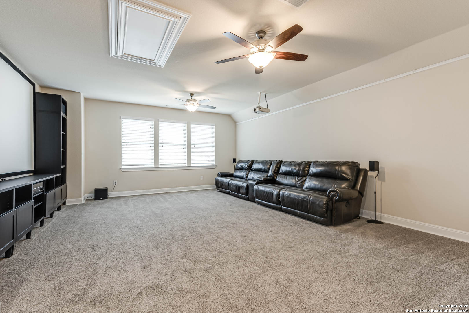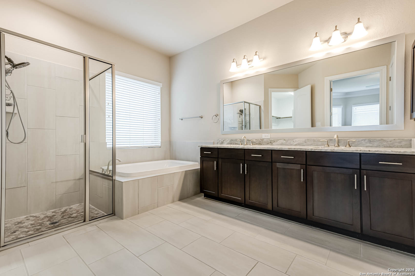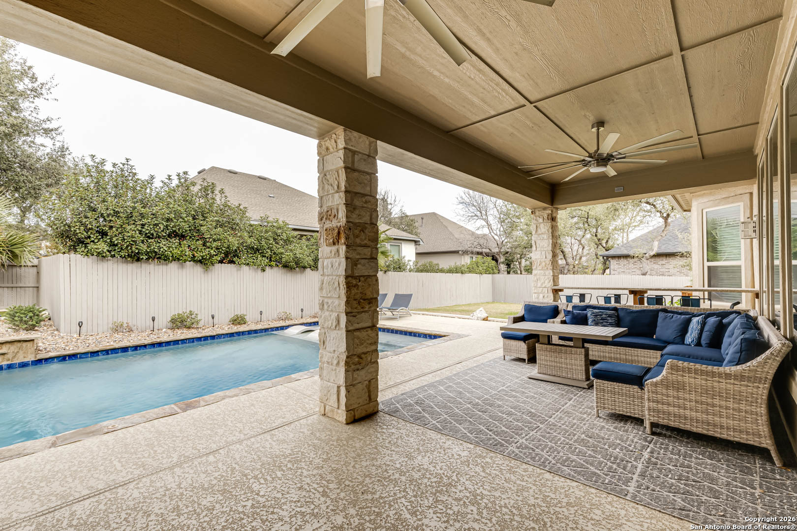 OPEN HOUSE SATURDAY, JANUARY 31st, 12:00 - 3:00 pm. Wow! Desirable Shavano Highlands! Great central location. Close to Medical Center, UTSA, La Cantera, and The Rim. Impressive kitchen has massive island, granite countertops, tile backsplash, five burner gas cooktop, and stainless steel appliances. Living room has soaring ceilings, corner fireplace and wall of windows. Downstairs primary bedroom has bay windows, walk-in closet, and spacious bathroom with separate shower and tub. Office with French doors is also downstairs. Game room has projector, sound system, and shelving that stays. Large covered patio with Summer Kitchen including gas BBQ grill and outdoor refrigerator. Saltwater pool built in 2021, cost over $90,000! Sport pool with volleyball net. Custom landscaped beds. Storage shed with electricity. Garage has epoxy floors and over 100 square feet of garage shelving. Finished attic space. Water softener. Neighborhood gated access to Salado Creek Greenway trail, a paved walking/biking path that connects with Leon Creek Greenway. Kitchen refrigerator, smart projector, receiver and speakers all stay. Utility Room refrigerator, dining room table and chairs, barstools, and sofa in game room are negotiable. 3,741 sq ft per appraiser. 3,646 sq ft per BCAD. Survey does not reflect pool, a new survey will be needed.