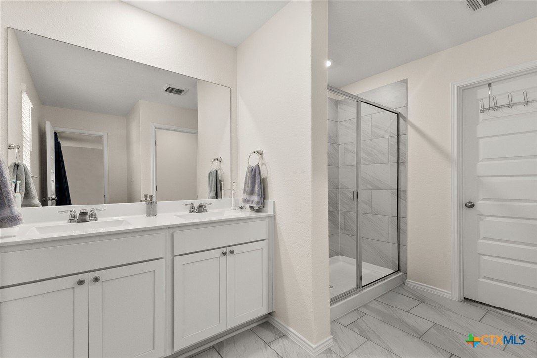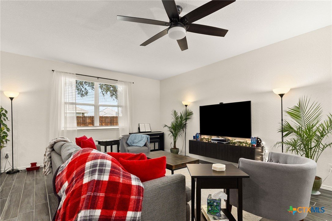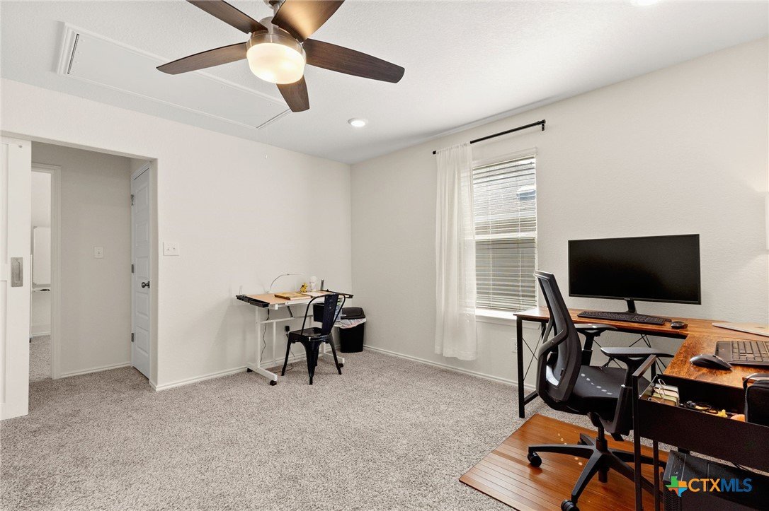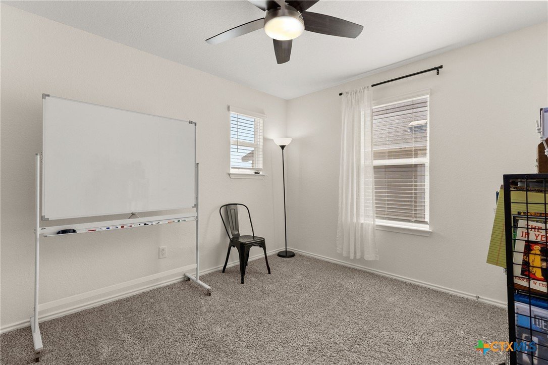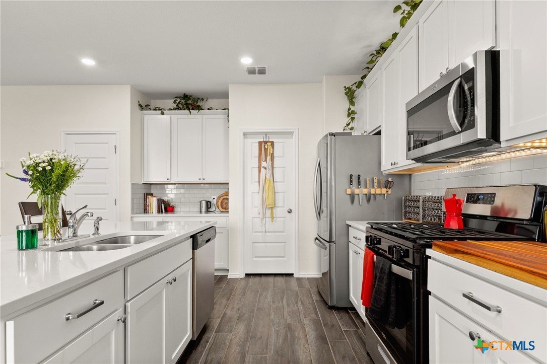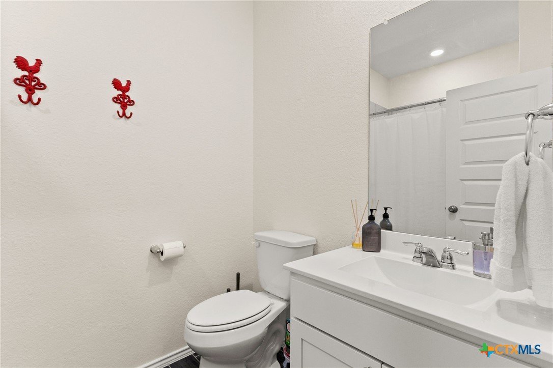 Move-in ready and thoughtfully designed, this home offers a flexible layout ideal for today’s lifestyle. The open-concept main living area flows seamlessly into the kitchen and breakfast nook, featuring a center island, large pantry, granite countertops, white cabinetry, subway tile backsplash, and upgraded stainless-steel appliances. A first-floor bedroom with a full bath nearby provides excellent space for guests or a home office. Upstairs, a spacious loft separates the secondary bedrooms from the private primary suite, which includes dual sinks, a walk-in shower, and a generous walk-in closet. Enjoy outdoor living with a covered patio and a large backyard shaded by a mature oak tree—perfect for relaxing or entertaining. Additional features include a 6’ sliding glass door and water softner.