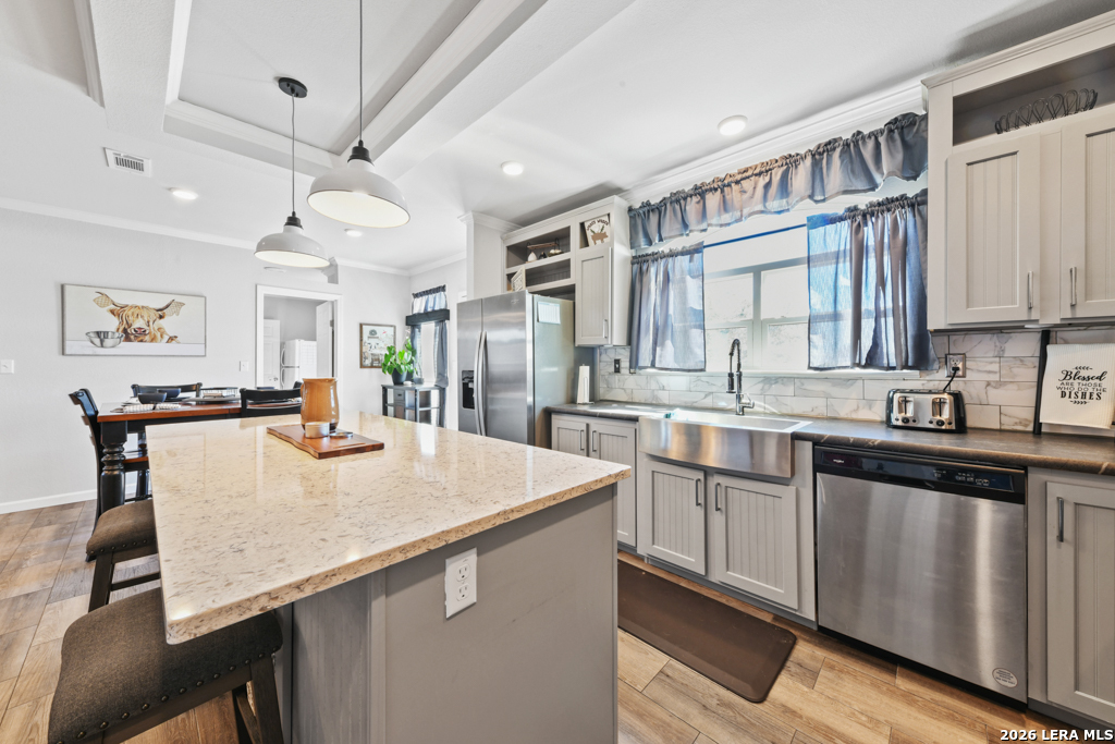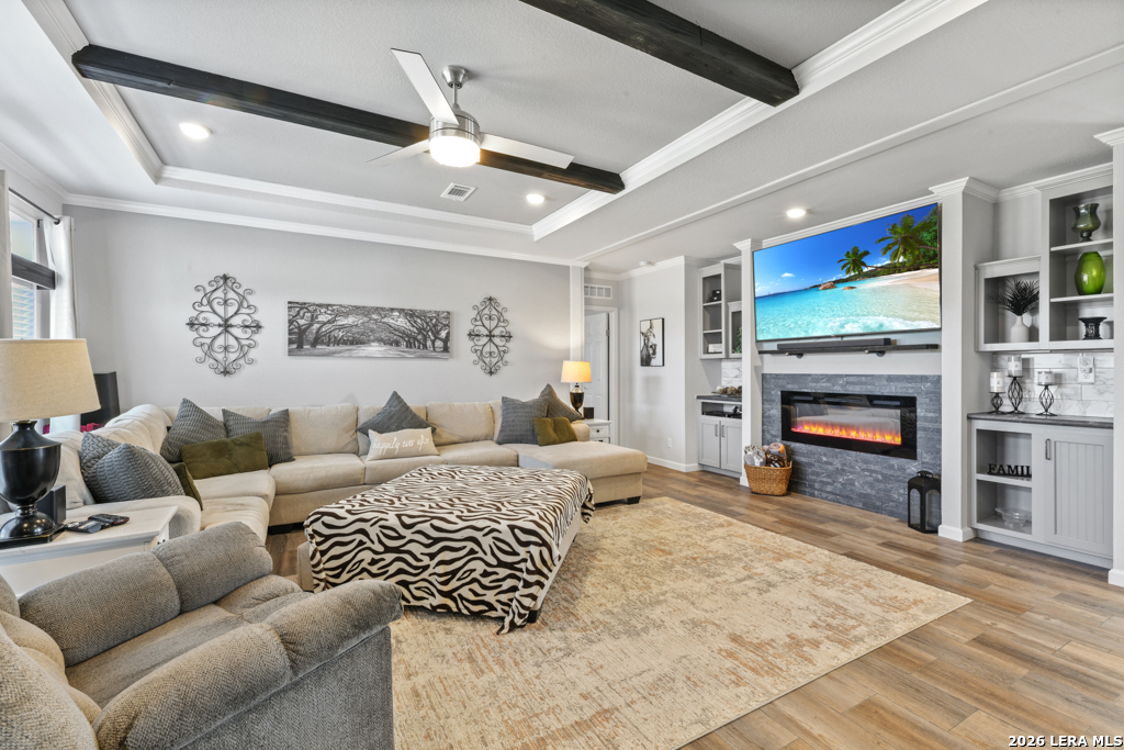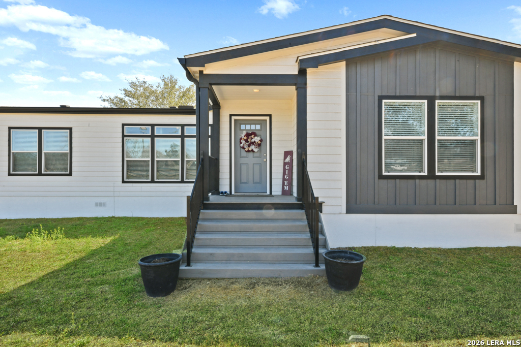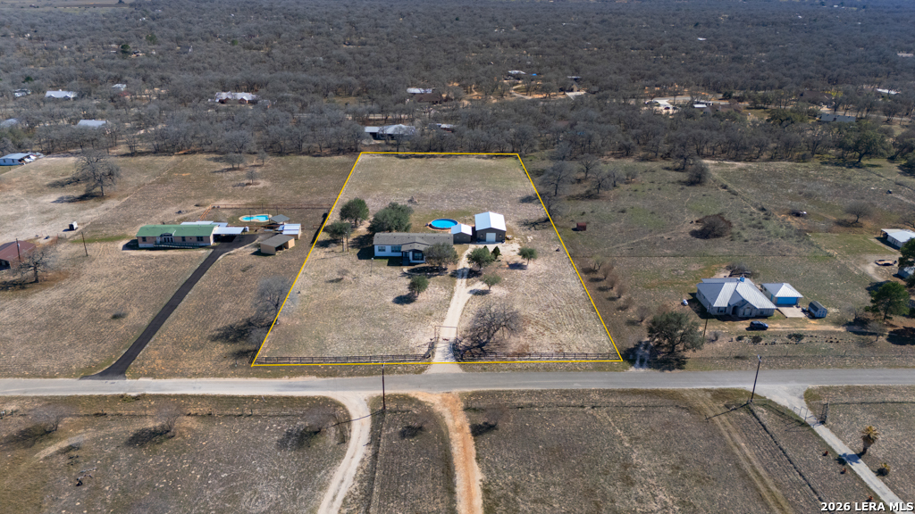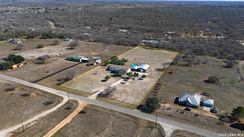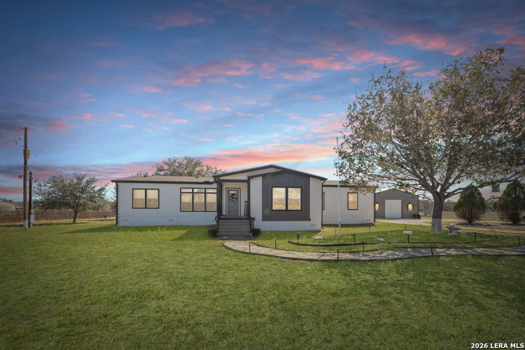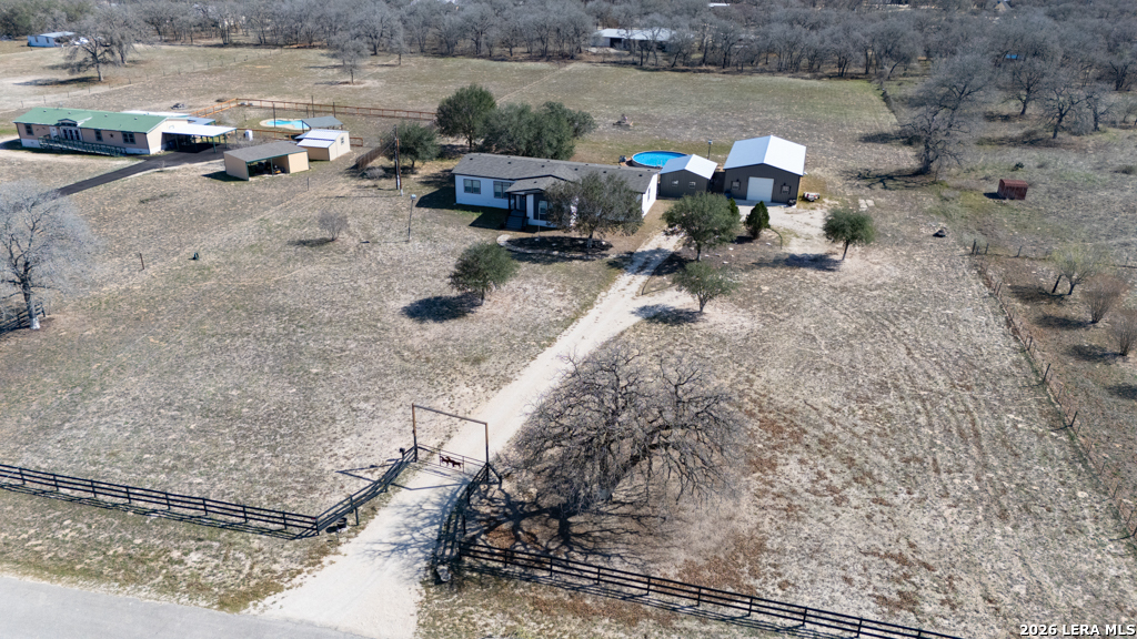 If you've been looking for move-in-ready living with room to work, play, and grow - this La Vernia property delivers!! Experience modern country living on a fully fenced property featuring a late 2023 Vintage Farmhouse II Flex Palm Harbor home designed with comfort and functionality in mind. This thoughtfully designed home offers an open-concept layout with stylish farmhouse finishes, creating a warm and inviting space perfect for everyday living and entertaining. Some of the features included: split 4 bedrooms, coffee bar, kitchen island with quartz countertop, media room, formal dining, and an office! Outside, the property truly shines. A 2023 built 50x30 insulated shop with electricity provides exceptional flexibility for business, hobbies, storage, or workshop needs. The shop includes a 10x10 roll-up door, two standard entry doors, and six windows for natural light. Entertain with ease under the 20x24 covered patio-(half shop), ready to finish out your custom outdoor kitchen vision, with electric and plumbing. Cool off in the 30-foot above-ground pool and enjoy wide open Texas country skies right from your backyard! Additional highlights include an electric entry gate for privacy and security for peace of mind. Schedule your private showing today!