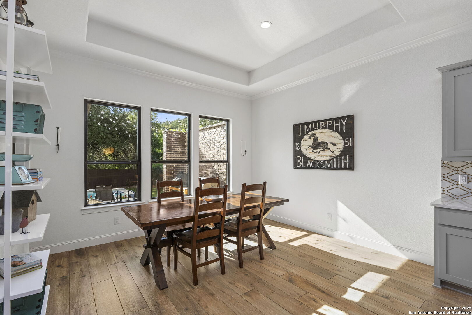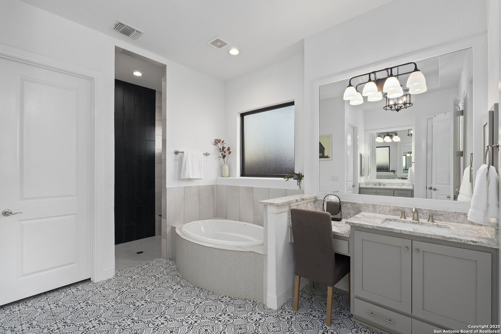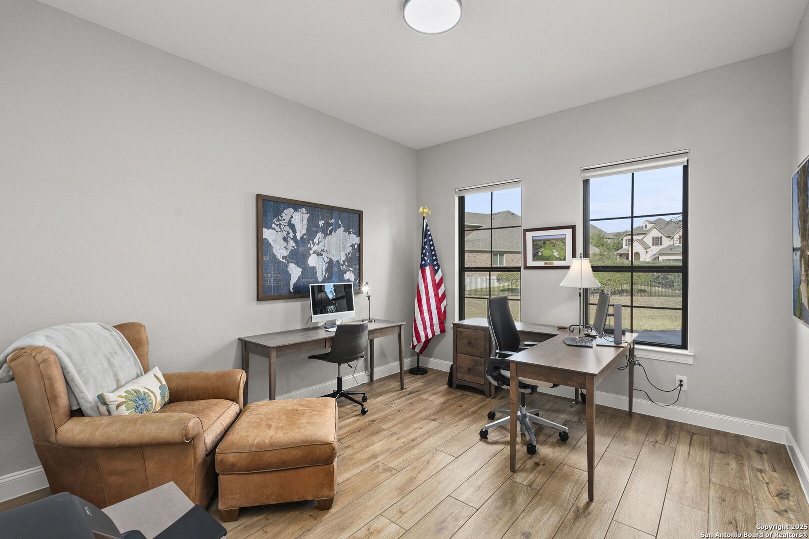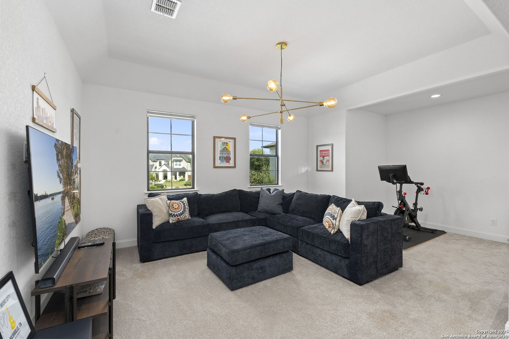 Luxury and location await in this stunning model style home in the prestigious Shavano Highlands community. Greenbelt privacy create your private backyard paradise-complete with a covered patio, outdoor kitchen, a resort-style pool with sundeck and no backyard neighbors. Meticulous landscaping, mature oak trees along with designer lighting and finishes throughout, make this property a real showstopper. Step through the foyer onto beautiful wood-inspired tile flooring, past the elegant staircase and custom wet bar, and into the main living area featuring soaring ceilings and an impressive stone fireplace. The gourmet kitchen is a chef's dream with stainless steel appliances, gas cooking, and an oversized island perfect for gatherings. The expansive primary suite is privately situated with a spa-like ensuite, dual stone vanities, his-and-hers closets, and direct access to the utility room. A secondary guest bedroom downstairs provides guests main level living or doubles as a private study. Upstairs, enjoy a spacious game/media room, a private study/office nook, plus three additional bedrooms. This immaculate home offers luxury living with proximity to Salado Creek Trail System, shopping, restaurants, and award winning schools.