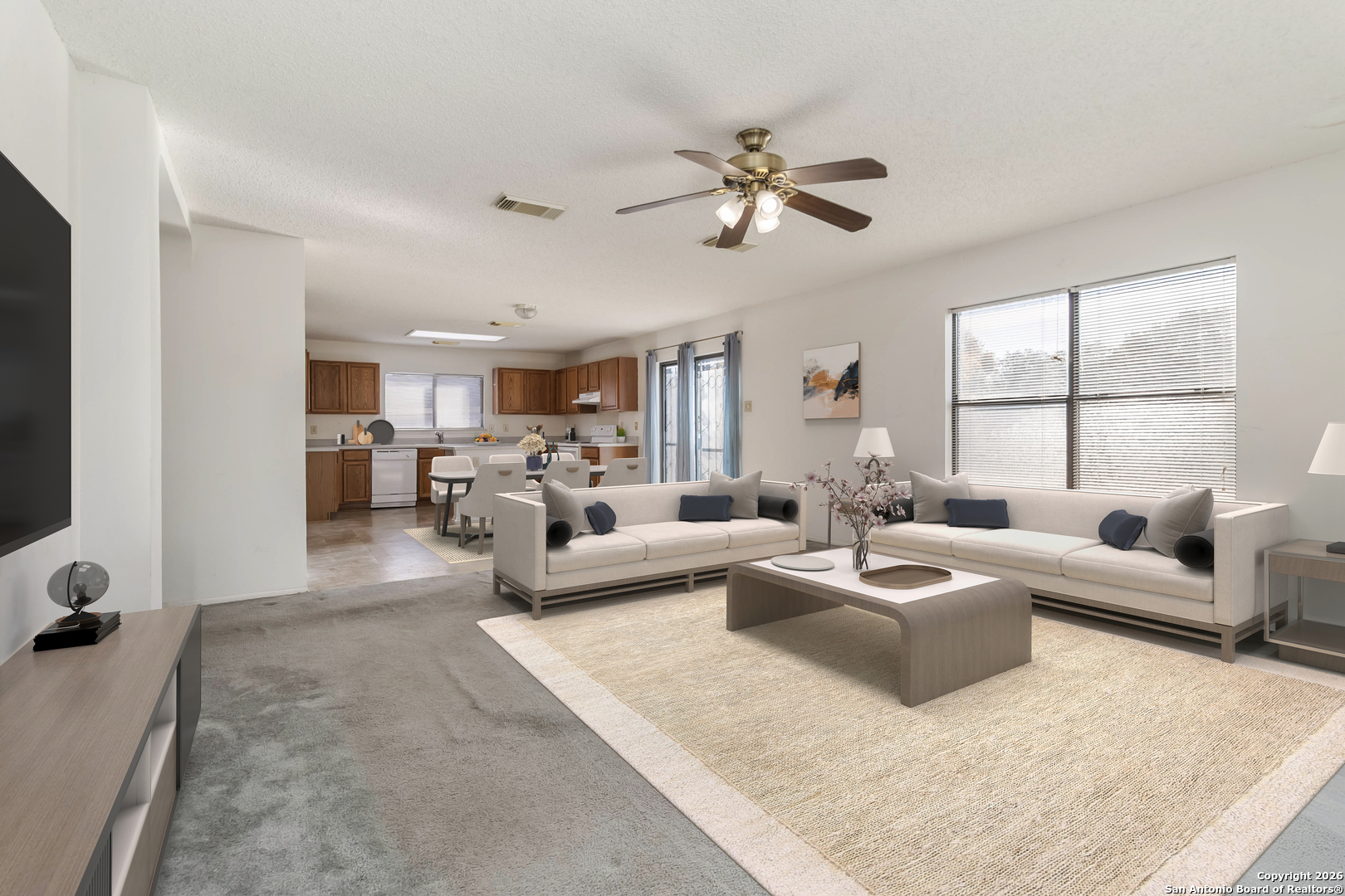 This charming and spacious home offers an inviting blend of comfort, functionality, and open living. With 2,977 square feet of thoughtfully designed space, this residence features 4 generously sized bedrooms and 2.5 bathrooms, providing plenty of room for both everyday living and entertaining. The bright and airy open-concept layout creates a welcoming atmosphere, with the family room flowing seamlessly into the kitchen. Open sight lines make it easy to stay connected with guests and loved ones, whether hosting gatherings or enjoying quiet evenings at home. The home boasts an abundance of living space, allowing for multiple areas to relax, work, or play. Natural light fills the main living areas, enhancing the home's warm and cheerful charm. The kitchen serves as the heart of the home, perfectly positioned for entertaining while overlooking the family room and adjacent spaces. Conveniently located near Loop 1604, this home offers easy access to Highway 281 and I-35 in either direction, making commuting simple and efficient. You'll appreciate the close proximity to shopping, dining, and medical facilities, all just minutes away. Combining a desirable location with generous living areas and timeless charm, this home is ideal for those seeking space, comfort, and convenience in one beautiful package.