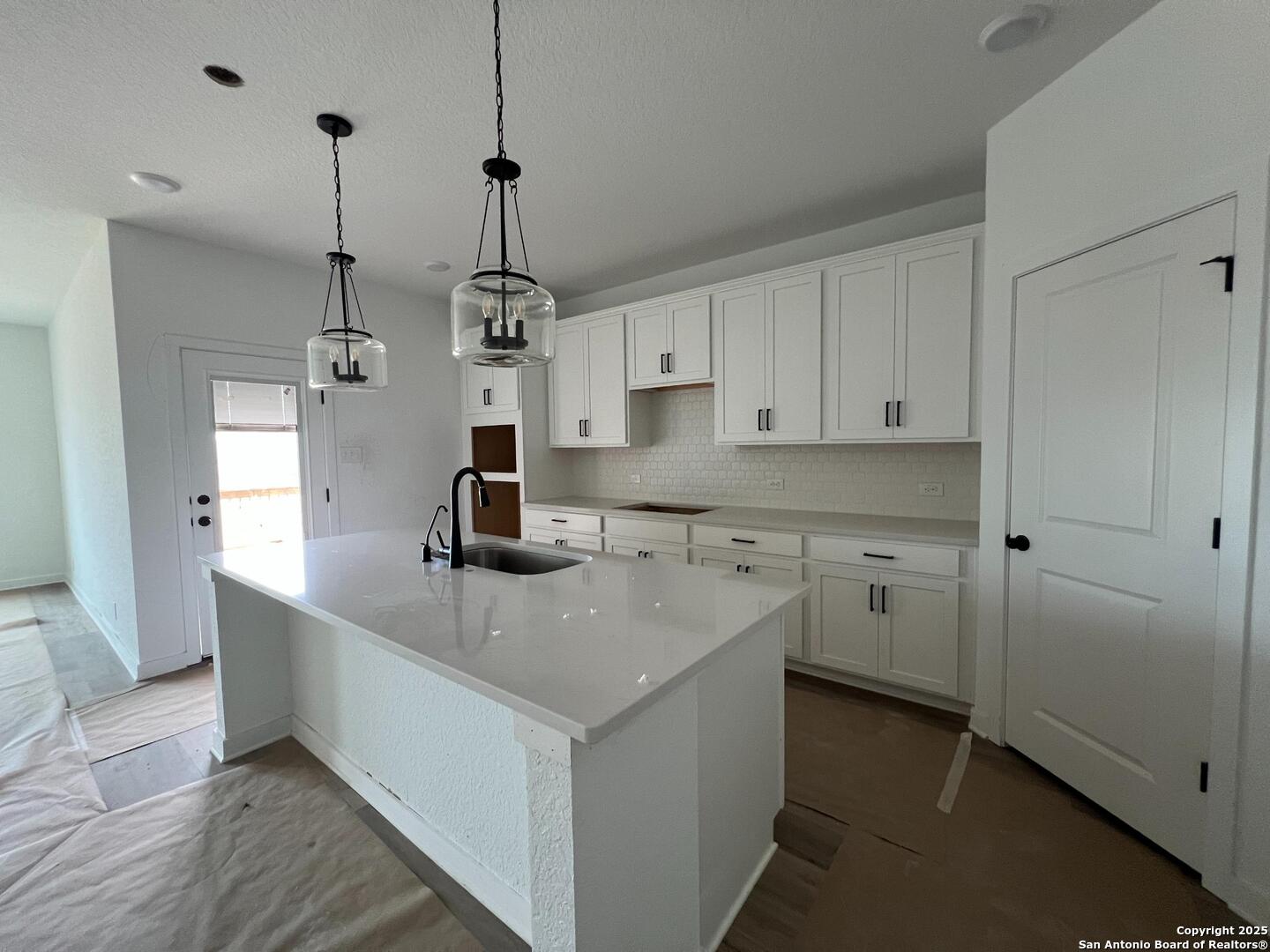 Spacious one story with a chef-inspired kitchen, featuring a generous center island, quartz countertops and a walk-in pantry. The kitchen opens into the dining area and expansive family room. The primary suite includes a spacious walk-in closet and a spa-like bath with an oversized walk-in shower. Three additional bedrooms-each with its own walk-in closet-provide flexible options for guests, children, or a dedicated home office or hobby space. Covered patio on back of the home.