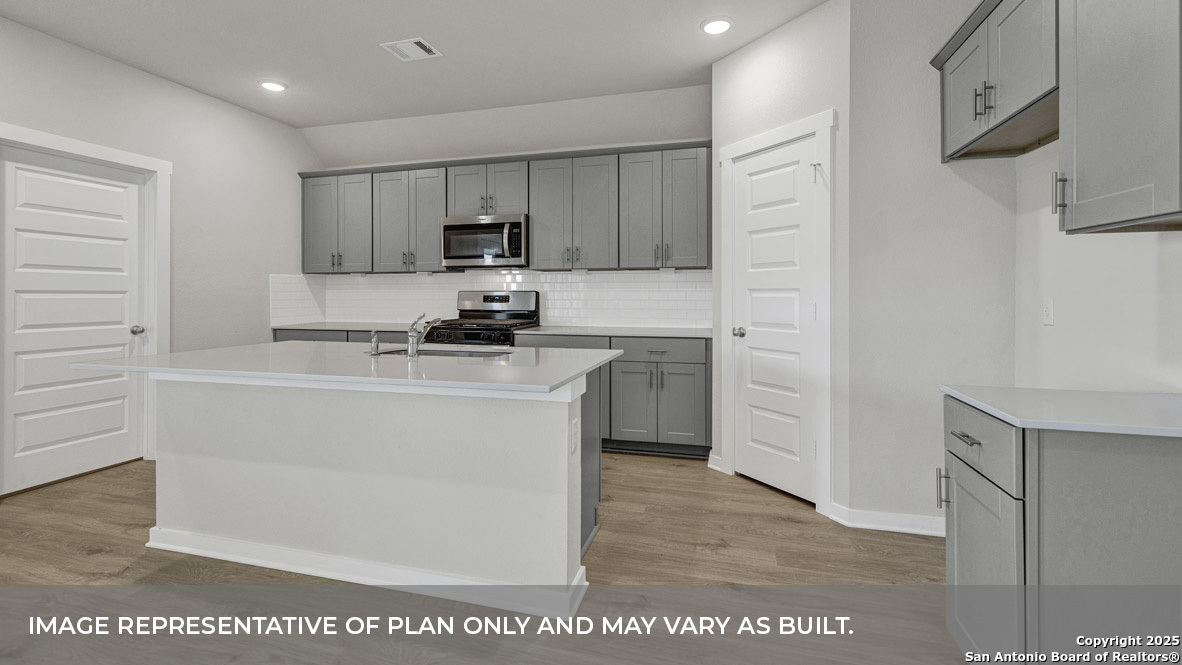 MOVE IN READY. The Coleman is one of our one-story floorplans featured in our Sonoma Oaks community in Fredericksburg, Texas. This home includes 3 bedrooms, 2 bathrooms across 1,668 square feet and a 3 car garage. Enter the home from the front porch, and cross through the foyer to the open living area. The family room, dining and kitchen space are designed as an open concept, allowing conservations to flow easily across the living area. The kitchen includes quartz countertops, decorative tile backsplash, a large island with undermount sink, a corner pantry closet, stainless-steel appliances and 36'' upper cabinets. The utility room is off the kitchen and built with an extra closet for linens and other kitchen items. Natural light beams in through three rear windows along the family room wall. The primary bedroom is off the family room and includes an attached bathroom. Enjoy the 5' walk in shower, quartz countertop vanity with double sinks, private toilet area with a door, and walk-in closet in this relaxing bathroom space. The secondary bedrooms are located at the front of the house, off the foyer. There is a hall bathroom that includes a shower/tub combination as well as extra shelving for storage or decor. The Coleman includes vinyl flooring throughout the common areas of the home and the primary bedroom, and carpet in the secondary bedrooms. All our new homes at Sonoma Oaks feature a covered back patio, full yard landscaping and irrigation system. This home includes our America's Smart Home base package, which includes a Video Doorbell, Front Door Deadbolt Lock, Home Hub, Thermostat, and Deako Smart Switches.