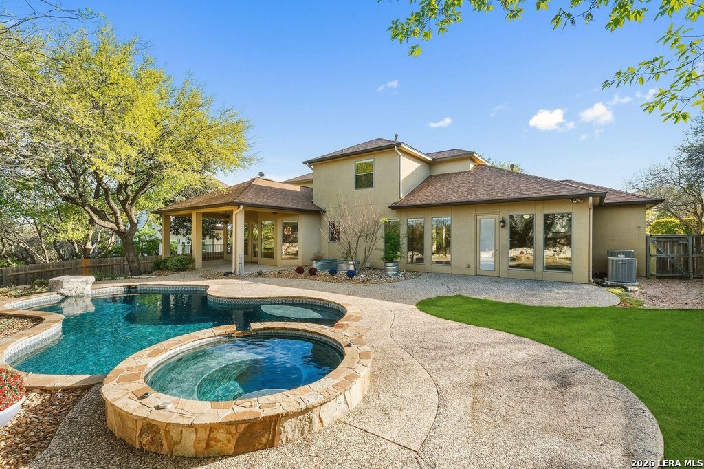 First time on the market! Built by Mike Holloway Custom Homes, this former model home-"The Black Hawk," completed in 2005-offers a rare opportunity to own a beautifully crafted residence in the gated Point Bluff section of Rogers Ranch. Proudly offered by the original owner, this home combines quality construction with a thoughtfully designed layout featuring 4 bedrooms, 4 bathrooms, and a spacious 3-car garage. Designed for both comfortable living and entertaining, the home offers generous living spaces filled with natural light, highlighted by enormous picture windows throughout. The open layout creates an easy flow between the kitchen, family room, and dining areas, making it ideal for gathering and everyday living. A secondary bedroom and full bath are conveniently located downstairs, while upstairs features an additional bedroom with a private en suite bath-perfect for guests or multigenerational living. Step outside to your private backyard retreat featuring a Keith Zars pool and spa, ideal for relaxing or hosting gatherings while enjoying the Texas lifestyle year-round. Extensive recent improvements provide exceptional peace of mind, including both AC units replaced in April 2025 (with a 10-year warranty), a new Aquastar pump and EOS iAquaLink control system installed September 2025, pool light replaced September 2025, kitchen upgrades including a gas cooktop and double ovens replaced in September 2023, roof and gutters replaced in 2020 by Integrity Roofing, and a freshly painted interior with brand new carpeting completed in 2026. Located within the highly desirable Rogers Ranch community, residents enjoy controlled access and premier amenities including a pool, tennis courts, park, and scenic walking trails-all conveniently located near major highways, shopping, and dining.