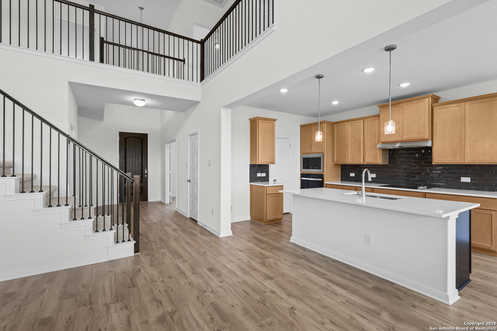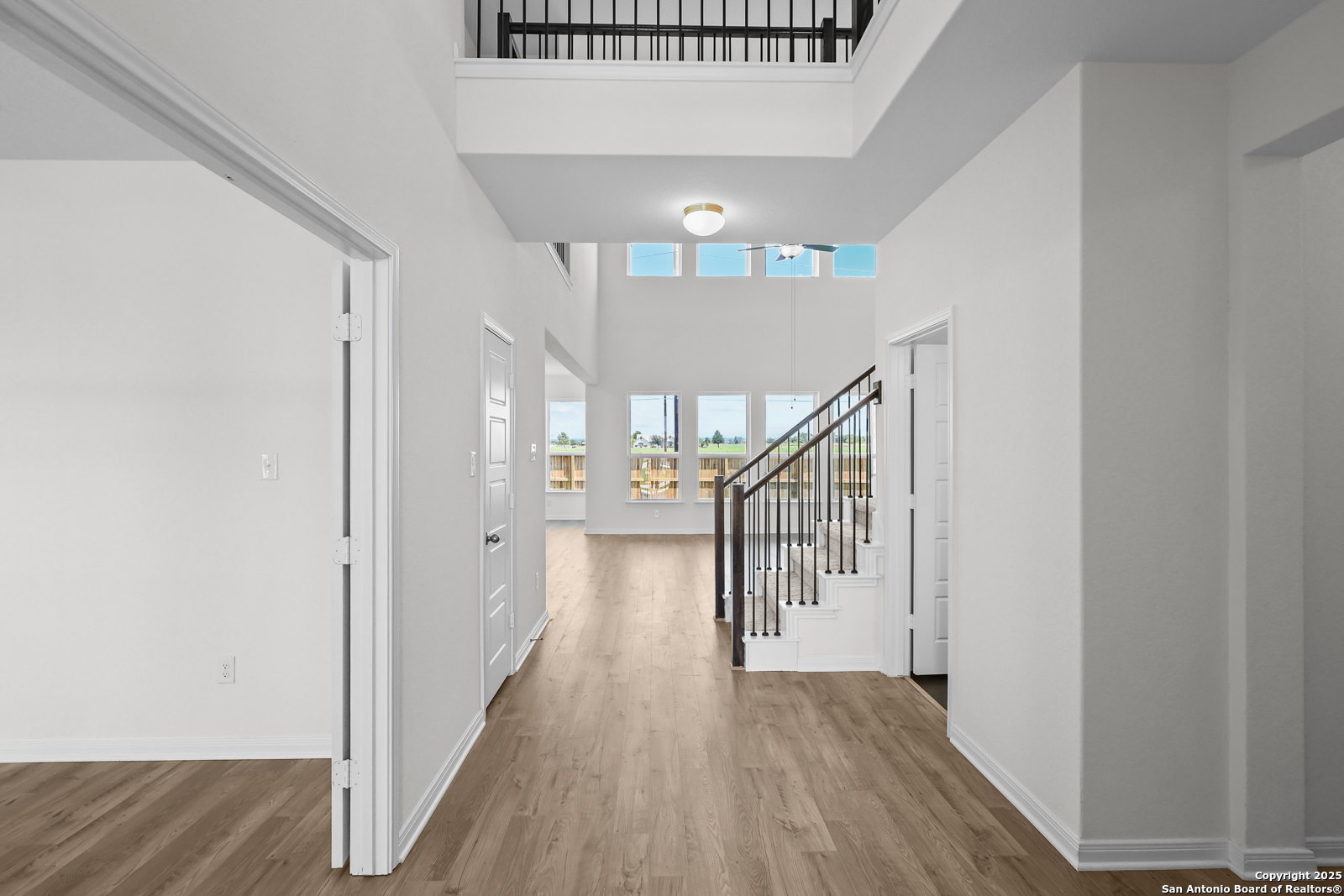Welcome to the stunning Jefferson plan, offering over 2,900 square feet of thoughtfully designed living space. The spacious primary bedroom, located on the first floor, features a luxurious en-suite bath with a soaking tub, separate shower, and two walk-in closets for maximum convenience. The soaring ceilings in the family room are enhanced by a wealth of windows, filling the space with natural light and creating a bright, open atmosphere. A modern wrought iron stair railing adds an elegant touch, elevating the home's overall aesthetic. The chef-inspired kitchen is equipped with everything you need-ample cabinet and counter space, a large island for seating, and a generous pantry, making it both functional and beautiful. The oversized garage offers plenty of room for a workshop, extra storage, or even a home gym. Upstairs, you'll find spacious secondary bedrooms and a fantastic game room, perfect for family fun or relaxation. This incredible home in Megan's Landing is a must-see-don't miss the opportunity to explore it today!