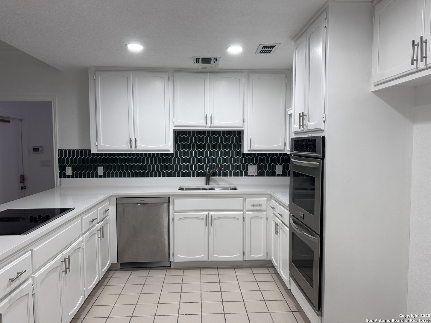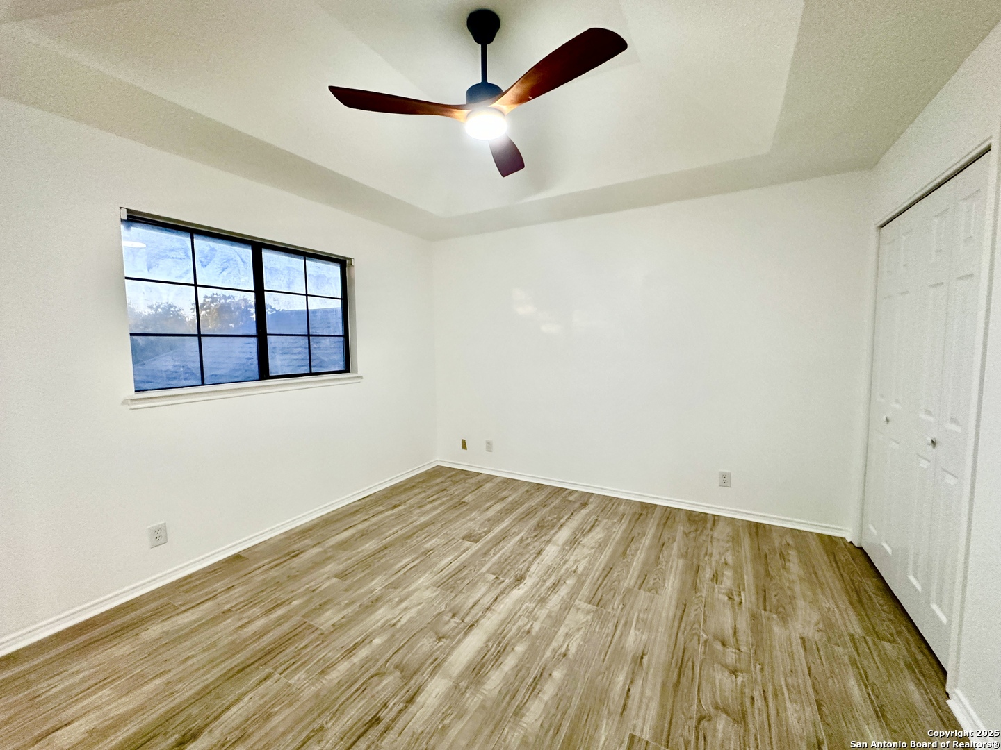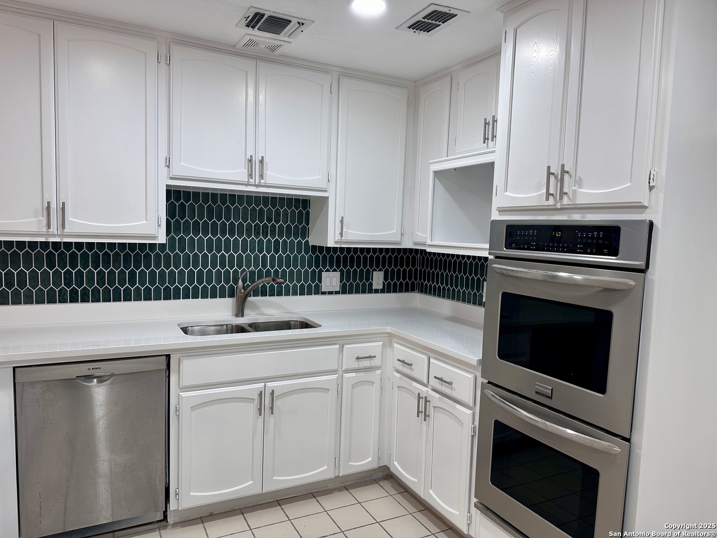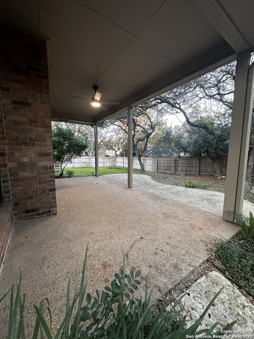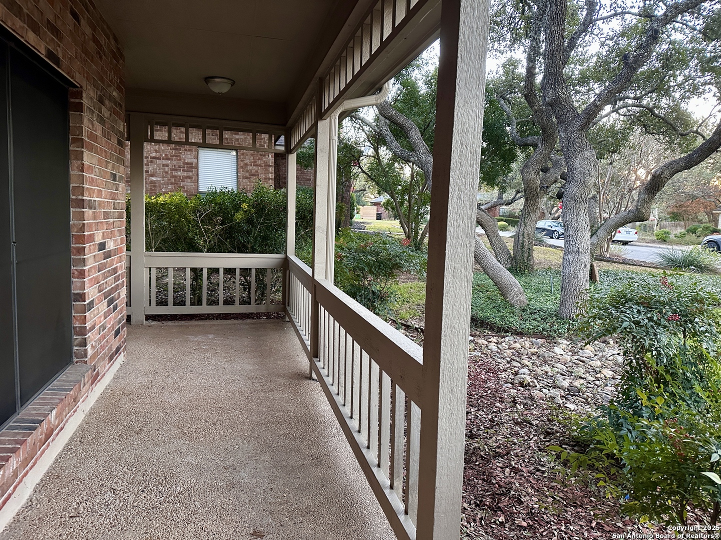 Situated in the sought-after Stone Oak area-conveniently located without being too deep into the area in the hospital grid within a quiet, low-traffic neighborhood. Easy access to churches, Reagan High School, and major freeways. The kitchen boasts NEW quartz countertops, and a modern backsplash adding a touch of elegance. Exterior and interior is highlighted with fresh paint. NEW Lighting throughout in bathrooms, bedrooms and kitchen. NEW flooring downstairs and upstairs. Bedrooms boast spacious closets, providing ample storage for your wardrobe. Unwind in the primary bathroom with NEW Quartz countertop, tub and shower combo, perfect for a relaxing soak or a quick rinse designed for easy access. The bedroom downstairs provides flexibility, while the additional bedrooms upstairs include a suite with a full bathroom and the other two bedrooms share a Jack and Jill bathroom. The heart of the home is the living room, where soaring 18-foot ceilings and an abundance of natural light create a warm and inviting atmosphere, perfect for entertaining. Step outside and enjoy the covered patio and a large backyard with mature trees offering a tranquil space to entertain. Additional features include shades in all the windows, a water softener, and an in-ground sprinkler system.This exceptional home combines comfort, style, and convenience in one of Stone Oak's most sought-after locations.