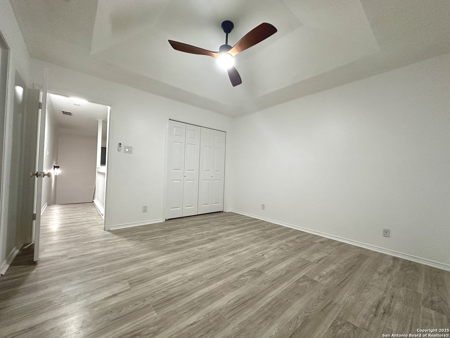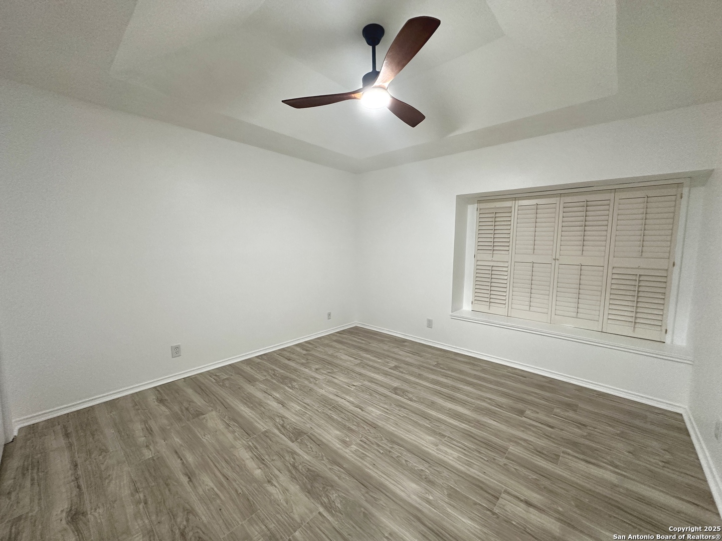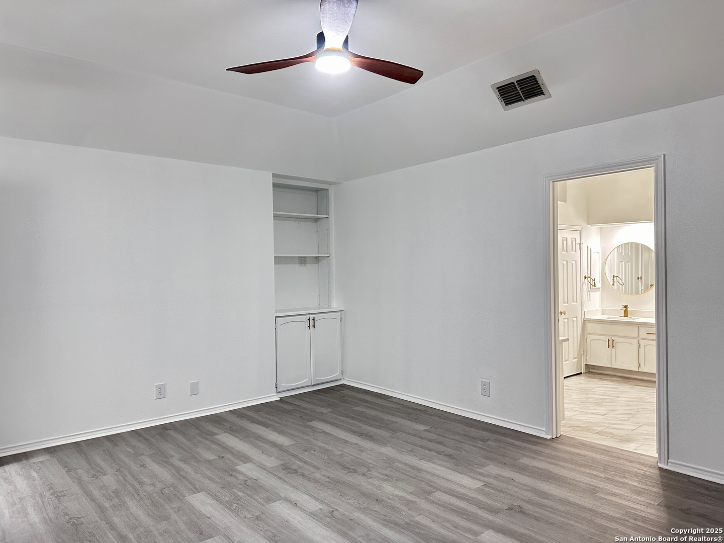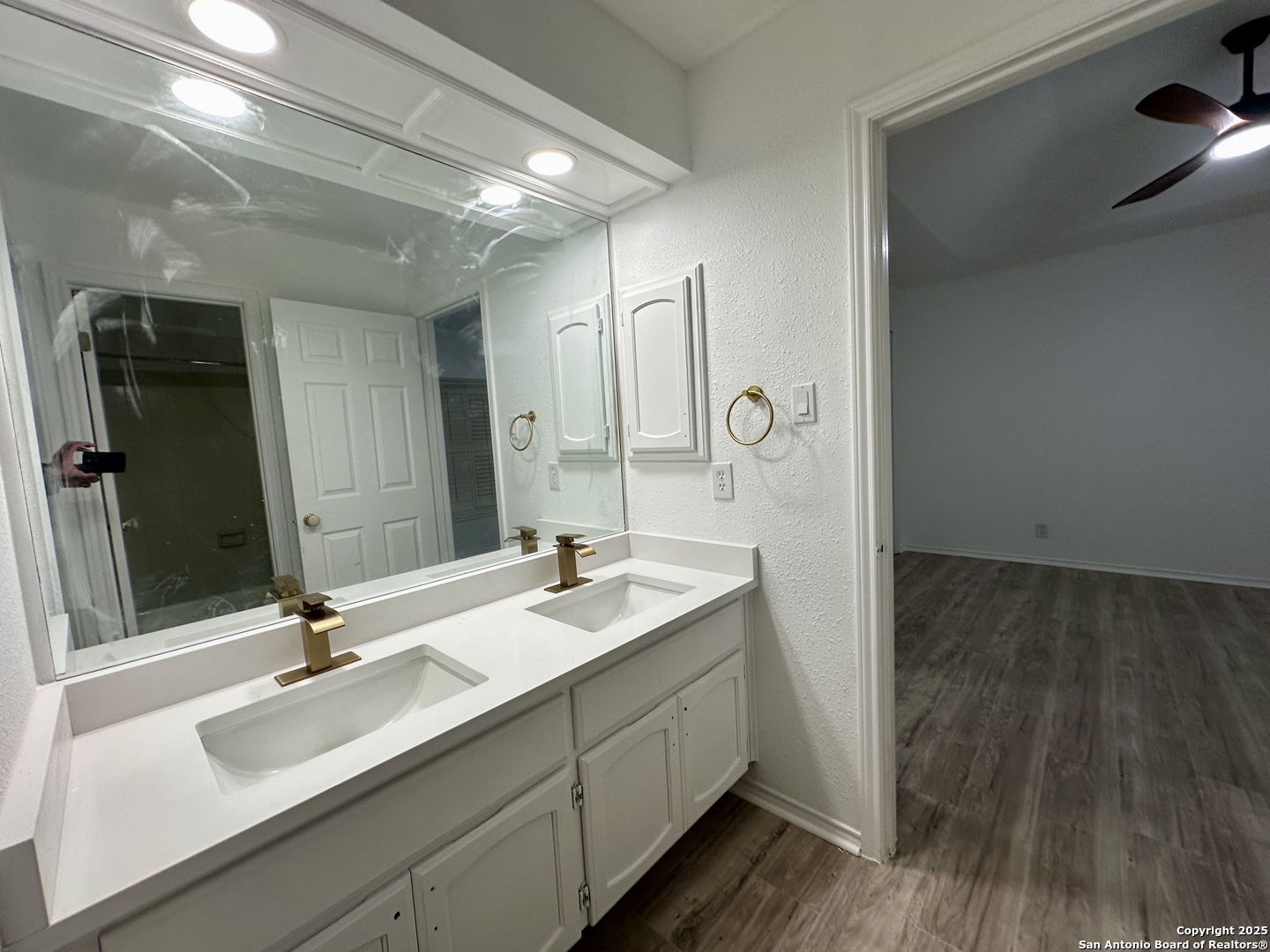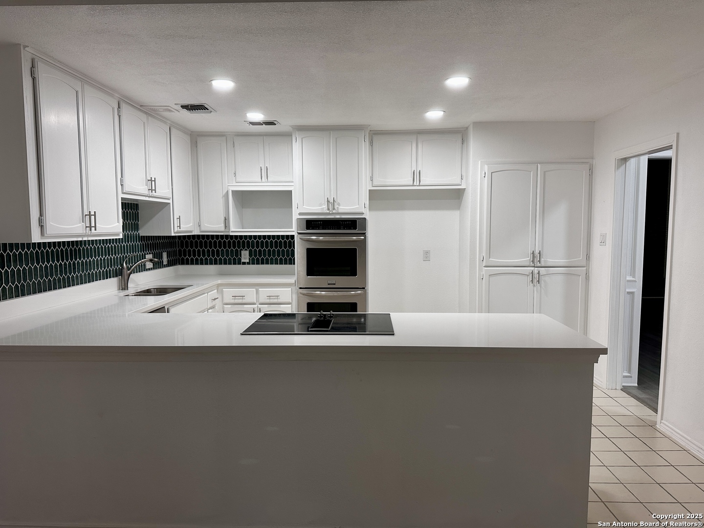 Situated in the sought-after Stone Oak area-conveniently located without being too deep into the area in the hospital grid within a quiet, low-traffic neighborhood. Easy access to churches, Reagan High School, and major freeways. The kitchen boasts NEW quartz countertops, and a modern backsplash adding a touch of elegance. Exterior and interior is highlighted with fresh paint. NEW Lighting throughout in bathrooms, bedrooms and kitchen. NEW flooring downstairs and upstairs. Bedrooms boast spacious closets, providing ample storage for your wardrobe. Unwind in the primary bathroom with NEW Quartz countertop, tub and shower combo, perfect for a relaxing soak or a quick rinse designed for easy access. The bedroom downstairs provides flexibility, while the additional bedrooms upstairs include a suite with a full bathroom and the other two bedrooms share a Jack and Jill bathroom. The heart of the home is the living room, where soaring 18-foot ceilings and an abundance of natural light create a warm and inviting atmosphere, perfect for entertaining. Step outside and enjoy the covered patio and a large backyard with mature trees offering a tranquil space to entertain. Additional features include shades in all the windows, a water softener, and an in-ground sprinkler system.This exceptional home combines comfort, style, and convenience in one of Stone Oak's most sought-after locations.