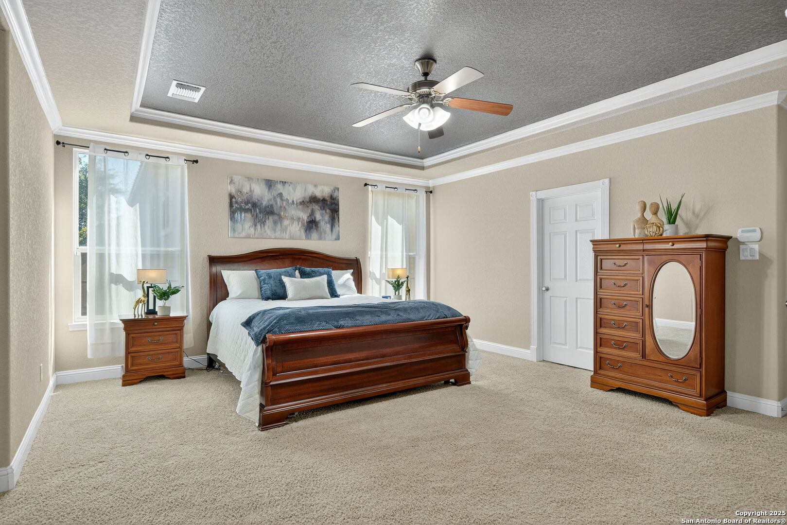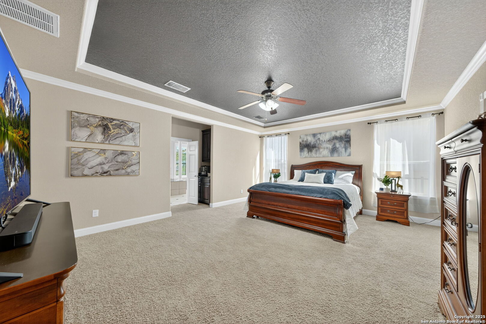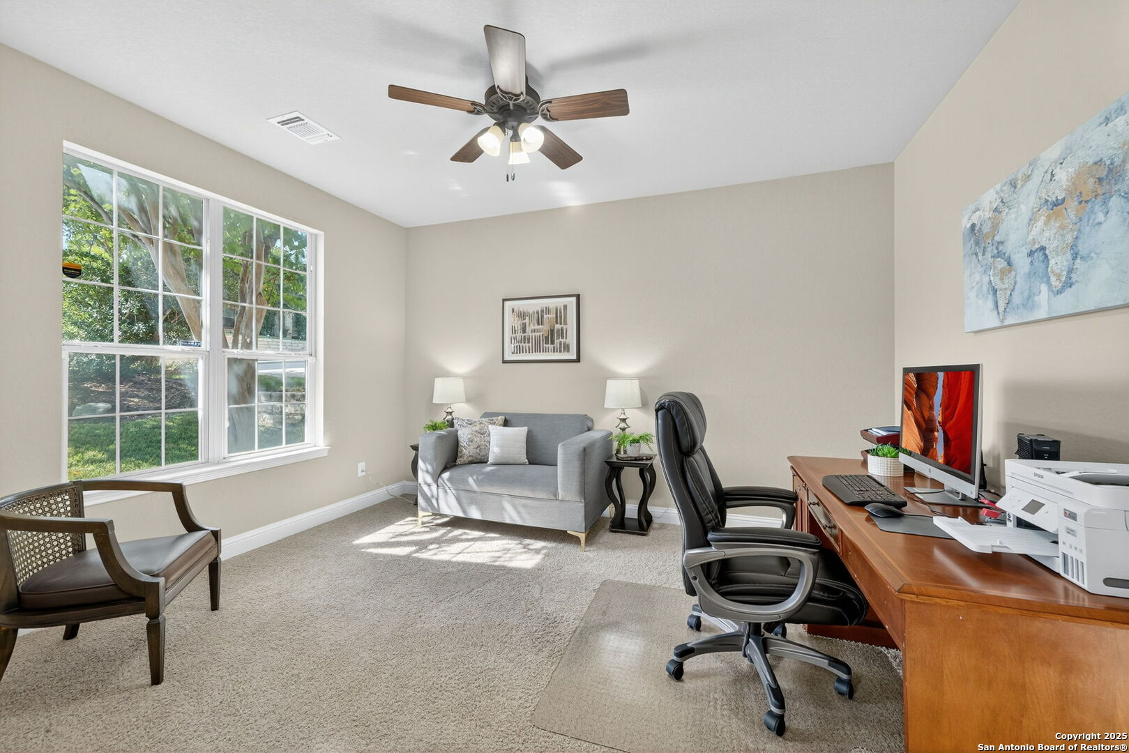 Nestled in the sought after Gated community of the Ridge at Sonoma Verde this sprawling 4 bedroom, 3 living area home offers the perfect blend of luxury and convenience. Minutes from LaCantera, The Rim, UTSA and top rated schools, this home is ideal for families, professionals, and entertainers alike. The ultimate in living with restaurants, shops, gyms, theaters and more within a few miles of your home!! The spacious primary suite is located downstairs, featuring a serene sitting area, huge walkin closet, cozy coffee bar and spa like bathroom complete with a soaking tub, separate vanities and large oversized shower. Also located downstairs is an elegant study perfect for remote work with a quiet reading nook and bathed in natural light. The expansive kitchen boasts lots of cabinet space, gas cooking and a seamless flow into the eating and living areas, making it ideal for entertaining and fun gatherings. Three large bedrooms upstairs with a media and gameroom offering endless possibilites for fun and relaxation. Your backyard oasis is designed for entertaining. Enjoy the breathtaking views of the golf course from your sitting area, perfect for morning coffee or sunset evening cocktails. You can even catch the fiesta texas fireworks at night from your private backyard. Don't miss this rare opportunity to own a home that combines luxury, convenience and stunning views in one of San Antonio's most desirable neighborhoods. Schedule your private tour today and experience the Sonoma Verde Lifestyle.