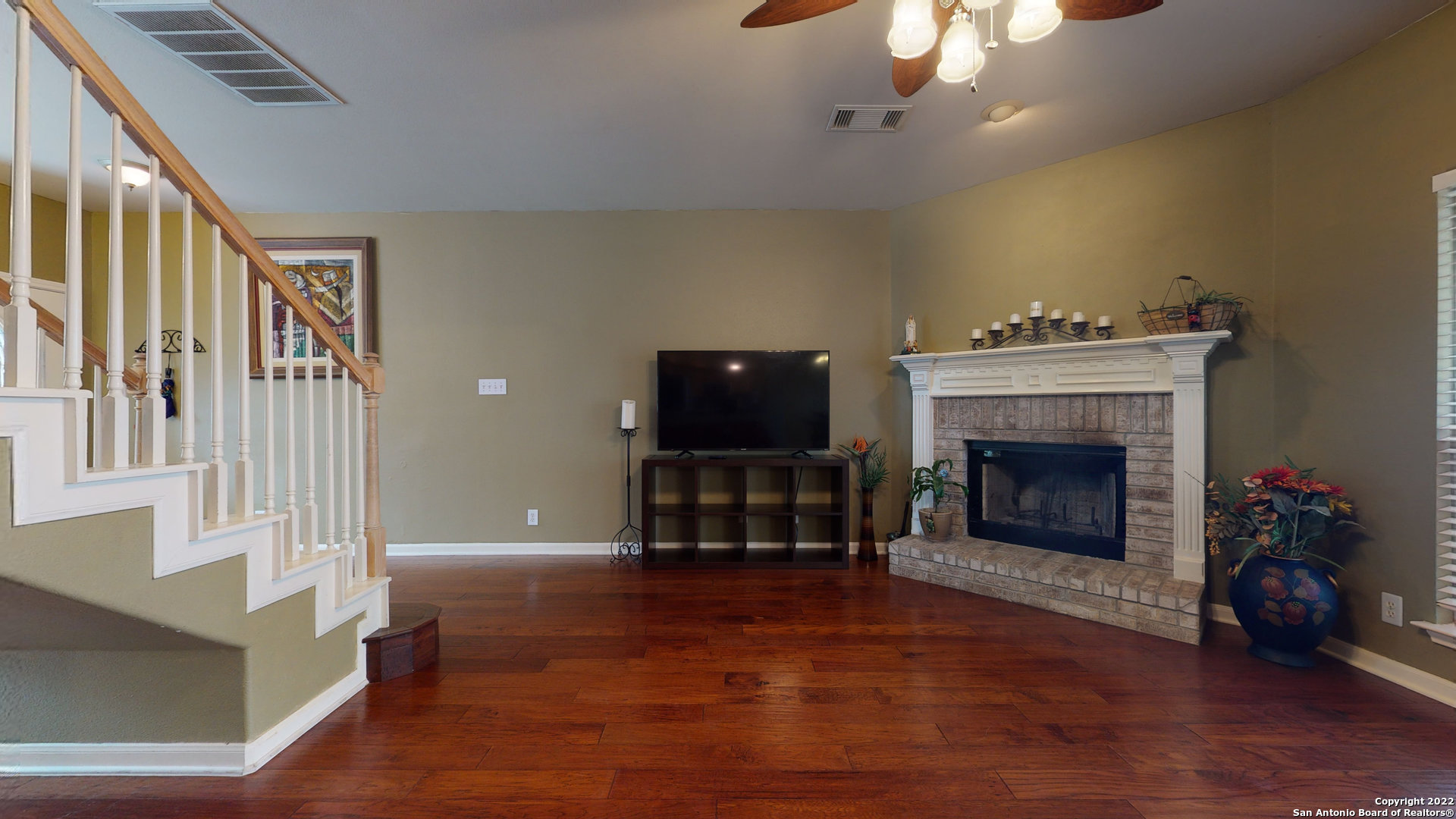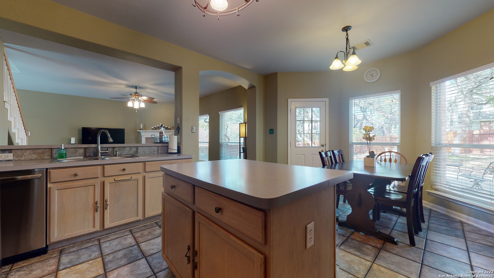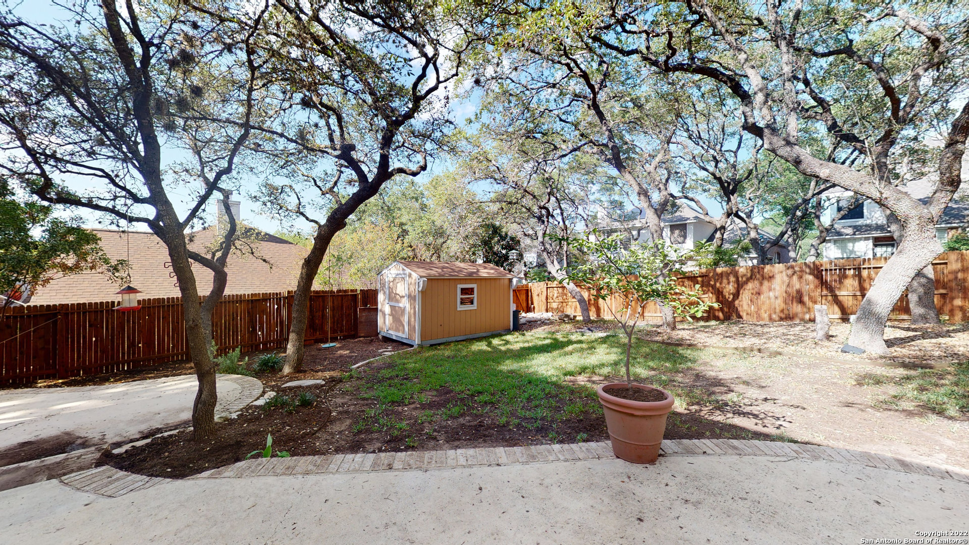 Lovely 3 BR, 2 1/2 BA home located in a desirable gated community near Loop 1604 and Braun Road minutes from popular shopping and dining. This home features an open layout, spacious kitchen with an Island, lots of counter space and cabinets. The Family room has laminate flooring, fireplace, and opens to the kitchen with a separate Dining room. All the bedrooms are upstairs including a large primary suite and a loft perfect for a second living area, office, workout space or play area. Enjoy the nice size fenced back yard complete with a workshop equipped with electricity and a/c, ideal for hobbies or storage space. A generous patio provides plenty of room for outdoor living and entertainment. There will be a new roof installed May, 2026. The HOA amenities include a pickle ball court, pool, park, basketball court and club house.