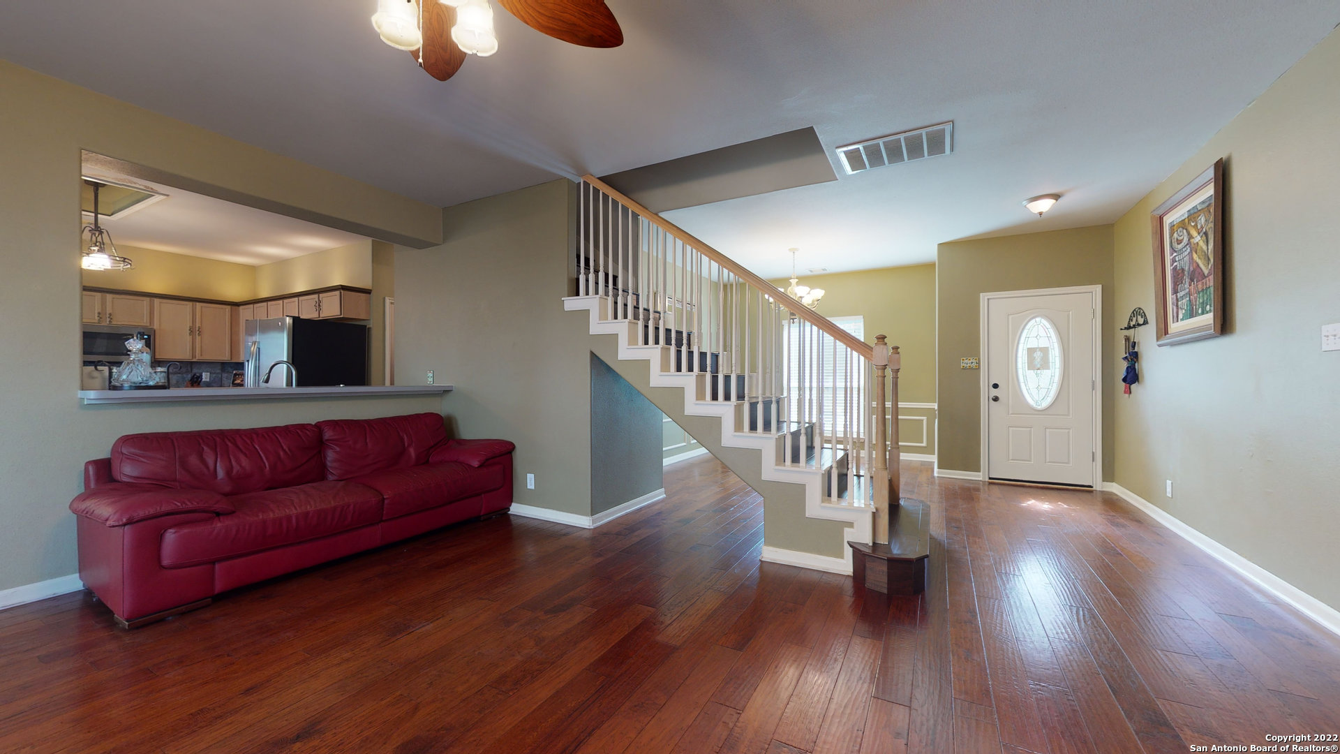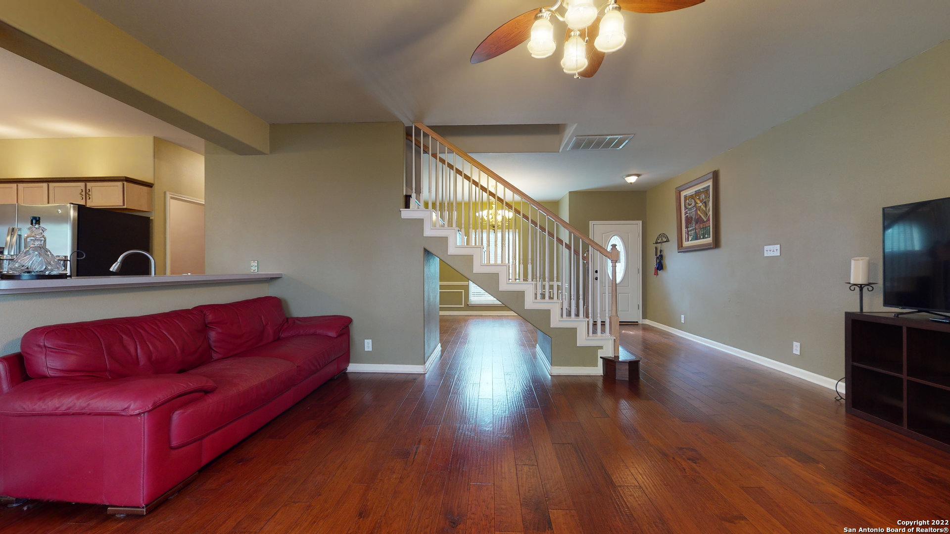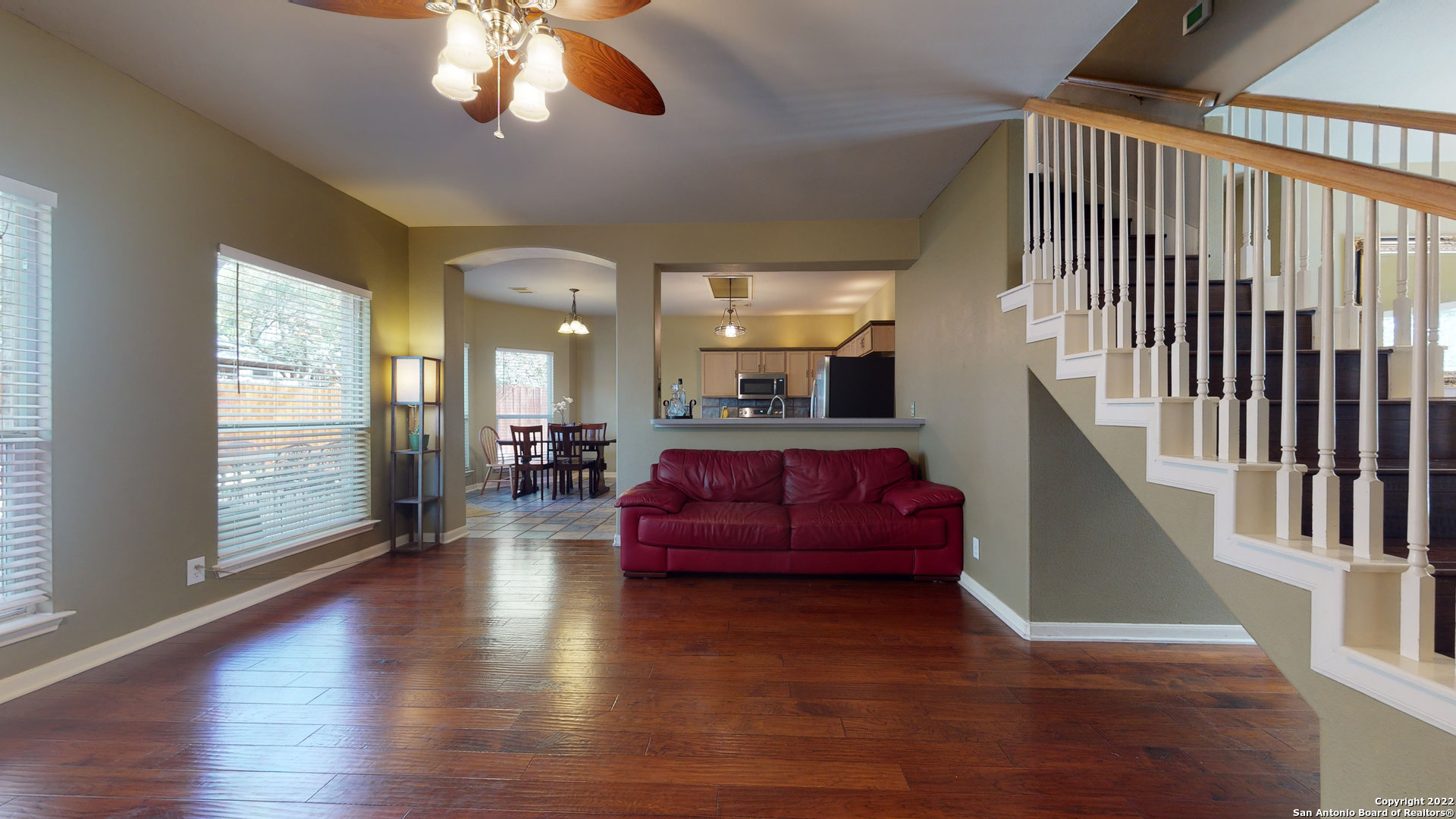 Lovely 3 BR, 2 1/2 BA home located in a desirable gated community near Loop 1604 and Braun Road minutes from popular shopping and dining. This home features an open layout, spacious kitchen with an Island, lots of counter space and cabinets. The Family room has laminate flooring, fireplace, and opens to the kitchen with a separate Dining room. All the bedrooms are upstairs including a large primary suite and a loft perfect for a second living area, office, workout space or play area. Enjoy the nice size fenced back yard complete with a workshop equipped with electricity and a/c, ideal for hobbies or storage space. A generous patio provides plenty of room for outdoor living and entertainment. There will be a new roof installed May, 2026. The HOA amenities include a pickle ball court, pool, park, basketball court and club house.