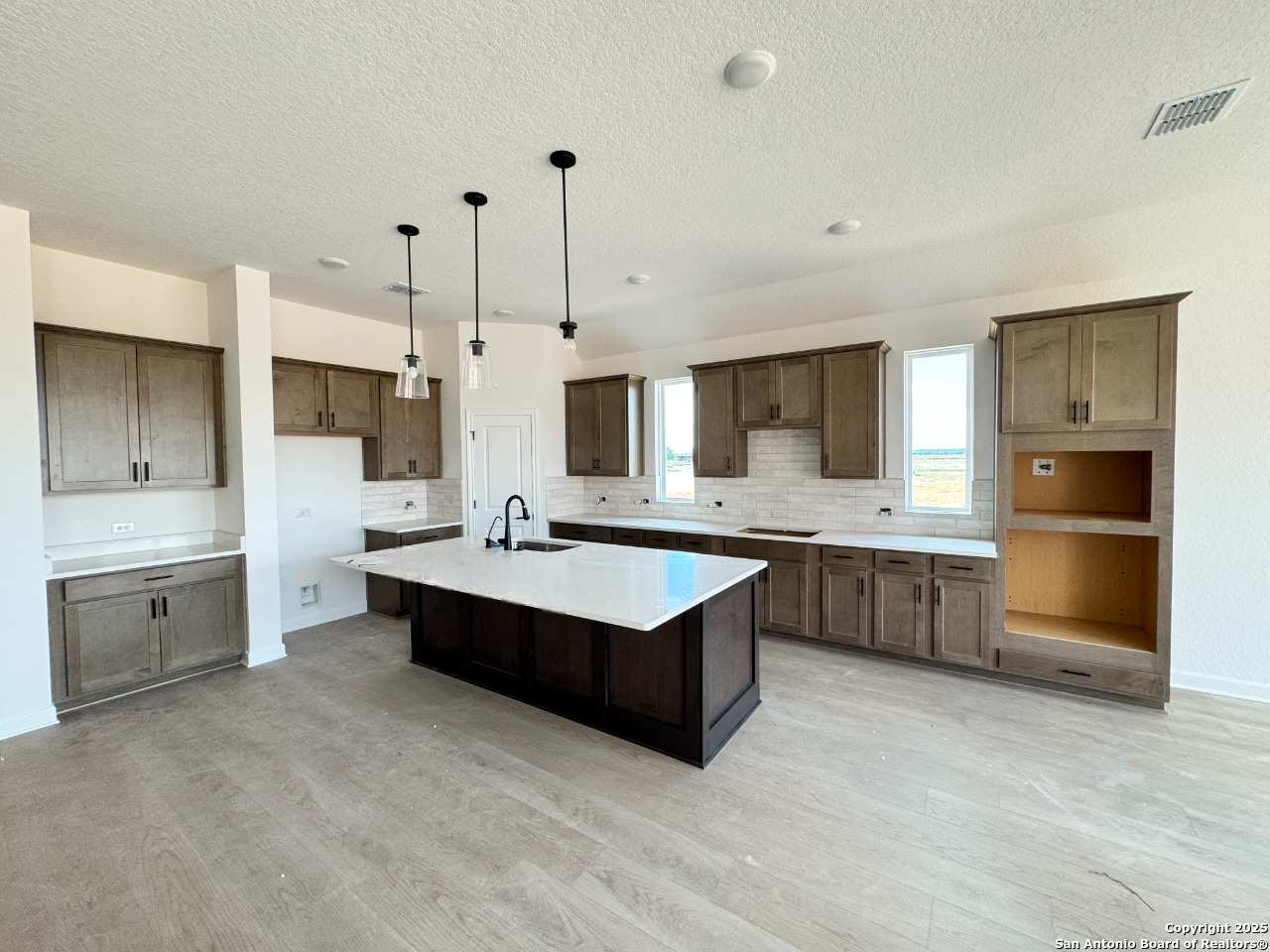 Step into the Del Rio and be greeted by a bright, welcoming foyer that flows effortlessly into the heart of the home-a combined family room and gourmet kitchen. The kitchen is designed for both everyday living and entertaining, featuring an oversized center-island breakfast bar perfect for casual meals, homework sessions, or gathering with friends and family. Sunlight pours into the space through the bay window in the breakfast area, while the adjoining family room is framed by large windows that offer serene views of the backyard. The private primary suite is a true retreat, complete with a spa-inspired bath featuring a spacious two-seat shower and dual vanities for comfort and convenience. Thoughtful design continues with a powder room, coat closet, and a generously sized utility room, all adding functional space to keep everyday life organized. Two additional bedrooms share a well-appointed bathroom, providing space for family or guests, while a covered patio extends the living area outdoors, perfect for morning coffee, evening relaxation, or entertaining in the fresh air. Every detail of the Del Rio is crafted to blend style, comfort, and practicality, creating a home where daily life feels effortless and welcoming. This home features design selections thoughtfully curated by our professional studio team. Each finish, from flooring and cabinetry to countertops and special touches, is chosen with care to create a cohesive and beautifully balanced look. Guided by timeless design principles and inspired by modern lifestyles, the result is a home that is both stylish and welcoming from the moment you step inside. This home is located in Megan's Landing, a vibrant family-friendly community nestled in the scenic Texas Hill Country. Enjoy quick access to shopping, dining, and entertainment, plus nearby outdoor escapes like the Medina River and Government Canyon State Natural Area. With top-rated Medina Valley ISD schools, Megan's Landing offers the perfect blend of natural beauty, convenience, and community for your family's next chapter.