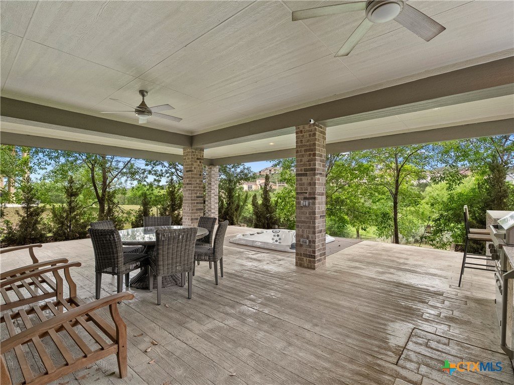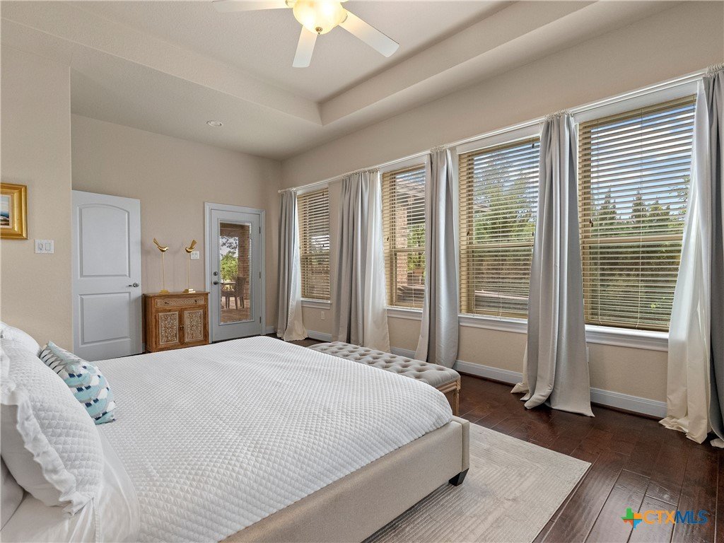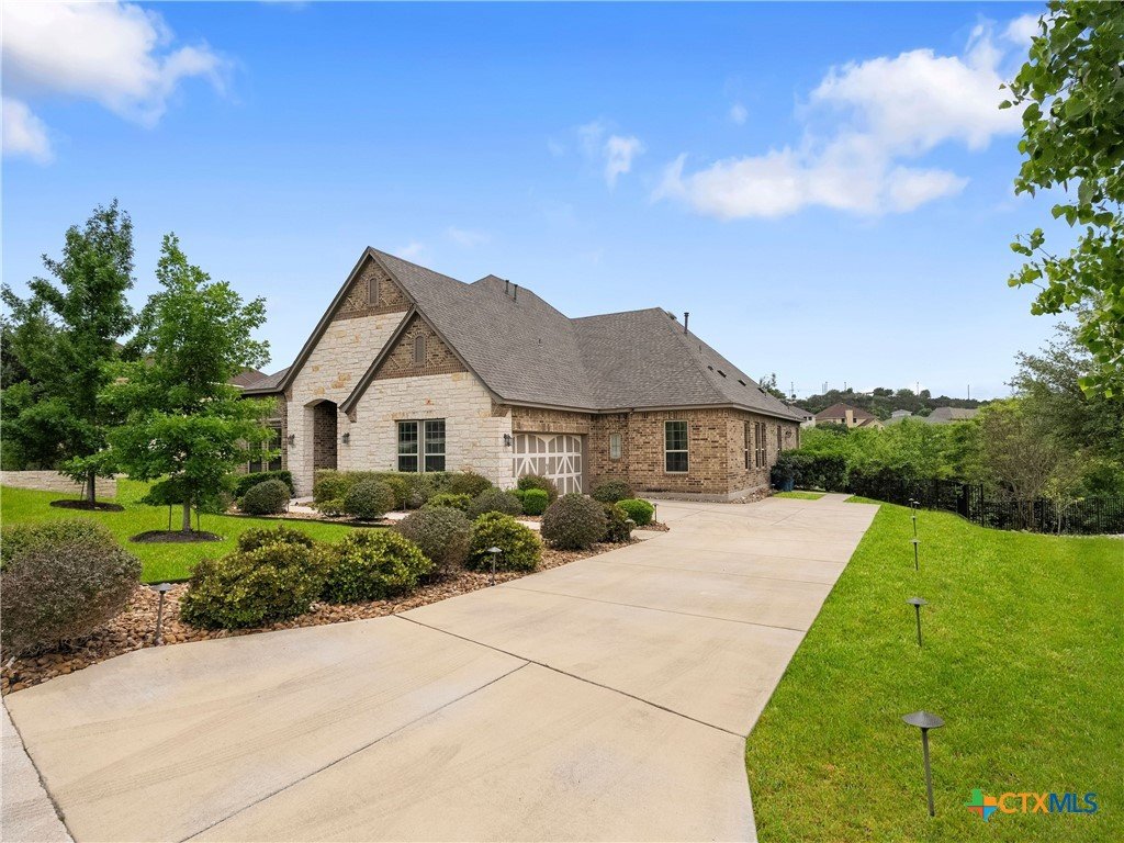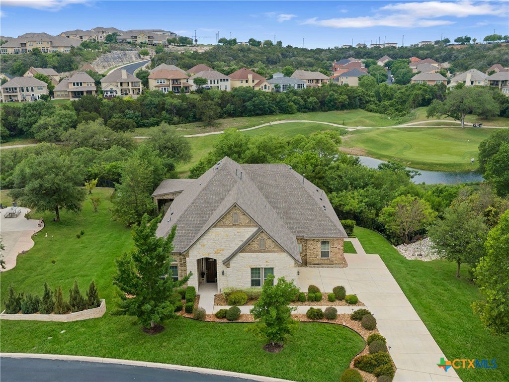 Positioned along the fairways of Cedar Creek Golf Course, this one-and-a-half-story residence delivers a seamless blend of elevated living and everyday ease. Natural light fills the open concept interior, where a spacious living area flows effortlessly into an expansive island kitchen complete with built-in appliances and generous prep space equally suited for entertaining and daily living. A private office offers a quiet, dedicated workspace, while the secondary bedrooms are thoughtfully set apart alongside an additional living area, creating a flexible layout that adapts with ease. Upstairs, a generous flex space lends itself to a media room, game room, or play area. The primary suite serves as a true retreat, featuring a wall of windows that capture serene backyard and golf course views. The en-suite bath is appointed with dual vanities, a soaking tub, and a separate shower for a refined, spa-like experience. Outdoors, the setting invites both relaxation and connection complete with a hot tub and an outdoor kitchen with built-in grill, all framed by privacy and picturesque fairway views. A three-car garage adds convenience, while the location offers quick access to Cedar Creek Golf Course and surrounding amenities. A well executed balance of space, comfort, and lifestyle set in a premier golf course setting.