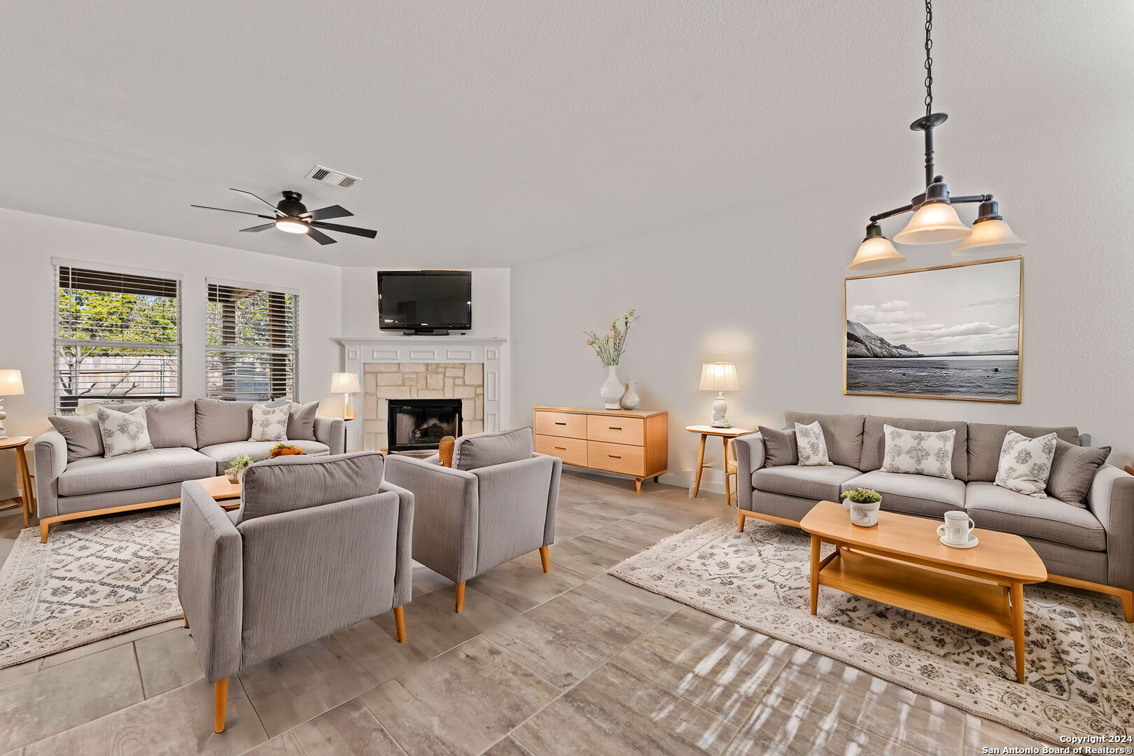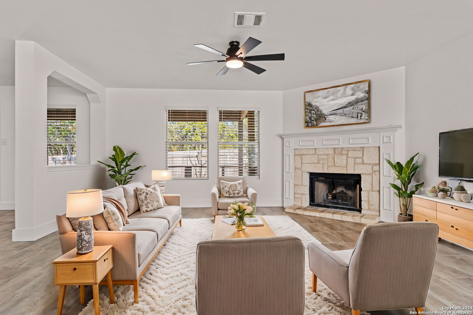 Welcome to 1803 Vinca Manor, a stunning two-story residence in the sought-after Oliver Ranch community. Situated on a quiet cul-de-sac, this home boasts 3 bedrooms, 2.5 bathrooms, and charming curb appeal with four sides of elegant stone construction. Inside, the home offers a spacious layout, perfect for both relaxation and entertaining. The highlight of the property is the large, private backyard featuring a generously sized covered patio, ideal for outdoor gatherings or serene evenings. Residents of Oliver Ranch enjoy access to exceptional community amenities, including a pool, tennis courts, a park with a playground, and scenic trails for walking or biking. Nestled in a convenient location with nearby shopping and dining, this home combines tranquility and accessibility.