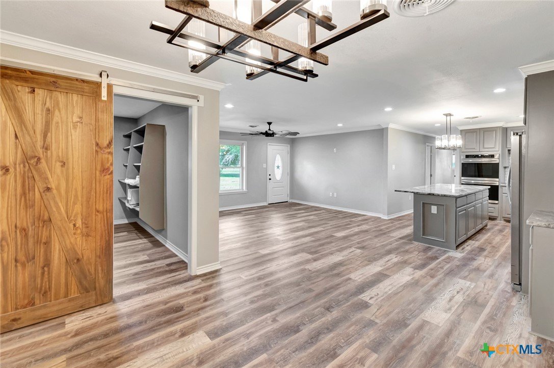 Spacious 3/2/2 on 5 Acres – Located in Ganado ISD and taxed in Jackson County, this beautifully remodeled Louise home blends modern updates with country charm. Situated on 5 acres, there’s plenty of space to spread out, garden, raise animals, or enjoy the outdoors. Recent improvements include a new roof and new windows, offering both peace of mind and energy efficiency. Inside, you’ll find an inviting open layout with tasteful finishes throughout. The kitchen is a true showpiece with granite countertops, soft-close cabinetry and drawers, and a large center island for prep or casual dining. A propane cooktop and double ovens make it perfect for home chefs. The expansive walk-in pantry, accented by a decorative barn door, adds both style and function. The primary suite offers a relaxing retreat with a private bath and generous closet space. Two additional bedrooms and a second full bath provide comfort for family or guests. Outside, a large equipment barn offers endless possibilities for storage, workshop space, or hobbies. This property combines easy access, modern comfort, and the space you’ve been looking for—all ready for you to call home.