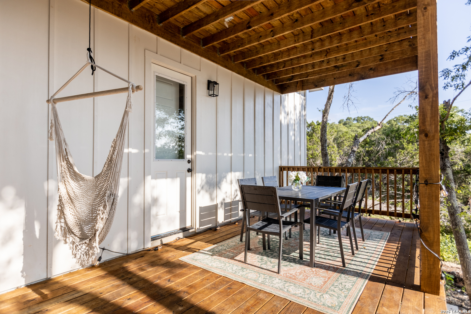 Welcome to your Canyon Lake View Retreat, perfect for the nature lover! This 2 bed, 2.5 bath, 1,254 sq ft home in Canyon Lake, Texas sits on over a quarter-acre lot and is located just 2 minutes from Comal Park and Boat Ramp #5. This 3-year-old, 2-story stunner has been meticulously maintained and is truly turn-key ready for its next owner. When you enter the home, you are greeted with stunning updated features and an open floor plan that allows the living and kitchen areas to flow seamlessly together. The home offers the perfect balance of comfort and space, feeling open and inviting while still giving everyone room to spread out. The warmth and welcoming vibe of the home immediately draws you in, while the large kitchen island and open layout create an ideal setting for entertaining. The primary bedroom downstairs and the secondary bedroom upstairs give everyone enough room for everyone to truly feel like they have their own personal oasis. The bedrooms and bathrooms feature beautiful fixtures and finishes that add to the home's warm, comfortable feel - perfect for recharging after a day on the water or exploring the area. Both the downstairs patio and the second-floor deck truly bring this beautiful home together with both offering wonderful views of Canyon Lake and creating the perfect spaces to relax, unwind, and take in the surrounding natural beauty. This property truly offers a little bit of everything, combining peaceful nature, thoughtful design, and a location that allows you to enjoy Canyon Lake living in style. The home is also equipped with an on-site septic system that has been carefully maintained. This home is currently operating as a successful short-term rental and has proven to be a standout Airbnb performer, offering a great opportunity for those looking to continue it as an income-producing property or simply enjoy it as their own private lake retreat. Don't miss your chance on this one!