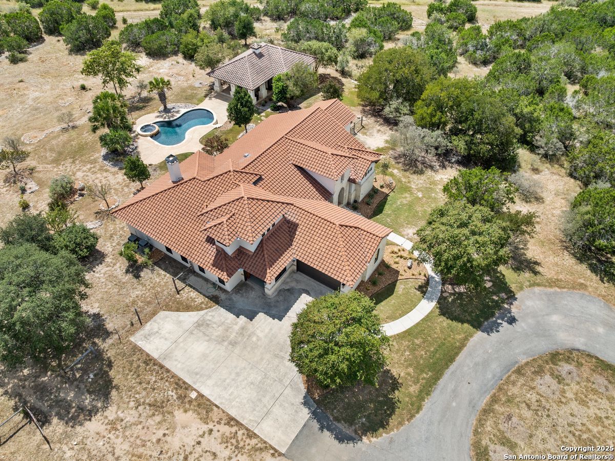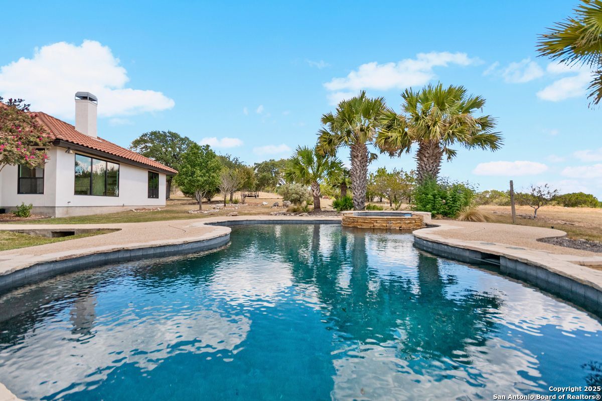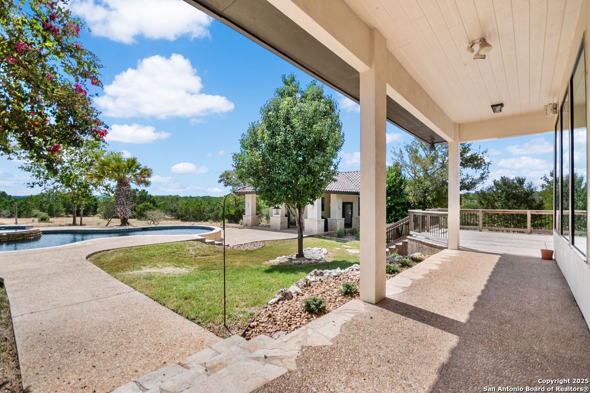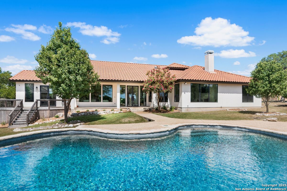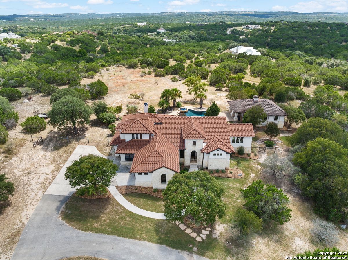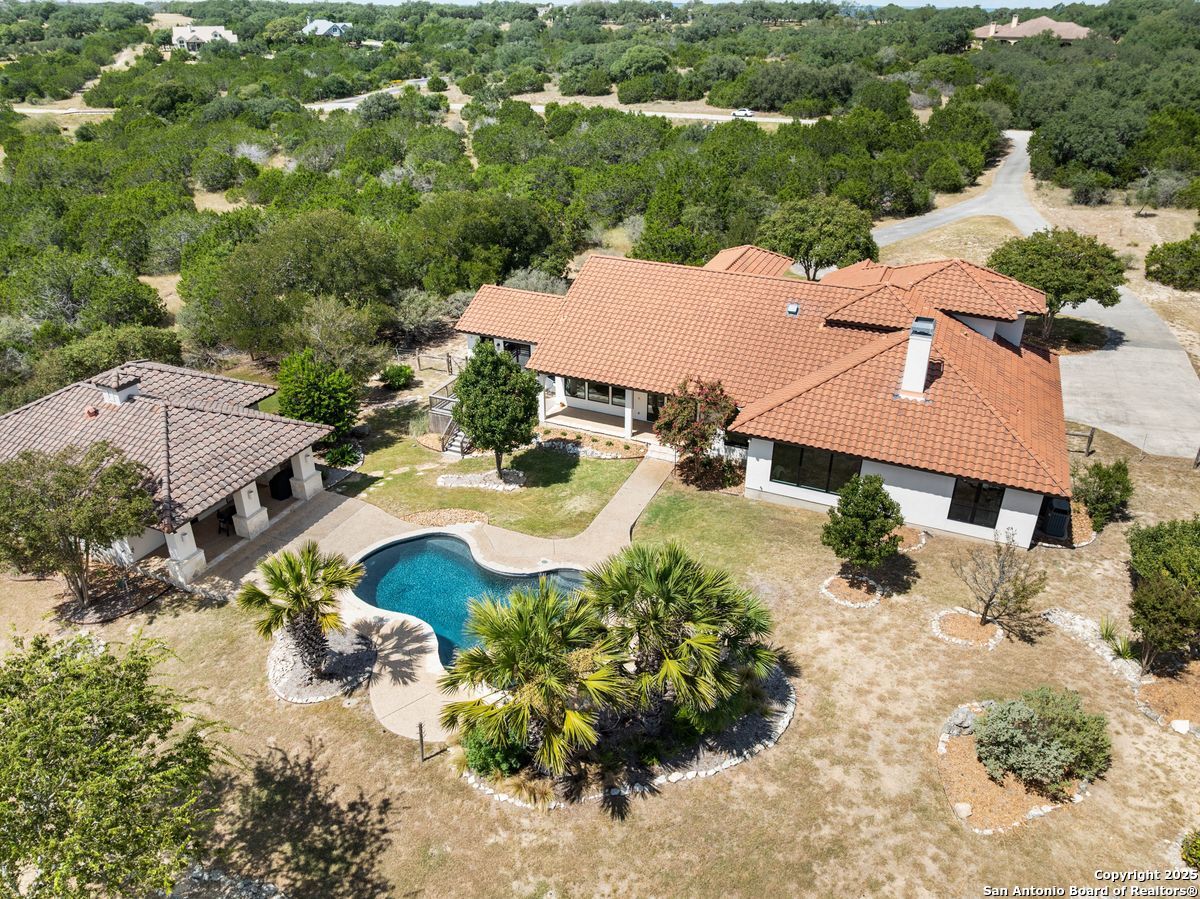 Perched atop a scenic hill, this newly remodeled transitional-style home offers wide open hilltop views, privacy, a gorgeous pool and a detached casita. Stucco and stone with all new windows and doors to frame the hills and invite in natural light. The detached casita sits adjacent to the main home, offering privacy for guests, in-laws, or use as a studio or office. It echoes the same transitional design elements for seamless cohesion. Inside, the home showcases wide-plank white oak wood floors throughout, offering a warm, neutral foundation that complements both contemporary and traditional elements. The color palette leans toward soft whites, warm greys, and subtle earth tones, creating a tranquil and airy feel. Open-concept design connects the kitchen, dining, and living areas, enhanced by recessed lighting, statement light fixtures, and views from every angle. The main home boasts 4 bedrooms and 3.5 baths as well as a separate office with built in custom cabinets, game room, and separate dining room all with beautiful design and attention to detail. Located in Cordillera Ranch and Boerne ISD schools.