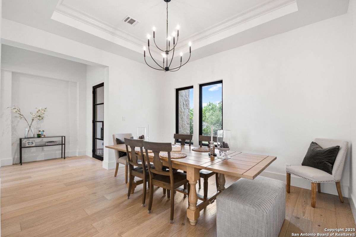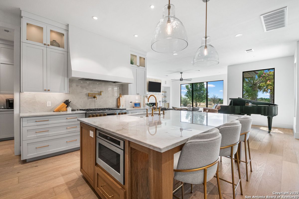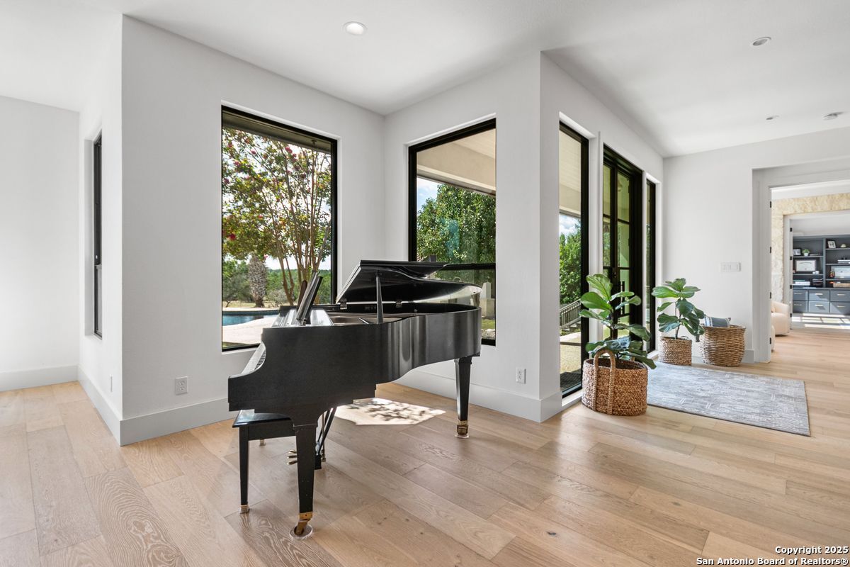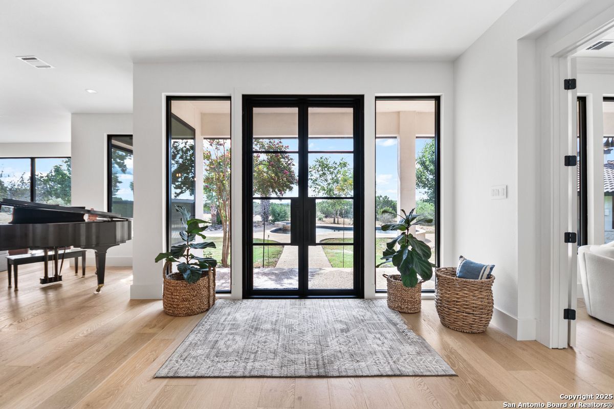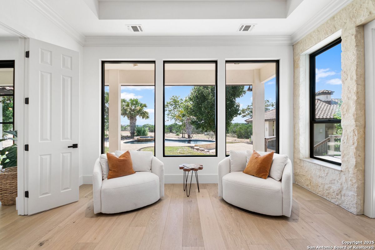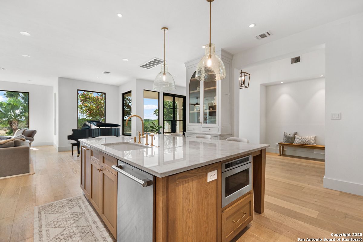 Perched atop a scenic hill, this newly remodeled transitional-style home offers wide open hilltop views, privacy, a gorgeous pool and a detached casita. Stucco and stone with all new windows and doors to frame the hills and invite in natural light. The detached casita sits adjacent to the main home, offering privacy for guests, in-laws, or use as a studio or office. It echoes the same transitional design elements for seamless cohesion. Inside, the home showcases wide-plank white oak wood floors throughout, offering a warm, neutral foundation that complements both contemporary and traditional elements. The color palette leans toward soft whites, warm greys, and subtle earth tones, creating a tranquil and airy feel. Open-concept design connects the kitchen, dining, and living areas, enhanced by recessed lighting, statement light fixtures, and views from every angle. The main home boasts 4 bedrooms and 3.5 baths as well as a separate office with built in custom cabinets, game room, and separate dining room all with beautiful design and attention to detail. Located in Cordillera Ranch and Boerne ISD schools.