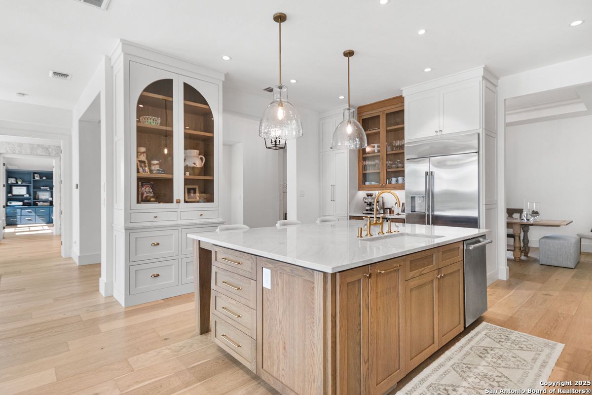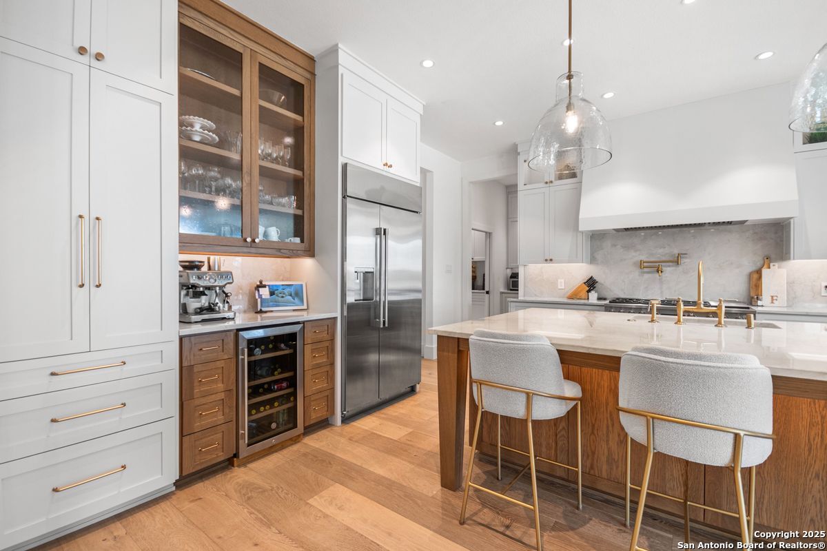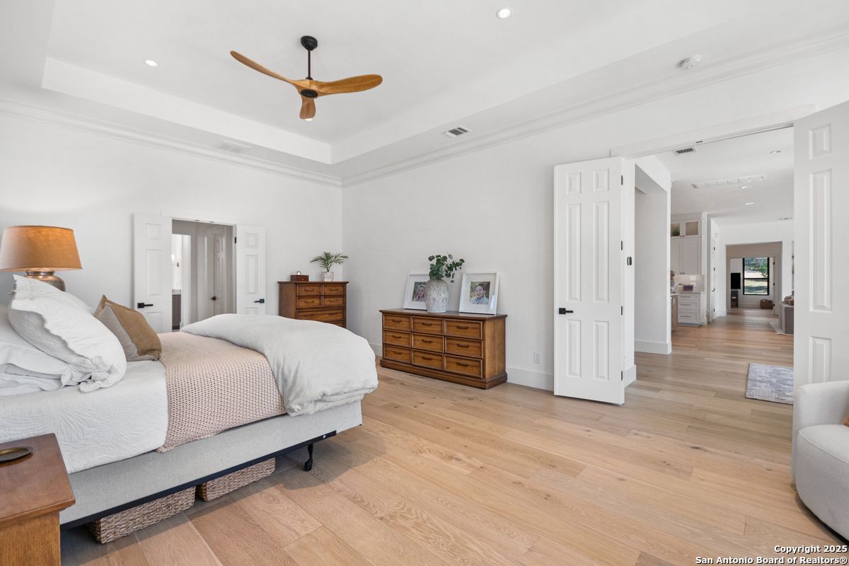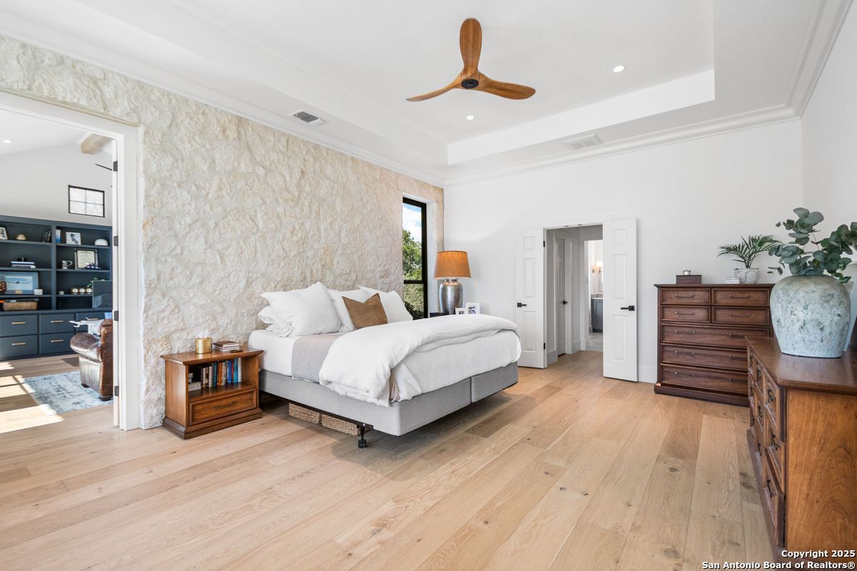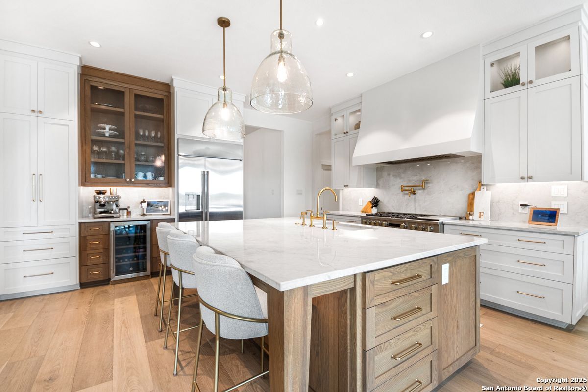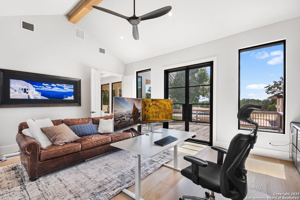 Perched atop a scenic hill, this newly remodeled transitional-style home offers wide open hilltop views, privacy, a gorgeous pool and a detached casita. Stucco and stone with all new windows and doors to frame the hills and invite in natural light. The detached casita sits adjacent to the main home, offering privacy for guests, in-laws, or use as a studio or office. It echoes the same transitional design elements for seamless cohesion. Inside, the home showcases wide-plank white oak wood floors throughout, offering a warm, neutral foundation that complements both contemporary and traditional elements. The color palette leans toward soft whites, warm greys, and subtle earth tones, creating a tranquil and airy feel. Open-concept design connects the kitchen, dining, and living areas, enhanced by recessed lighting, statement light fixtures, and views from every angle. The main home boasts 4 bedrooms and 3.5 baths as well as a separate office with built in custom cabinets, game room, and separate dining room all with beautiful design and attention to detail. Located in Cordillera Ranch and Boerne ISD schools.