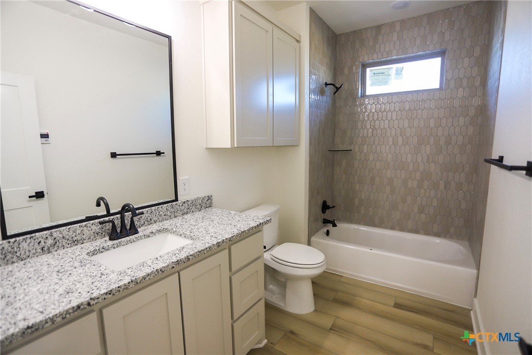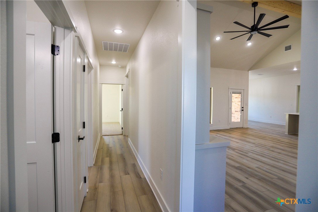 Experience modern elegance in this beautifully designed 4 bedroom, 2.5 bath home offering just under 2,500 square feet of thoughtfully crafted living space. Showcasing incredible custom-style finishes and a striking modern design, this home blends comfort, functionality, and style at every turn. The heart of the home is a stunning open-concept kitchen featuring custom cabinetry, stainless steel appliances, and gorgeous quartz countertops — all flowing seamlessly into the spacious living and dining areas, making it perfect for entertaining or everyday living. Luxury vinyl flooring runs throughout the main living areas, with tile in all wet areas for durability and easy maintenance. The oversized primary suite offers a true retreat with double vanities, an impressive walk-in shower, and a large walk-in closet designed for maximum storage. The additional bedrooms are generously sized, offering flexibility for family, guests, or a dedicated office space. Car enthusiasts and golf lovers will appreciate the oversized 2-car garage with an additional golf cart garage, ideal for cruising over to Mill Creek Golf Course, just steps away. Enjoy quiet mornings and relaxing evenings on the covered front and back porches, all situated on a huge lot with plenty of space to enjoy outdoor living. This home delivers modern design, custom finishes, and an unbeatable location near Mill Creek, the perfect blend of luxury and lifestyle in Salado.