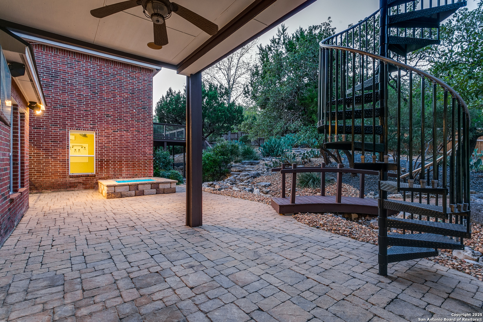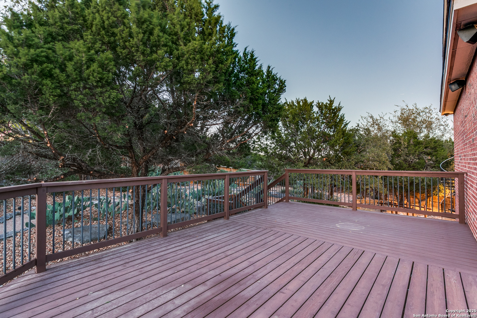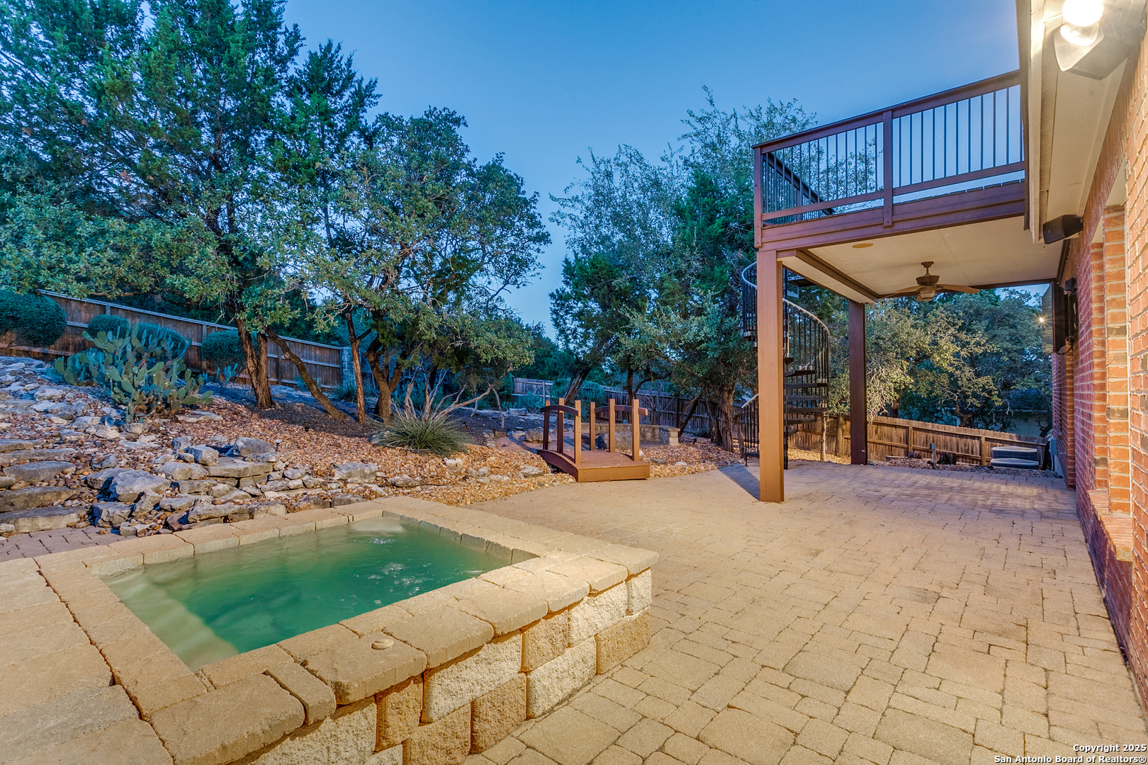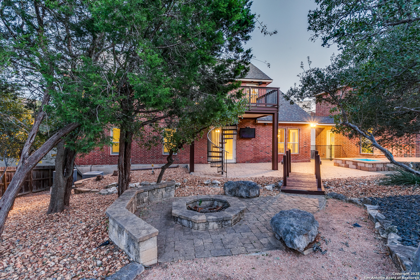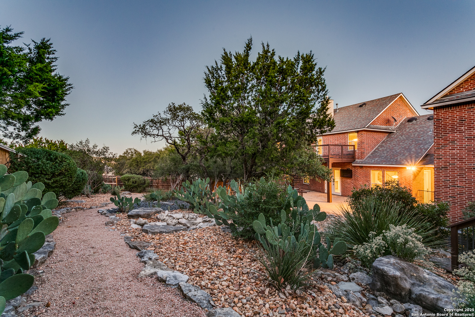 Nestled on an elevated cul-de-sac, this custom-built brick home offers flexibility and private spaces alike, along with a detached apartment! Enter into a welcoming vestibule with a private office and formal dining room on either side. Open family room with fireplace adjoins the spacious island kitchen with separate breakfast area, overlooking the green space outside. Powder room and a spacious primary suite complete this spacious first floor. Upstairs, an open game room with rear balcony with stair descends to the exterior lot, while the guest suite has downtown skyline views. A custom studio space (Bedroom 3)-formerly bedrooms 3 & 4-could easily be converted back, if needed. The oversized 2-car detached garage is topped by an efficient 528 SF apartment-21x21 ADDW-, accessed by an interior stair lift. An additional balcony, hot tub, fire pit, and wooden footbridge over a recirculating water feature make the yard a relaxing and unique getaway. Neighborhood is in highly ranked Northside school district, with Rogers Ranch and Point Bluff neighborhood amenities, and nearby shopping. End 2025 on a high note by calling this handsome property your new home.