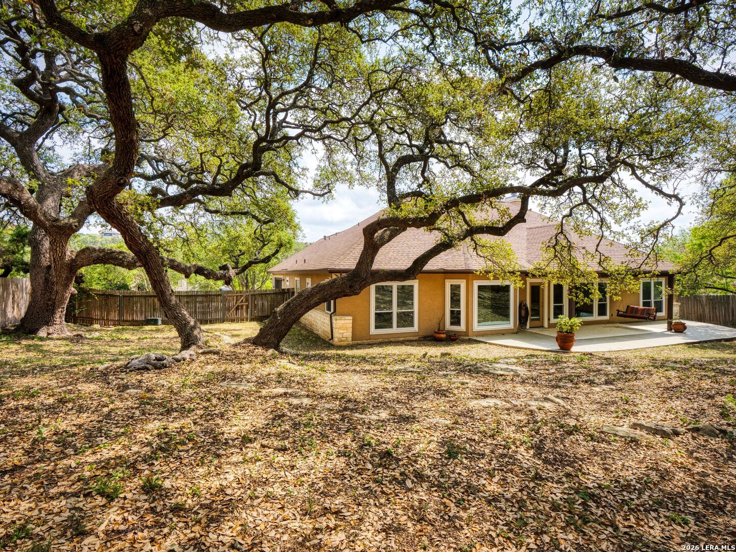 Nestled in the Heart of the Texas Hill Country, this pristine one-story white rock and stucco home offers a rare blend of timeless character and modern refinement. Open living spaces filled with natural light and rich textures, tons of upgrades. New impact resistant asphalt shingled roof in July 2024, One new electric water heater 2024 and one in 2022. All new windows 2019. Two heating electric units, one replaced in 2023 and one in 2019. Stained glass Texas Star front door, Gas range, granite counters, custom cabinets, and monumental stone gas living room fireplace, art niches, bathrooms with refined finishes. The backyard boasts Breathtaking Live Oaks and native landscaping, storage shed, covered extended patio for peaceful mornings and evening relaxation or entertaining. Deer will roam! AT&T fiber wire currently being installed in neighborhood. This exceptional home with side entry garage in the highly desired Timberwood Park is convenient to Stone Oak restaurants, shopping, SA airport, downtown and hospitals. A rare opportunity to experience updated hill country elegance, luxury and natural beauty.